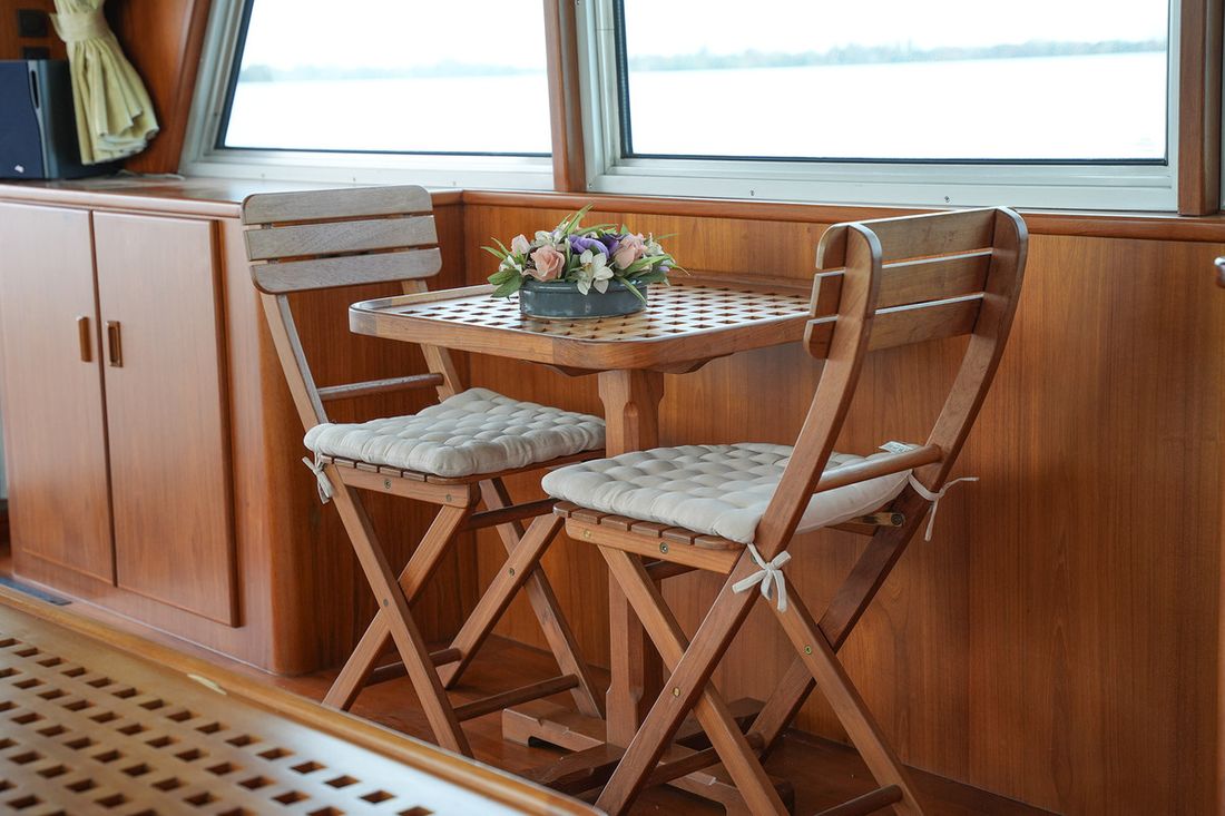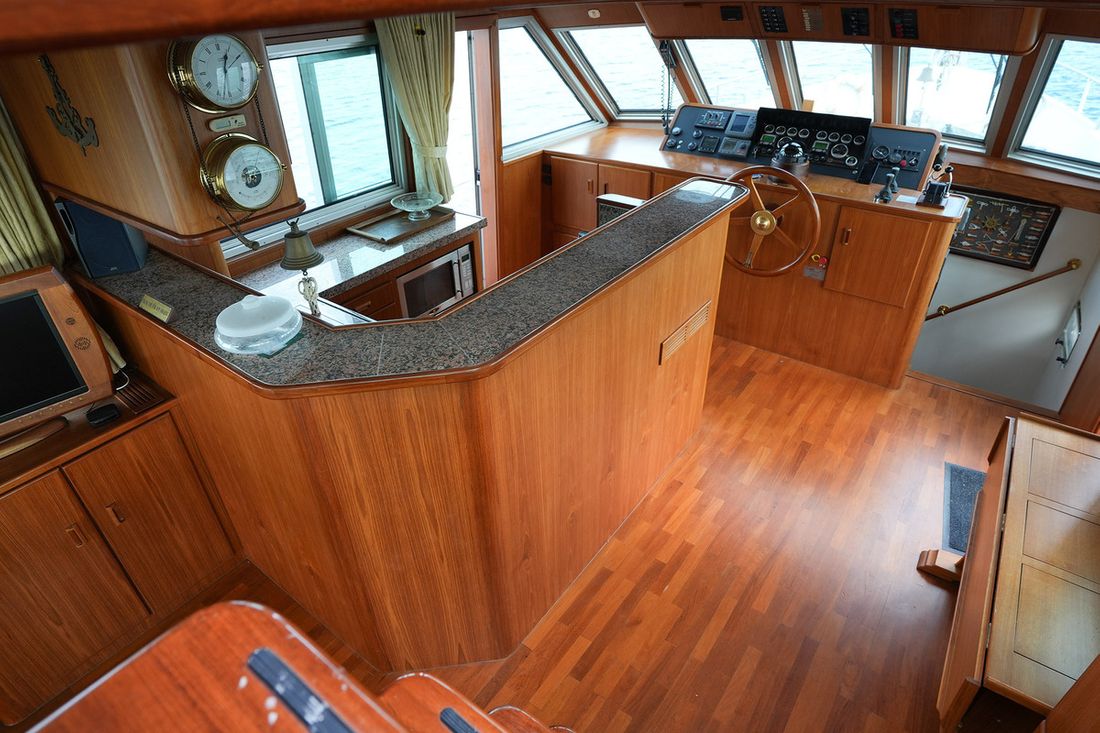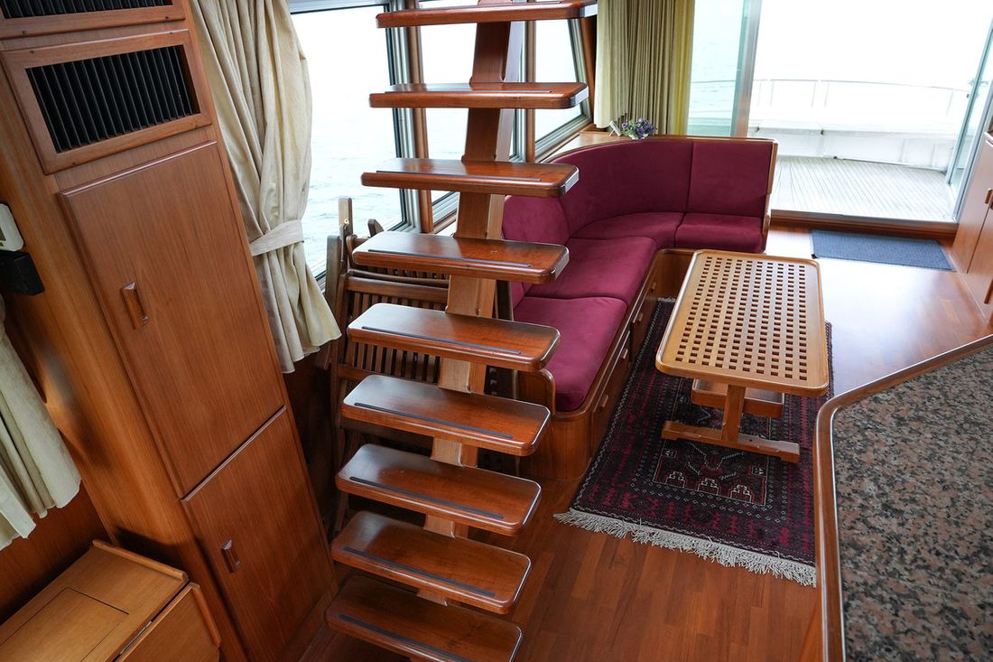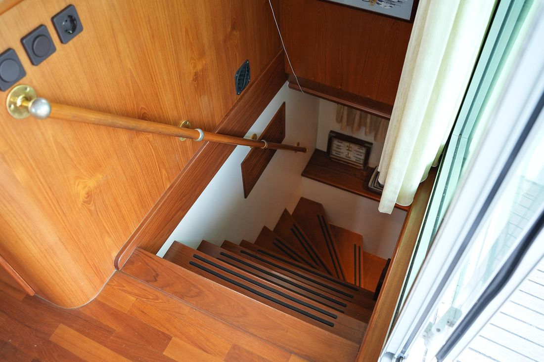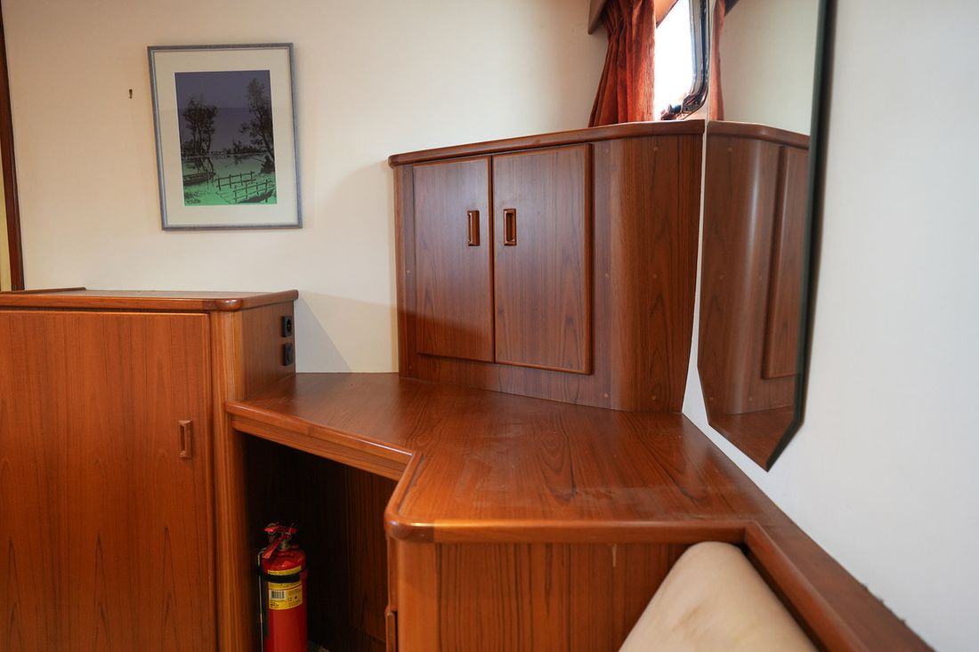 Mooi rondspant motorjacht waarvan het casco door de bekende werf Moonen is gebouwd waarna het door scheepswerf J. Kok is afgebouwd. Het schip is bijzonder ruim met een grote salon en keuken met rondom uitzicht en overdekt achterdek. Grote flyingbridge met ruimte voor de bijboot. Het teak betimmerde interieur is nog zeer netjes. Via een trap in de salon kom je in het achterschip waar de eigenaarshut is met badkamer en aparte gastenhut met stapelbed. Via de trap voor kom je in het vooronder met nog een ruime 2 persoonshut met eigen badkamer. Via de waterdichte deur in het vooronder komt u in de machinekamer met stahoogte. In 2018 is de volledige voorstuwing met schroefassen vervangen, daarnaast zijn er lithium accus' geplaatst met de nodige elektrische aanpassingen.