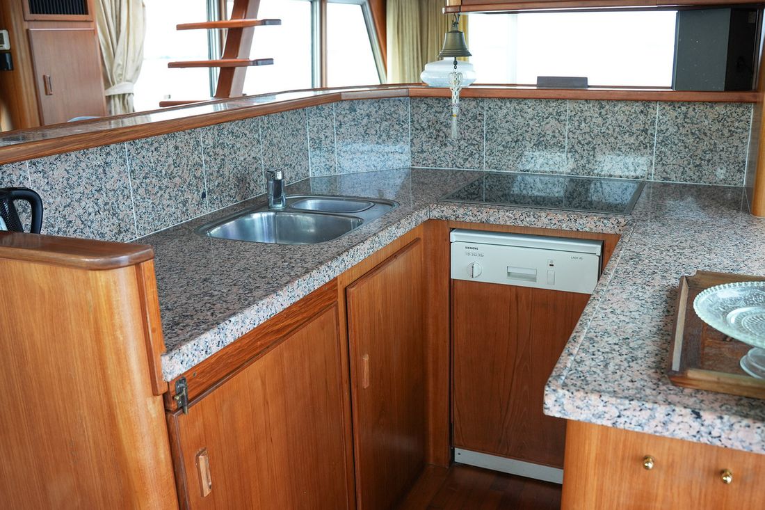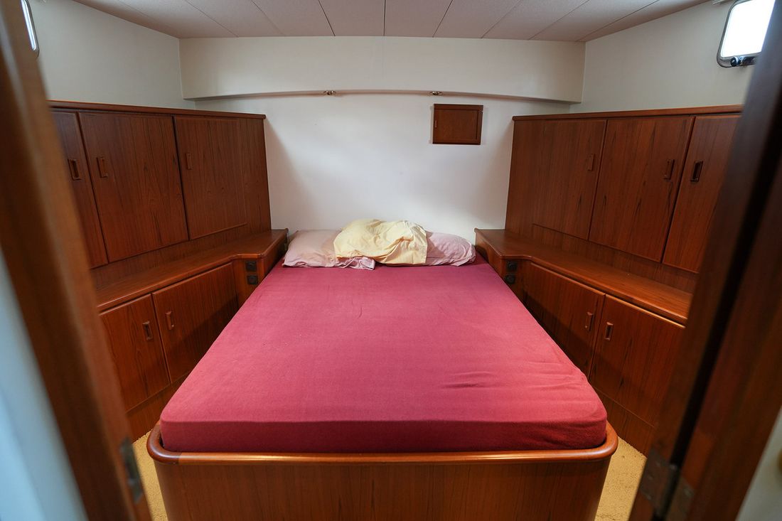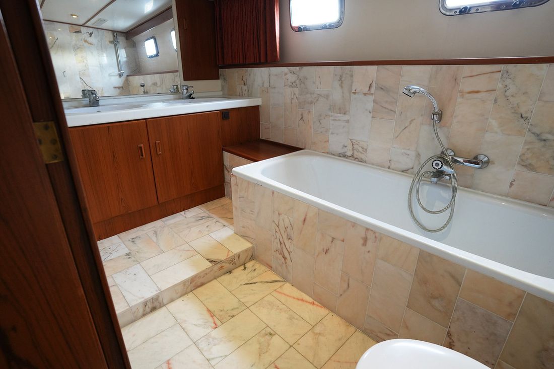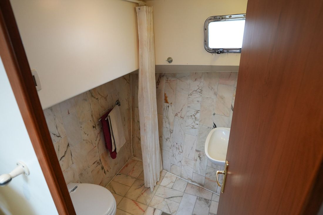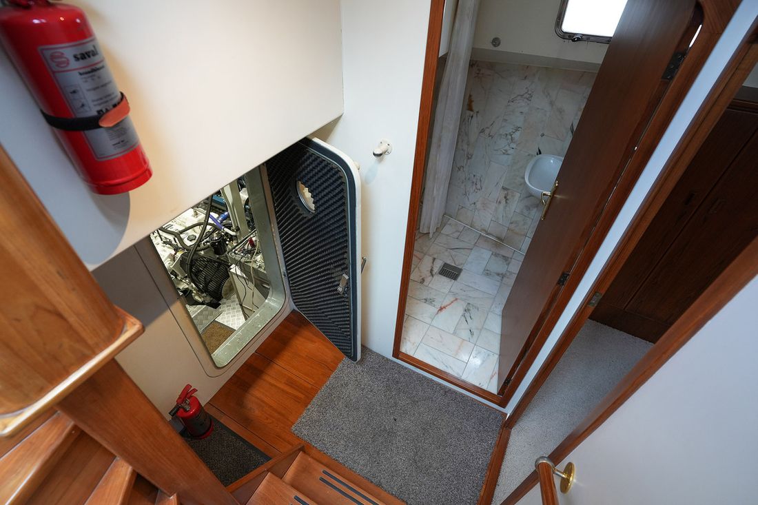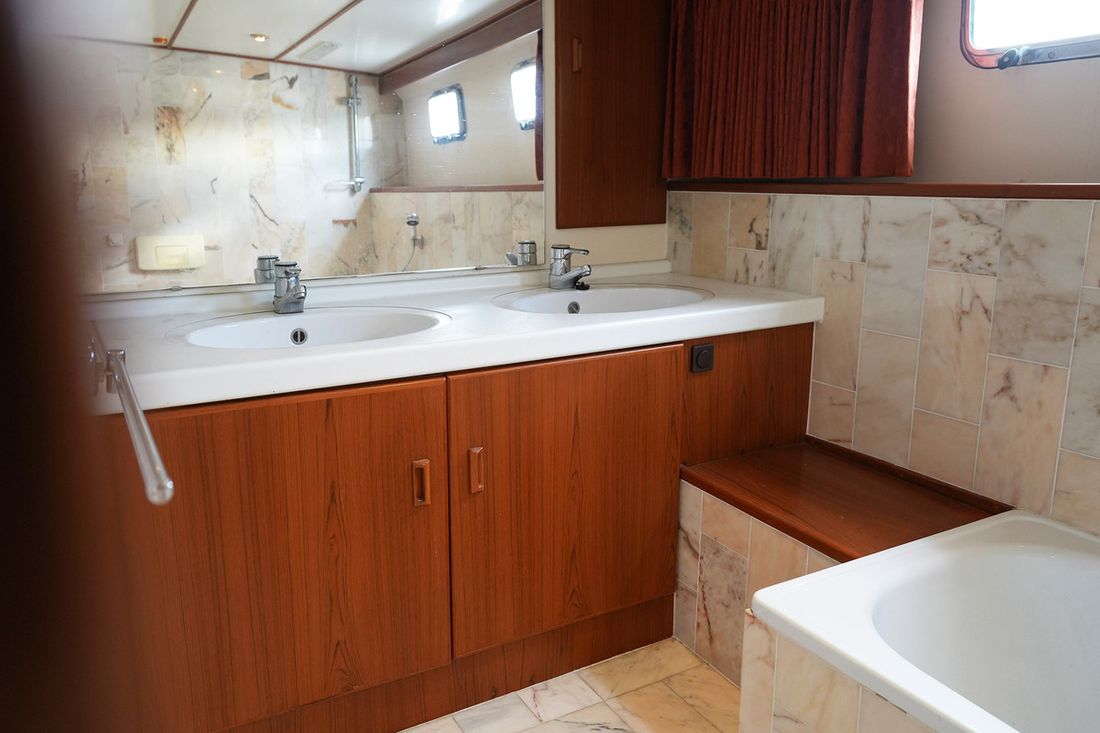 Ruimtes Salon Eethoek Machinekamer Hutten 3 Indeling en verblijfsruimtes Ruime salon met 2 zijdeuren en schuifpui naar achterdek. BB zijde kombuis met rondom uitzicht, SB hoekbank en veel kastruimte. Via trap achter naar eigenaars- en gastenhut. Ruime badkamer met ligbad en toilet. Via de trap voor ga je naar de 2 persoonshut met aparte badkamer met douche en toilet. Aankleding Type interieur Klassiek, warm Opmerkingen Type interieur Teak betimmering Matrassen Kussens Gordijnen Water Watertank & materiaal Watertankmeter Vuilwatertank & materiaal Vuilwatertankmeter Watersysteem druksysteem Warm water Opmerkingen Warm water Boiler dekwaspomp buitendouche Sanitair Aantal douches 2 Opmerkingen Aantal douches Badkamers met marmer afgewerkt Aantal baden 1 Toiletten 2 Elektrisch Entertainment Satellietontvangst Keuken Kooktoestel & brandstof Aantal 4 Kookbrandstof elektrisch Magnetron Aantal 1 Koelkast & voeding Opmerkingen Koelkast & voeding 2 koelkasten Voeding elektrisch Klimaatregeling Verwarming 1 hete lucht Opmerkingen Verwarming Webasto D8LC Airconditioning Merk airconditioning Frigoboat CF16H, 16000 BTU -