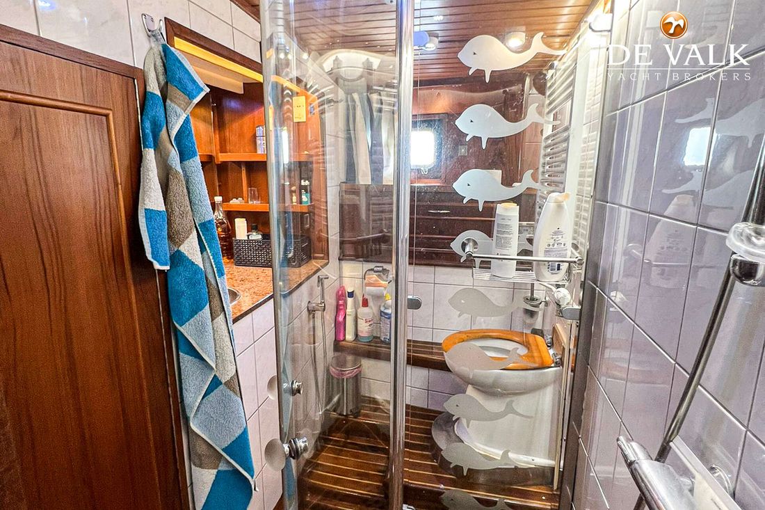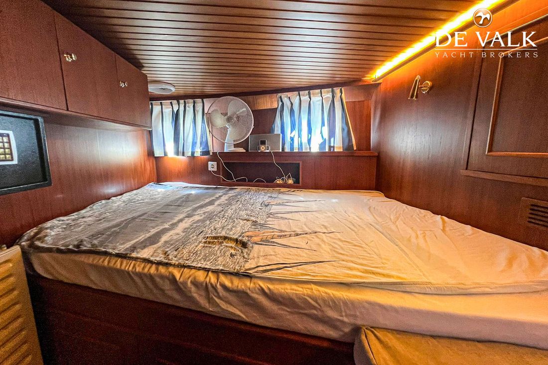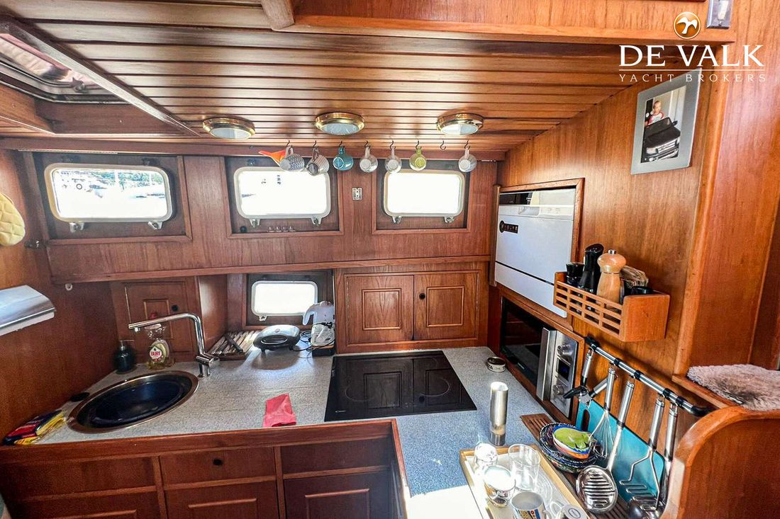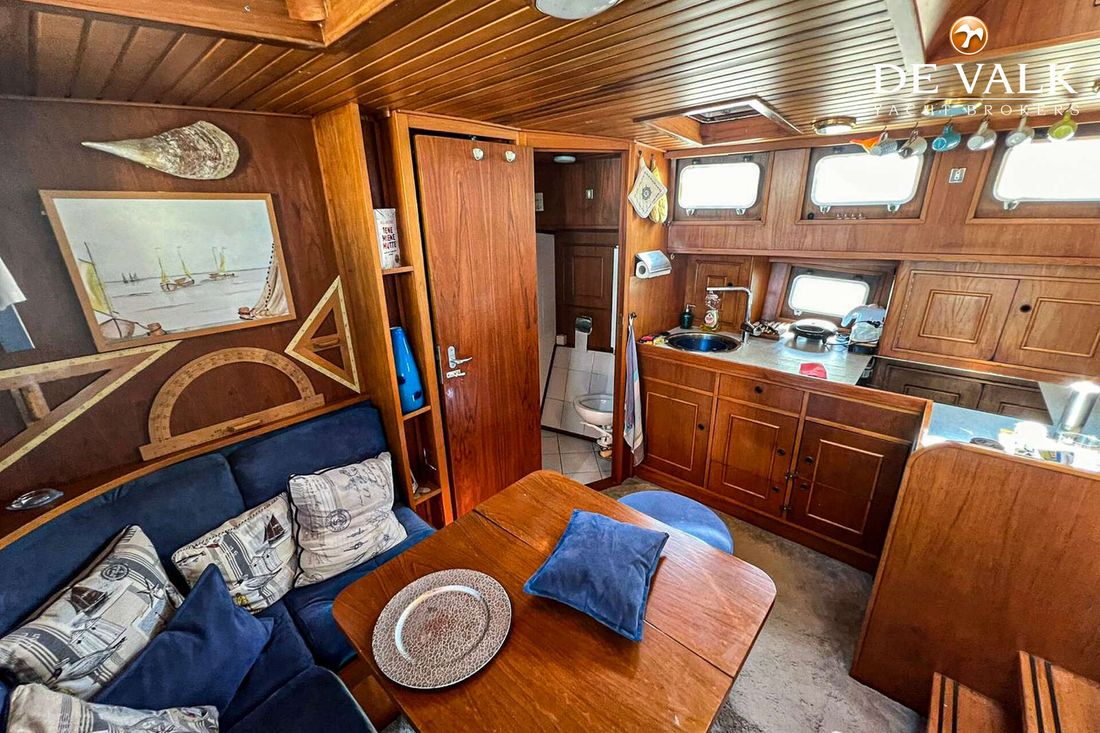 The De Ruiter 1550 Canoe Stern is a highly seaworthy and solidly built vessel, fully equipped for long and comfortable voyages. This robust classic features modern Mitsubishi engines, a spacious engine room with standing height, and high-quality insulation combined with double glazing, ensuring a quiet, safe, and energy-efficient cruising experience. Thanks to its practical layout, sturdy construction, and thoughtful details, you will feel at home on board immediately. The vessel is equipped with a powerful spudpole for enhanced maneuverability and a reliable anchoring.