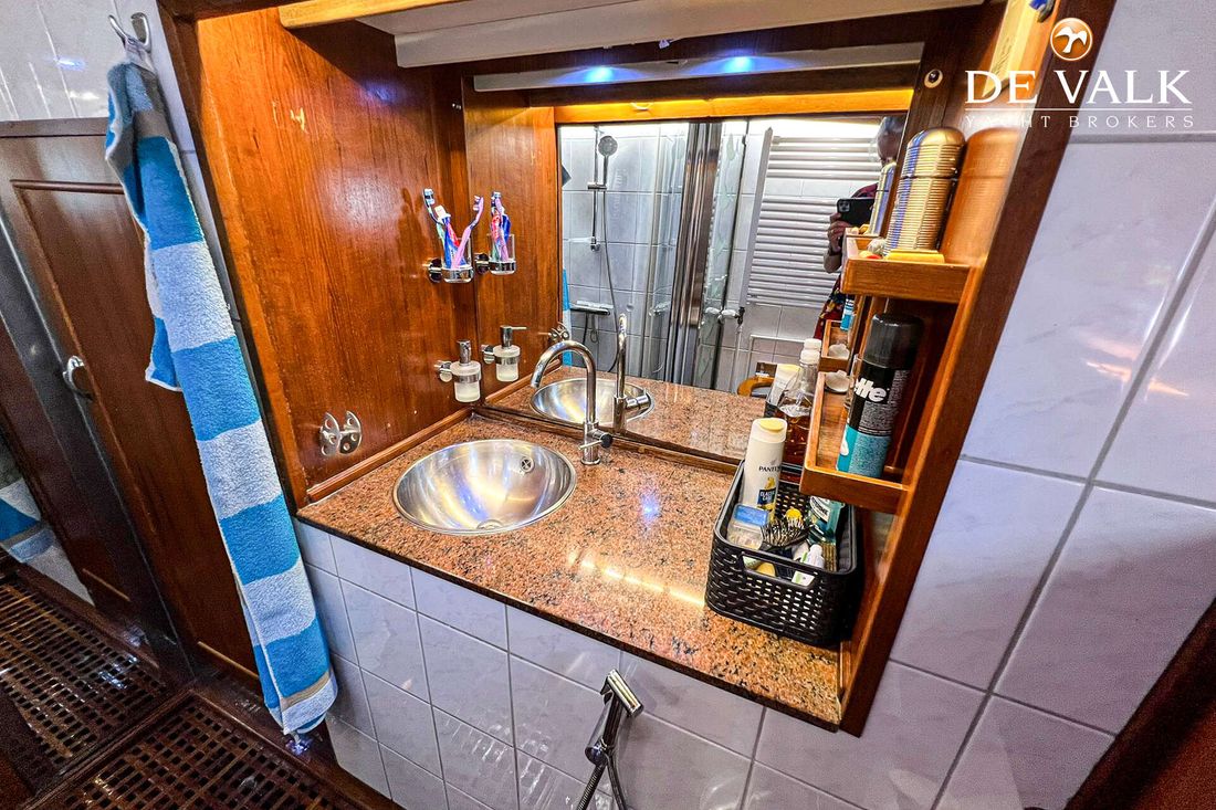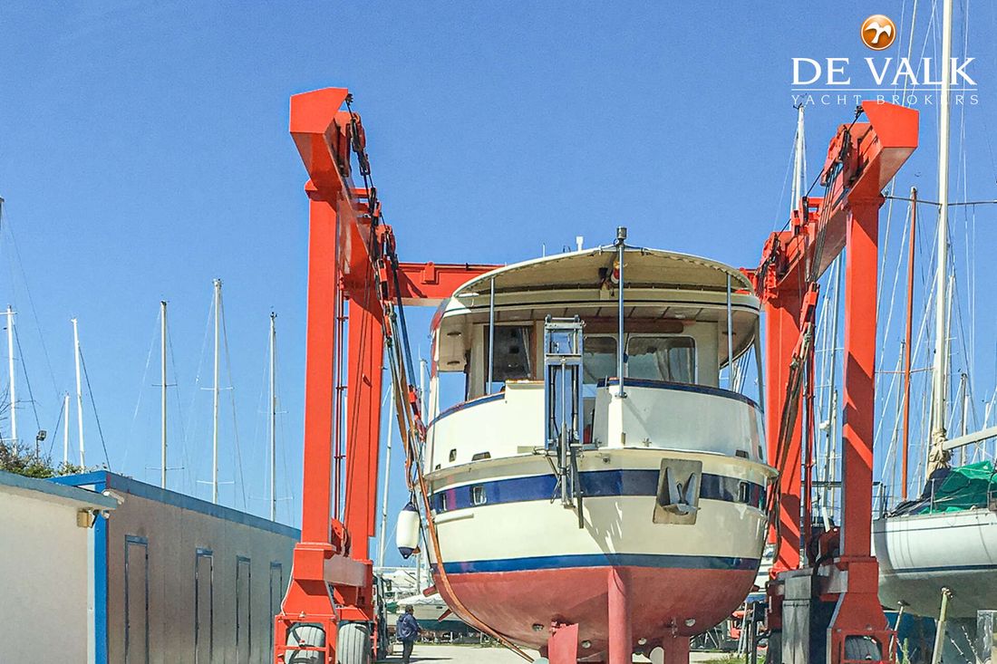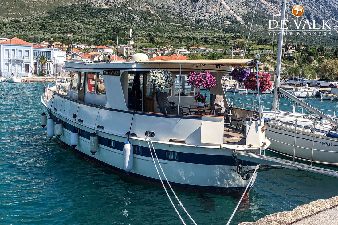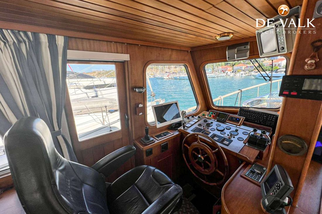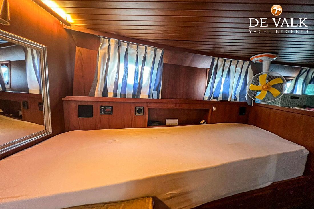 The De Ruiter 1550 Canoe Stern is a highly seaworthy and solidly built vessel, fully equipped for long and comfortable voyages. This robust classic features modern Mitsubishi engines, a spacious engine room with standing height, and high-quality insulation combined with double glazing, ensuring a quiet, safe, and energy-efficient cruising experience. Thanks to its practical layout, sturdy construction, and thoughtful details, you will feel at home on board immediately. The vessel is equipped with a powerful spudpole for enhanced maneuverability and a reliable anchoring.