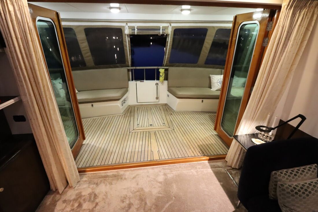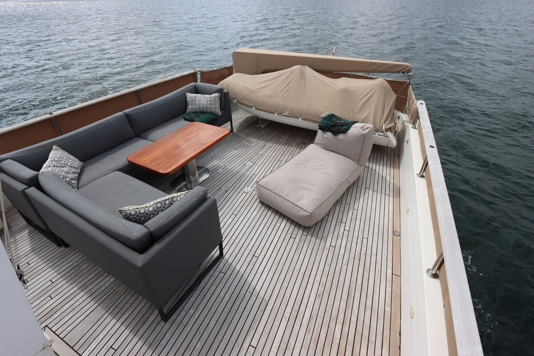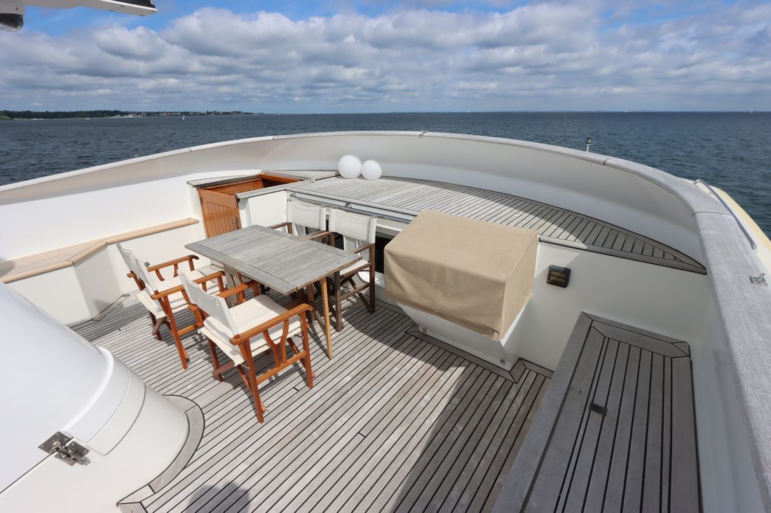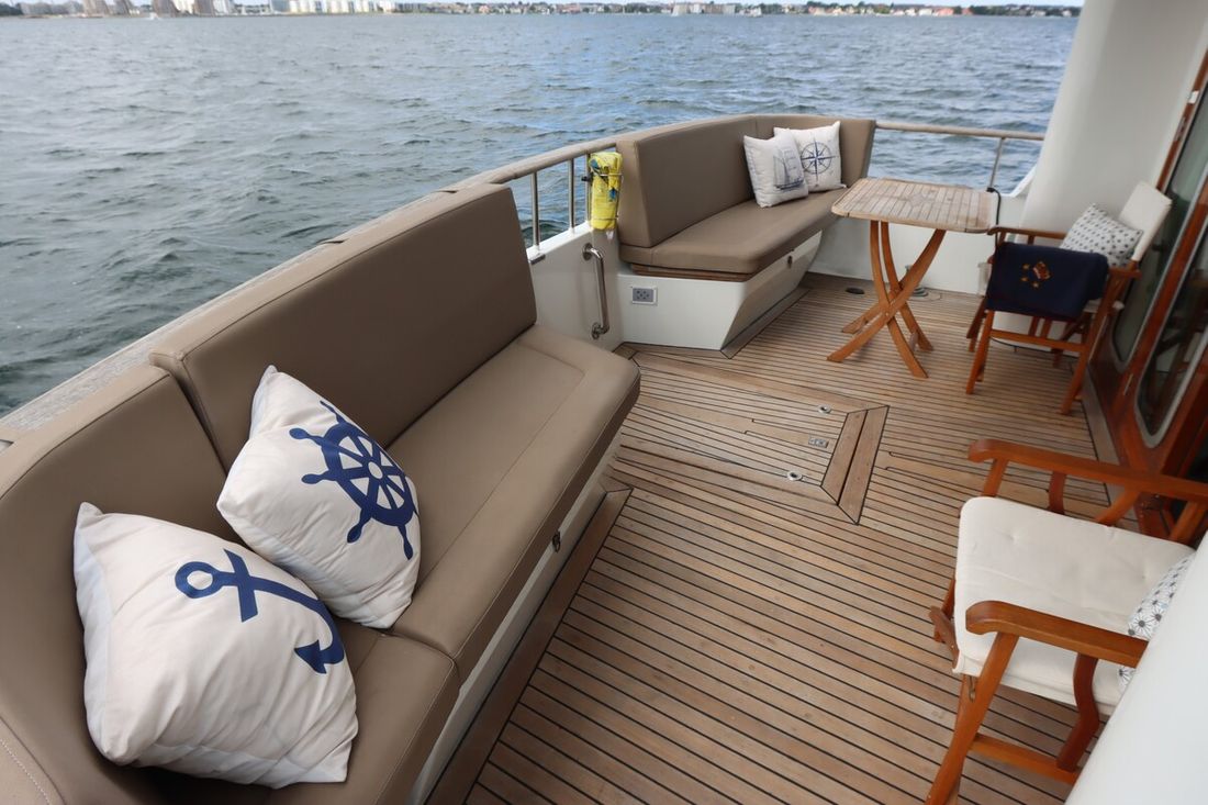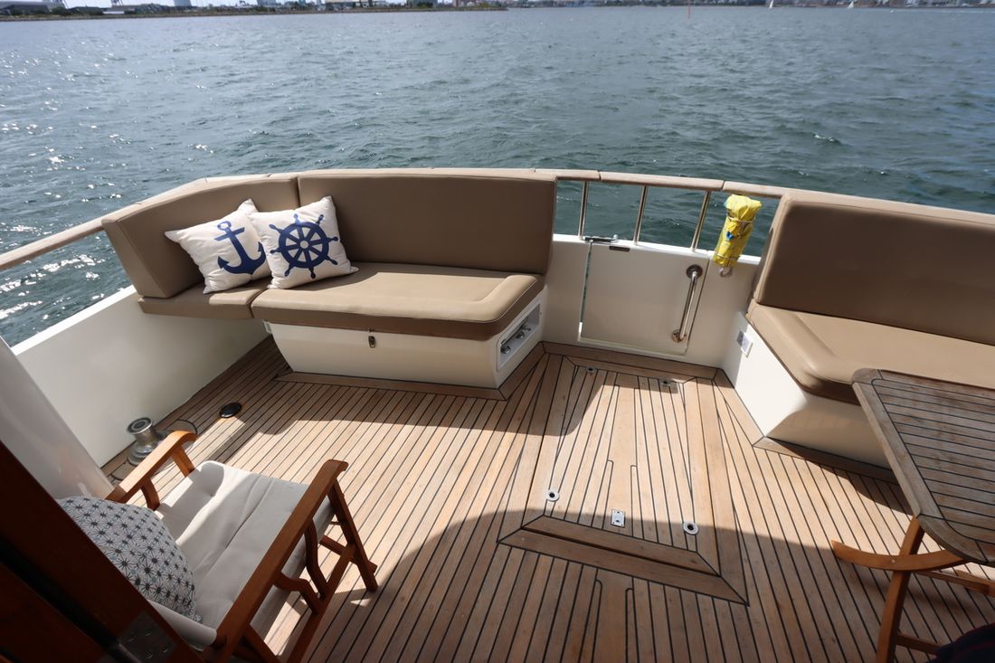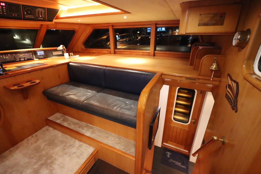 Anker Ankers & materiaal Aantal 2 Type Poolanker 125 kg Anker bevestiging ketting Ankerlier hydraulisch Opmerkingen Ankerlier Maxwell dubbel HWVC 3500, refit 2022 Dekuitrusting Bimini Buitenkussens Dekzeil(en) Zeerailing Zwemplatform Zwemtrap Preek- en hekstoel(en) Bijboot Bijboot Merk bijboot Grand Marine S330(2021) Vermogen bijboot 20 pk Bijboot buitenboordmotor Merk bijboot buitenboordmotor Yamaha(2021) Kraan Overig Teakdek Stootwillen, lijnen Kuiptafel -