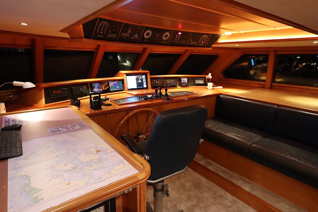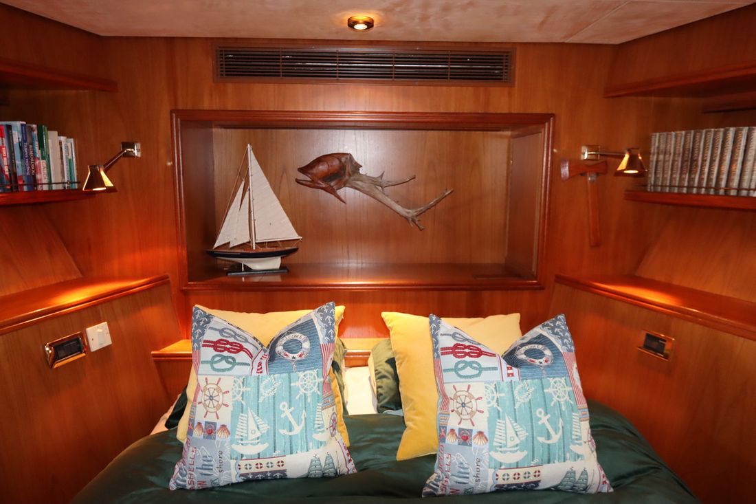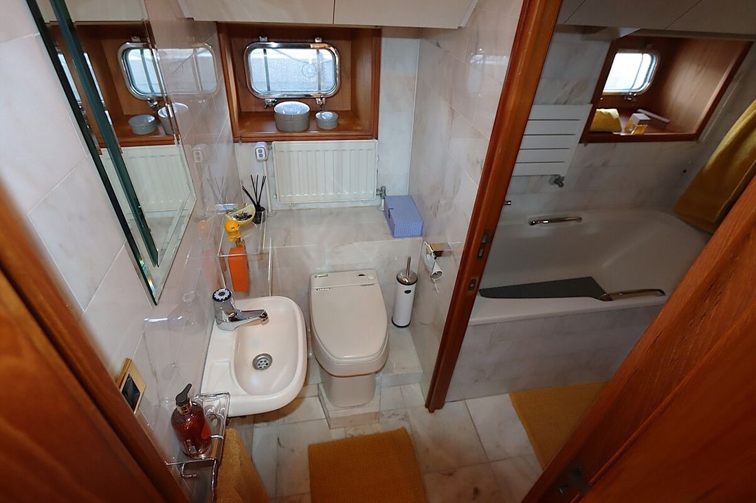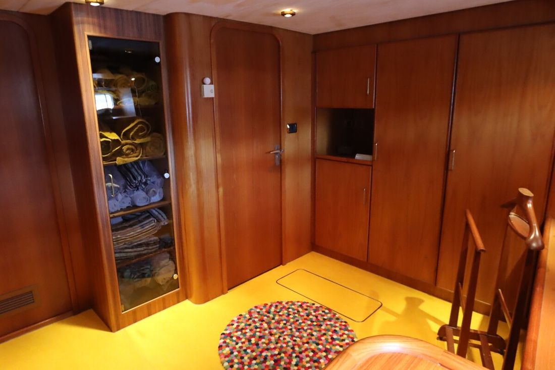 Ruimtes Salon Eethoek Machinekamer Hutten 3 Opmerkingen Hutten De walkin closet is makkelijk om te vormen tot een extra slaaphut Salon Aankleding Type interieur Klassiek, warm Kussens Gordijnen Water Watertank & materiaal Opmerkingen Watertank & materiaal 2 tanks, 1x 2763 en 1x 5845 ltr. met mangat en gereinigd in 2021 Inhoud 8608 liter Materiaal watertank staal Watertankmeter Inhoud 2885 liter Materiaal vuilwatertank staal Vuilwatertank & materiaal Vuilwatertankmeter Vuilwatertank afvoerpomp Watersysteem druksysteem Warm water Opmerkingen Warm water Via de CV ketel. In 2020 is een extra 220V boiler geïnstalleerd . In de kombuis is een Quoker met bruisend en kokend water(2020) dekwaspomp buitendouche Sanitair Aantal douches 2 Aantal baden 1 Toiletten 3 Opmerkingen Toiletten Mobiflash Elektrisch Entertainment TV Opmerkingen TV met lift in salon Keuken Kooktoestel & brandstof Opmerkingen Kooktoestel & brandstof Siemens(2023) Aantal 5 Kookbrandstof inductie Oven Opmerkingen Oven AEG BBP8000B1(2023) Aantal 1 Magnetron Opmerkingen Magnetron AEG MBE5658SEB (2023) Aantal 1 Koelkast & voeding Voeding elektrisch Vriezer Klimaatregeling Verwarming 1 CV Opmerkingen Verwarming Kabola KB40(2022) Airconditioning Opmerkingen Airconditioning 7 units, gehele installatie gerenoveerd in 2022 -