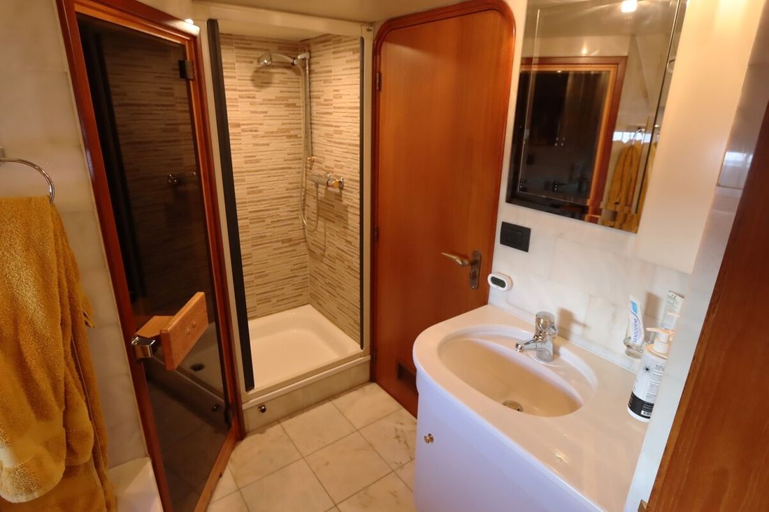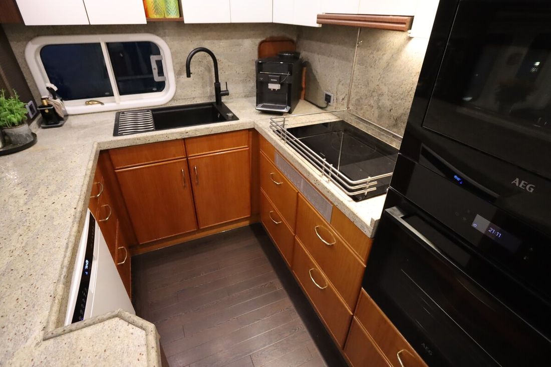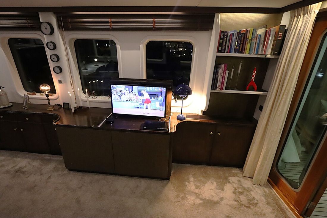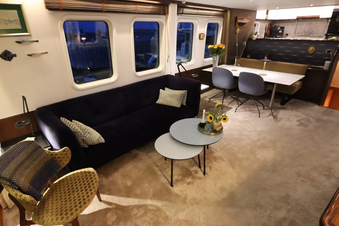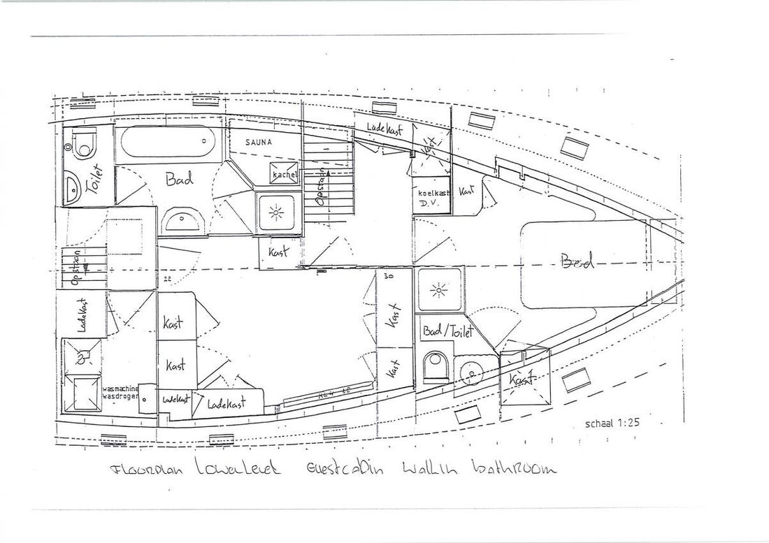 Ruimtes Salon Eethoek Machinekamer Hutten 3 Opmerkingen Hutten De walkin closet is makkelijk om te vormen tot een extra slaaphut Salon Aankleding Type interieur Klassiek, warm Kussens Gordijnen Water Watertank & materiaal Opmerkingen Watertank & materiaal 2 tanks, 1x 2763 en 1x 5845 ltr. met mangat en gereinigd in 2021 Inhoud 8608 liter Materiaal watertank staal Watertankmeter Inhoud 2885 liter Materiaal vuilwatertank staal Vuilwatertank & materiaal Vuilwatertankmeter Vuilwatertank afvoerpomp Watersysteem druksysteem Warm water Opmerkingen Warm water Via de CV ketel. In 2020 is een extra 220V boiler geïnstalleerd . In de kombuis is een Quoker met bruisend en kokend water(2020) dekwaspomp buitendouche Sanitair Aantal douches 2 Aantal baden 1 Toiletten 3 Opmerkingen Toiletten Mobiflash Elektrisch Entertainment TV Opmerkingen TV met lift in salon Keuken Kooktoestel & brandstof Opmerkingen Kooktoestel & brandstof Siemens(2023) Aantal 5 Kookbrandstof inductie Oven Opmerkingen Oven AEG BBP8000B1(2023) Aantal 1 Magnetron Opmerkingen Magnetron AEG MBE5658SEB (2023) Aantal 1 Koelkast & voeding Voeding elektrisch Vriezer Klimaatregeling Verwarming 1 CV Opmerkingen Verwarming Kabola KB40(2022) Airconditioning Opmerkingen Airconditioning 7 units, gehele installatie gerenoveerd in 2022 -
