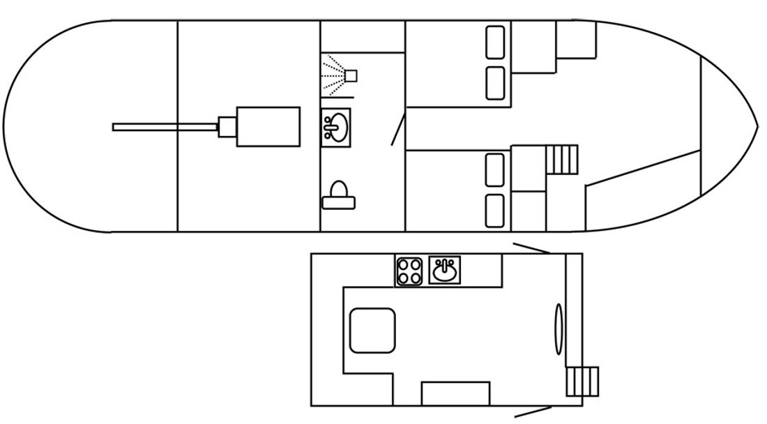 Ruimtes Opmerkingen Stahoogte stuurhut (ca.) 1,96 m, kombuis / keuken (ca.) 1,96 m, salon (ca.) 2,18 m, gang / corridor (ca.) 1.75 m, badkamer / toilet (ca.) 1,92 m, douche (ca.) 2,23 m Hutten 0 Opmerkingen Slaapplaatsen 2x 2-pers bed, Stuurhut: 1x 2-pers Water Watertank & materiaal Opmerkingen Watertank & materiaal 1800 liter, 3 kunststof tank(s) Vuilwatertank & materiaal Opmerkingen Vuilwatertank & materiaal 450 liter, 1 kunststof tank(s) Opmerkingen Watersysteem elektrische waterpomp dekwaspomp Sanitair Aantal douches 1 Aantal baden 1 Toiletten 0 Opmerkingen Toiletten Rheinstrom handpomptoilet Handmatig Entertainment TV Keuken Kooktoestel & brandstof Opmerkingen Kooktoestel & brandstof 4-pits kooktoestel, op gas Aantal 1 Kookbrandstof gas Opmerkingen Oven oven Aantal 0 Aantal 0 Koelkast & voeding Opmerkingen Koelkast & voeding aanwezig, 230 Volt Voeding elektrisch Opmerkingen Vriezer vriesvakje Klimaatregeling hete lucht kachel CV Opmerkingen Verwarming Kabola H400- combi centrale verwarming, combi ketel, op diesel, & vloerverwarming, & 1 infraroodpane(e)l(en) -
