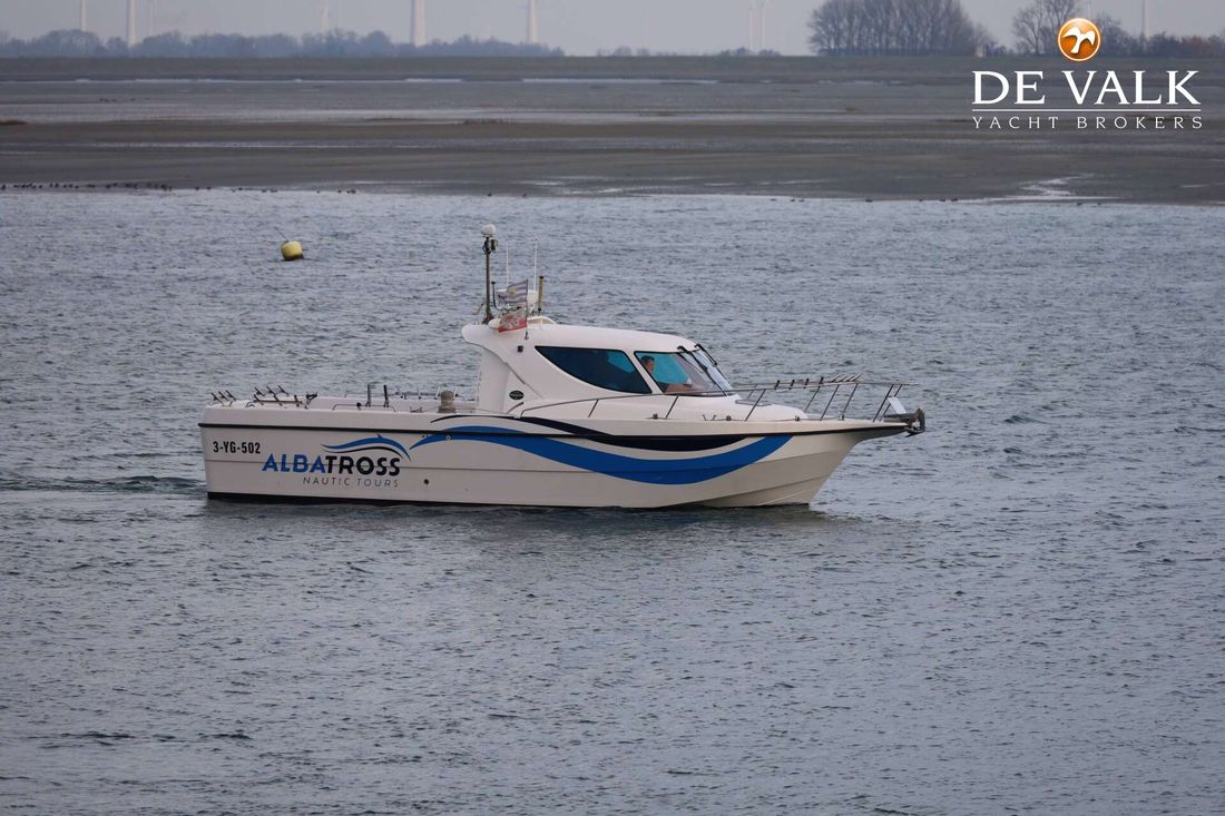 The Albatross, a Waypoint 34 is a solid and purpose-built fishing vessel for North Sea conditions. The Waypoint 34 stands out with its impressive 13 m² aft deck, safe walkaround thanks to high freeboard, and highly practical fishing layout with ample storage and large hold. There is even room for a quick nap and with the saloon galley you can prepare some meals as well. Powered by a reliable Yanmar diesel engine and a full set of recent electronics, she can be your reliable partner on your fishing expeditions.