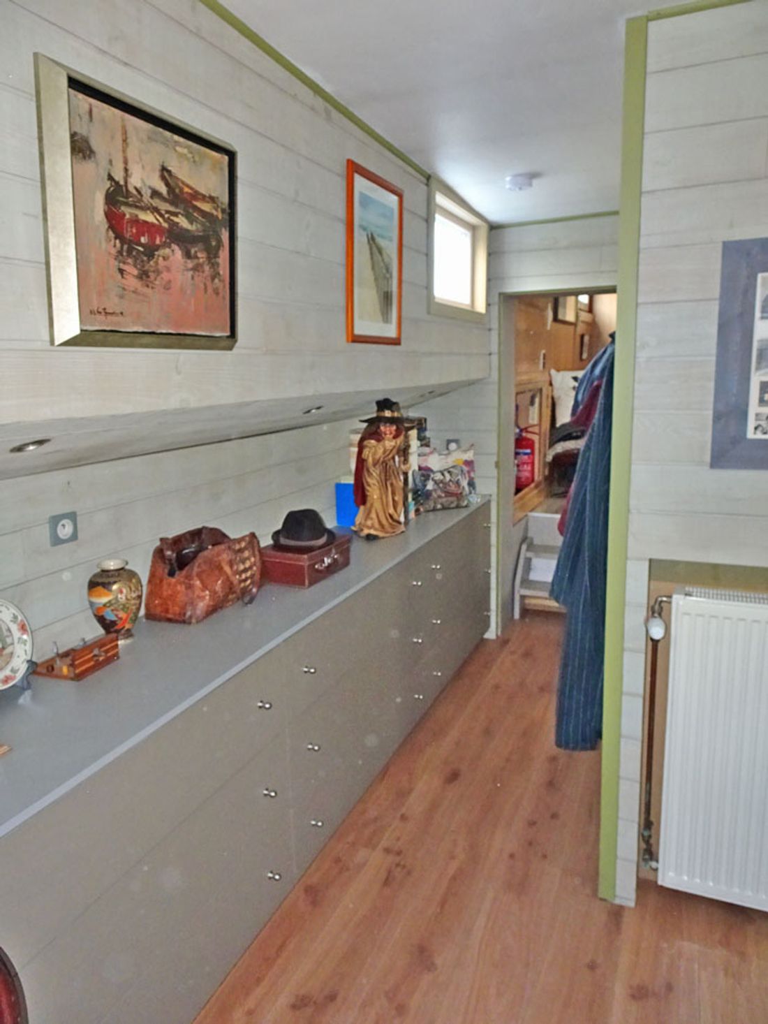 Voormalig binnenvaart vrachtschip dat door de huidige eigenaar is heringericht tot een comfortabel Varend Woonschip. De techniek is in 2007 geüpgraded met onder andere een nieuwe dieselmotor met een 230 Volt generator aan de motor alsmede de PTO ten behoeve van de hydraulische boegschroef. De stuurhut is klapbaar waardoor er een doorvaart hoogte te realiseren is van ca. 2,85 m. In de salon is een ruime keuken geplaatst en verder naar voren bevindt zich de eigenaarshut met riante badkamer. De achterroef dient nog naar eigen idee verder afgewerkt te worden. Voorzien van kunststof ramen en dubbel glas is het een schip dat uitstekend geschikt is om aan boord te wonen en/of lange reizen mee te ondernemen.