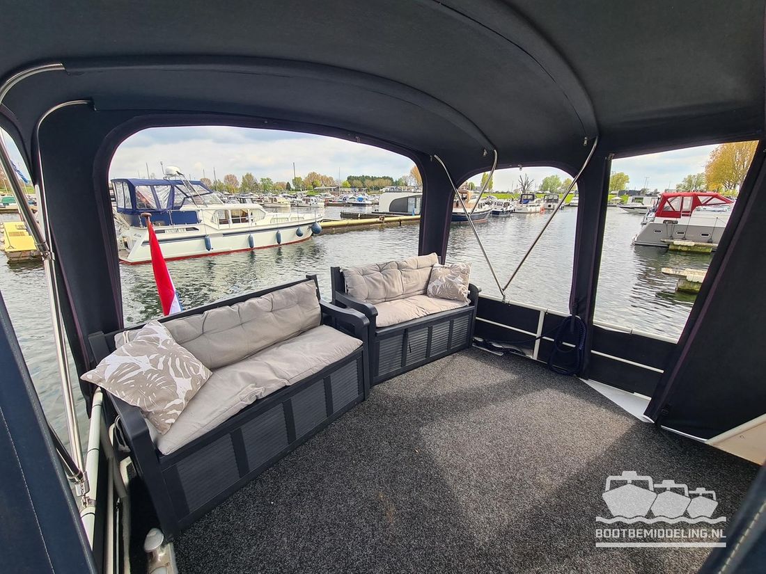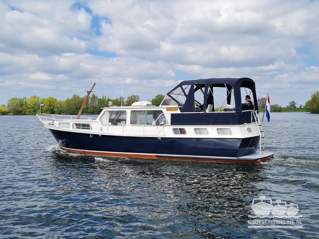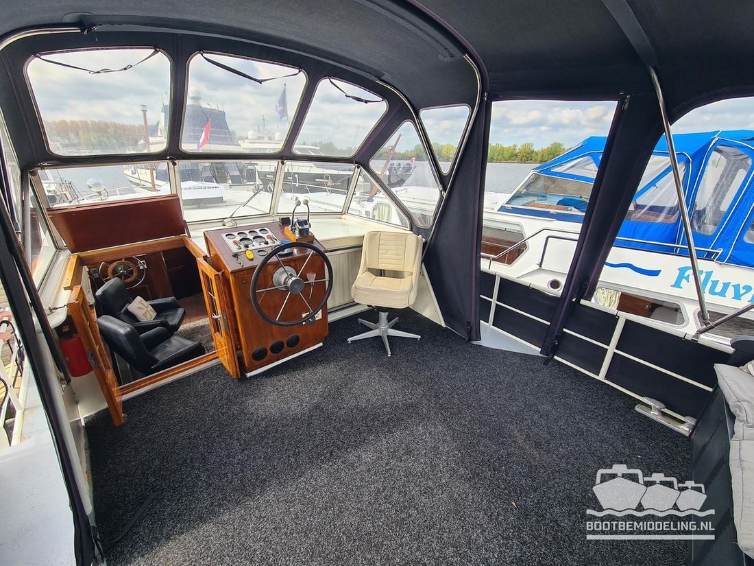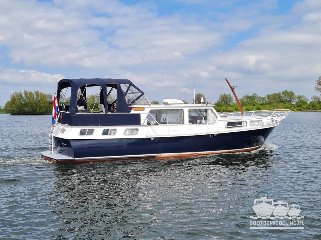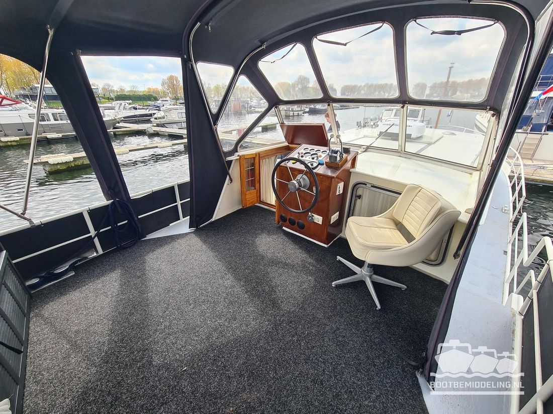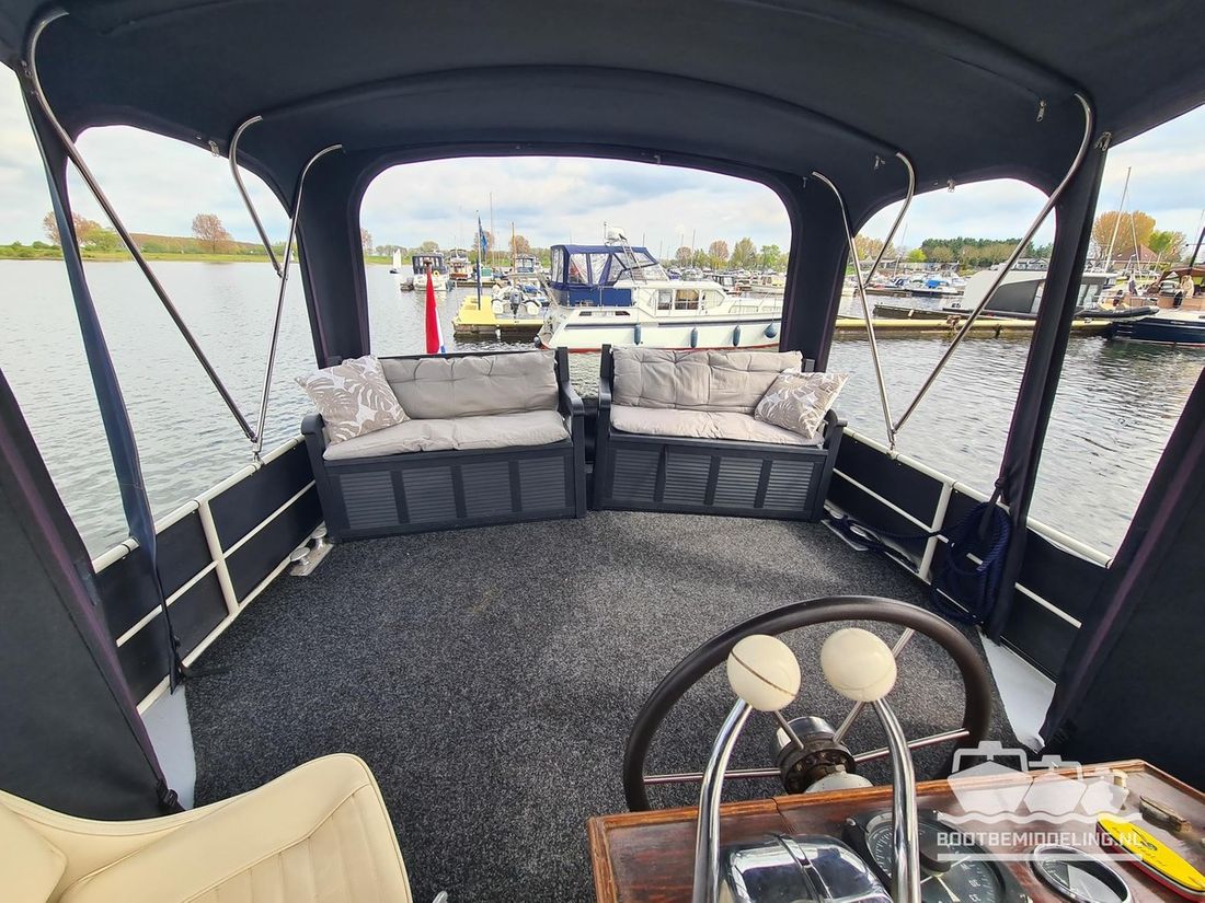 Deze door Holterman & De Vries gebouwde Blauwe Hand Kruiser ademt al direct bij het aan boord stappen degelijkheid uit. Het schip is uitzonderlijk robuust gebouwd en heeft een interieur dat boven menig leeftijdsgenoten uitsteekt. Tal van lades en kasten, ronde vormen en de juiste verhoudingen kenmerken de bouw door een uitstekende scheepswerf en dat is exact wat u aantreft in dit schip. Deze kenmerken vormen een goede basis voor een langdurig verblijf aan boord of permanente bewoning. De laatste jaren zijn veel vernieuwingen gedaan, zoals de installatie van een Kabola 400 HR combi, een 3500 kWh dak-airco en nieuwe matrassen. Daarnaast is ook de gas installatie verwijderd en vervangen door een 1 fase Siemens elektrische kookplaat. Een omvormer, een generator en een groot accupakket ontbreken uiteraard ook niet. Gelijktijdig met het vernieuwen van de antifouling + anodes, zijn ook de vetkoorden vernieuwd, zijn alle standpijpen vervangen door huiddoorvoeren met kogelkranen en tot slot zijn in de bilge voorin + achterin 2 hoogwateralarmen geïnstalleerd. In de geordende motorkamer vindt u twee goed onderhouden Ford Lehman motoren van 120 pk per stuk, voorzien van bun koeling. De uitlaten zijn vernieuwd en watergekoeld gemaakt. Dit schip is instap klaar en biedt u alle comfort tijdens lange reizen of bewoning.