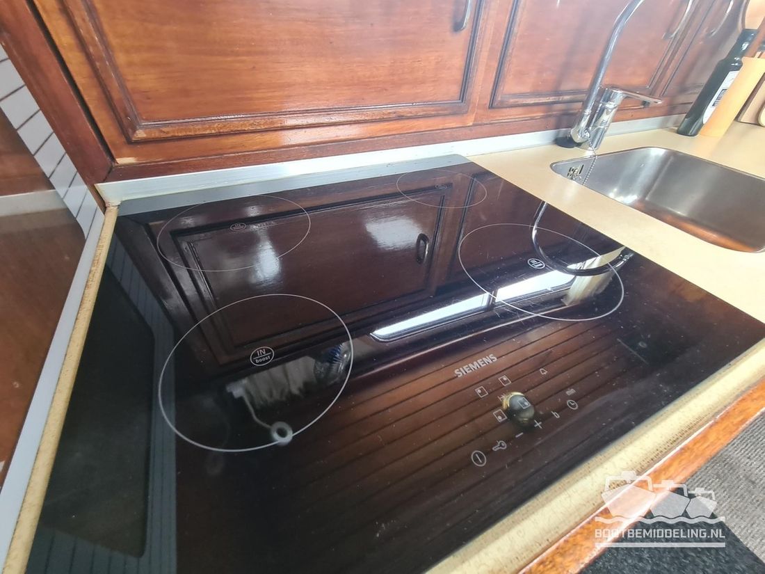 Ruimtes Salon Opmerkingen Stahoogte Salon: 188 cm, keuken: 190 cm, slaapcabine voorpiek: 190 cm, natte cel: 185 cm, slaapcabine achter: 187 cm, stuurpositie achterdek: 200 cm. Eethoek Machinekamer Hutten 2 Slaapplaatsen 6 Opmerkingen Slaapplaatsen Boeg 2x 195 x 80 cm, achterkajuit 210 x 135 cm, dinette 205 x 115 cm Aankleding Type interieur Klassiek, warm Opmerkingen Type interieur matrassen vernieuwd 2022 Kleur stoffering gemêleerd Matrassen Kussens Gordijnen Water Watertank & materiaal Inhoud 500 liter Materiaal watertank RVS Watertankmeter Vuilwatertank & materiaal Opmerkingen Vuilwatertank & materiaal Tank aanwezig in zwemplateau, niet aangesloten en/of voorbereid Watersysteem druksysteem Warm water Opmerkingen Warm water Via Kabola HR 400 Combi Sanitair Aantal douches 1 Opmerkingen Aantal douches automatische vlotterschakelaar Toiletten 1 Opmerkingen Toiletten recent geplaatst Elektrisch Entertainment Radio/CD-speler Keuken Kooktoestel & brandstof Opmerkingen Kooktoestel & brandstof Siemens, 1 fase Aantal 4 Kookbrandstof elektrisch Koelkast & voeding Opmerkingen Koelkast & voeding Waeco Inhoud Koelkast 80 liter Voeding elektrisch Vriezer Opmerkingen Vriezer in de koelkast Klimaatregeling CV Opmerkingen Verwarming Kabola HR 400 combi, 2021 nieuw geplaatst Airconditioning Opmerkingen Airconditioning 2021 nieuw geplaatst Merk airconditioning Vechline Vermogen Airconditioning 3500 -