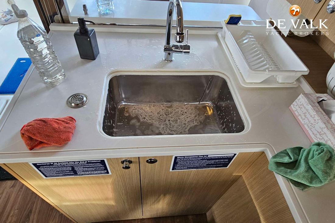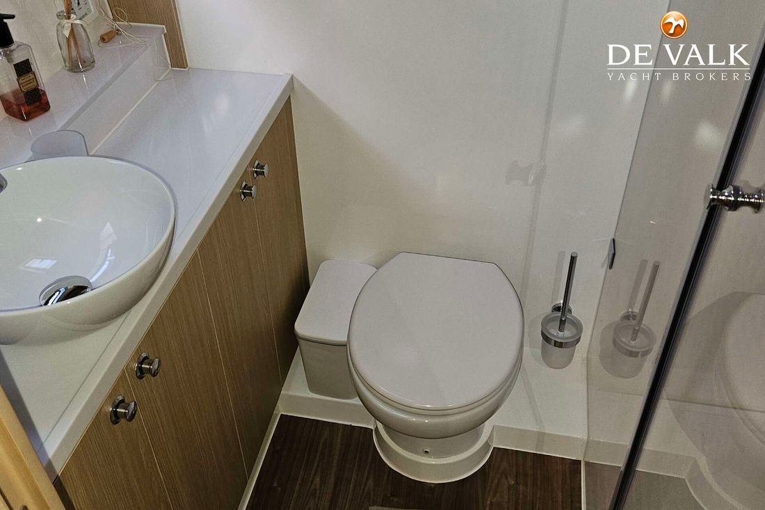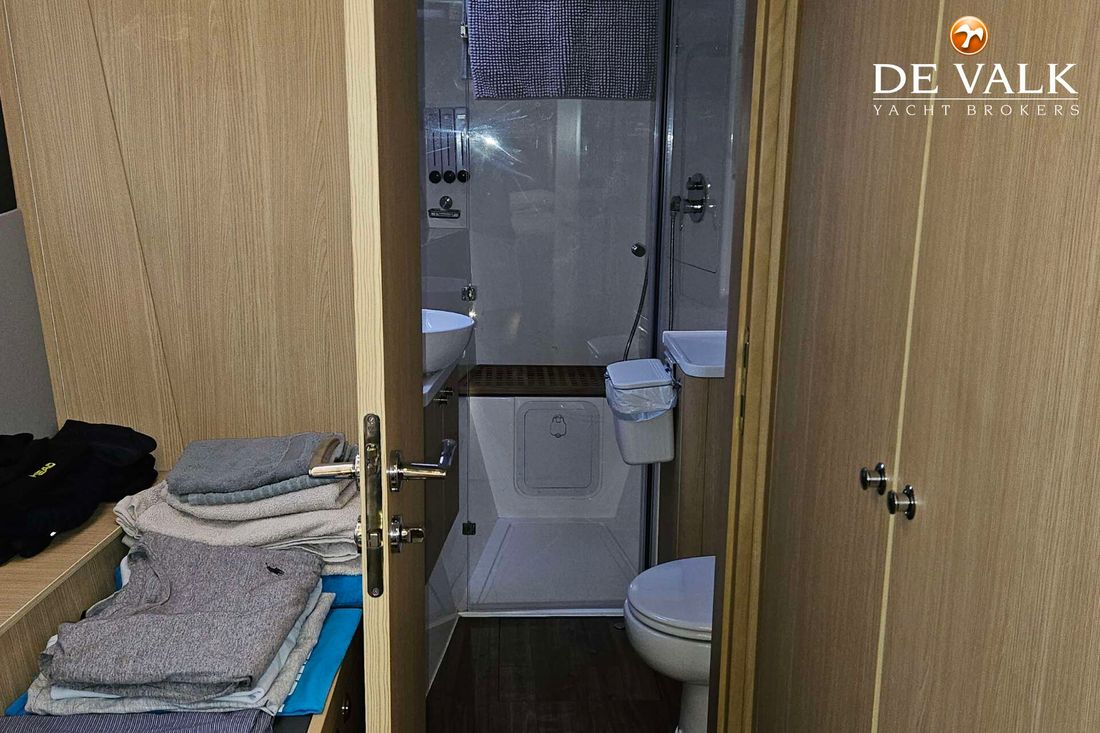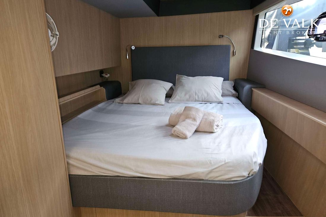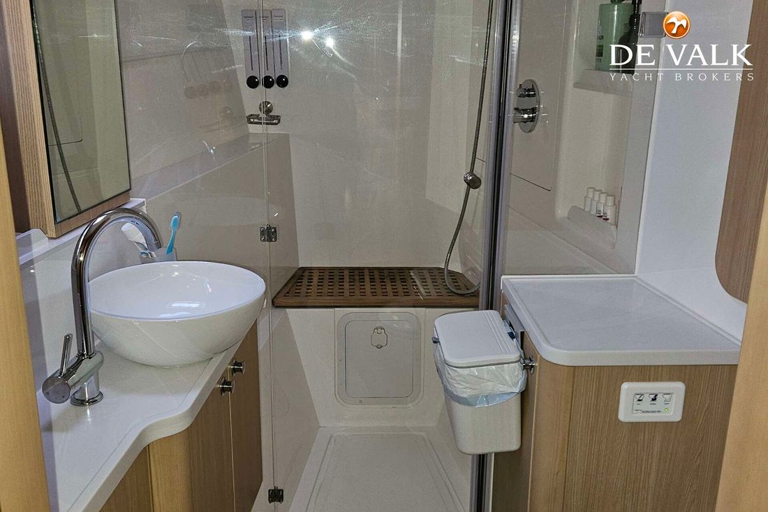 The Aquila 42 Yacht is the best example of maximum volume in lesser length and offers its owner and guests space of a much larger mono hull 50-55 feet yacht. She offers three spacious staterooms, a utility cabin, Volvo Penta engines, loads of storage, and comfortable spaces in the cockpit, flybridge, and foredeck. Whether you plan on long-distance cruising or entertaining at your favourite local destination. A key design element is the absence of a hydraulic bathing platform, opting instead for a fixed platform that remains high above the water to avoid contact.