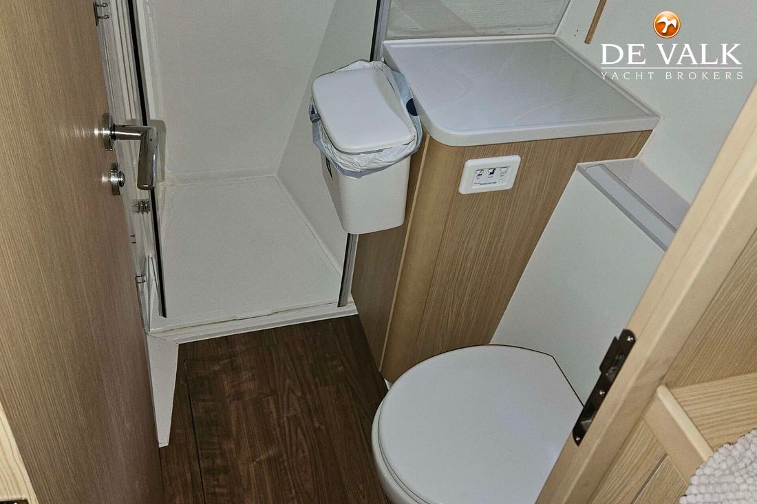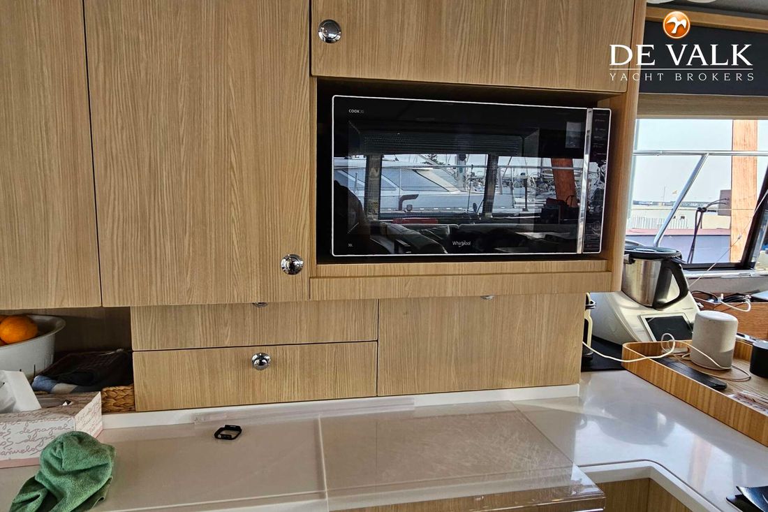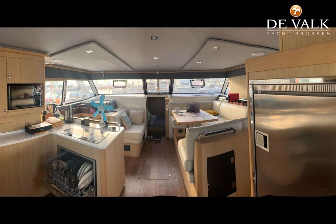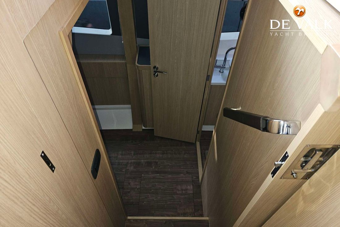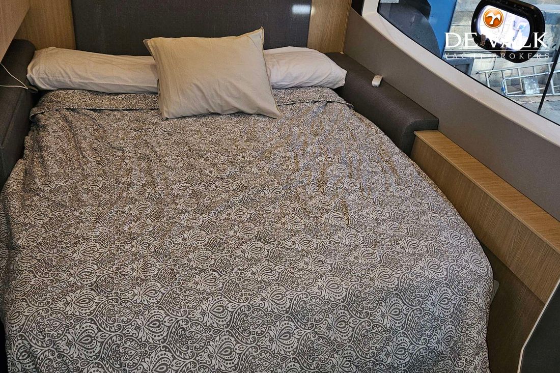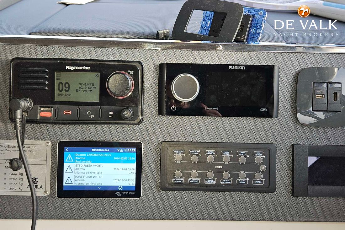 The Aquila 42 Yacht is the best example of maximum volume in lesser length and offers its owner and guests space of a much larger mono hull 50-55 feet yacht. She offers three spacious staterooms, a utility cabin, Volvo Penta engines, loads of storage, and comfortable spaces in the cockpit, flybridge, and foredeck. Whether you plan on long-distance cruising or entertaining at your favourite local destination. A key design element is the absence of a hydraulic bathing platform, opting instead for a fixed platform that remains high above the water to avoid contact.