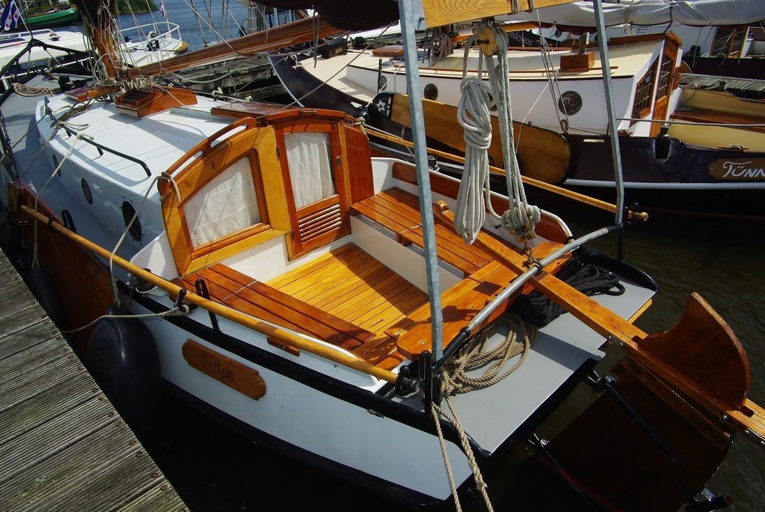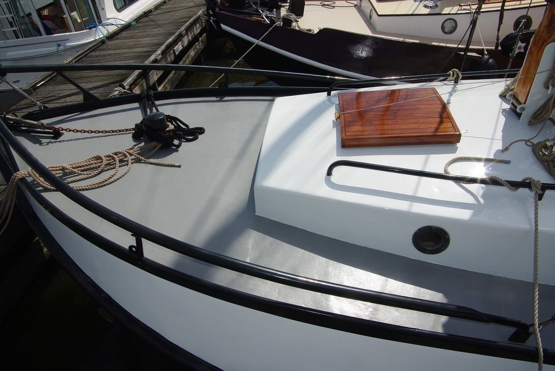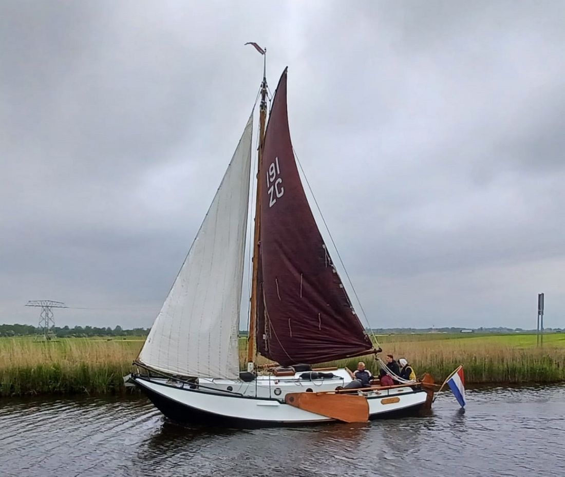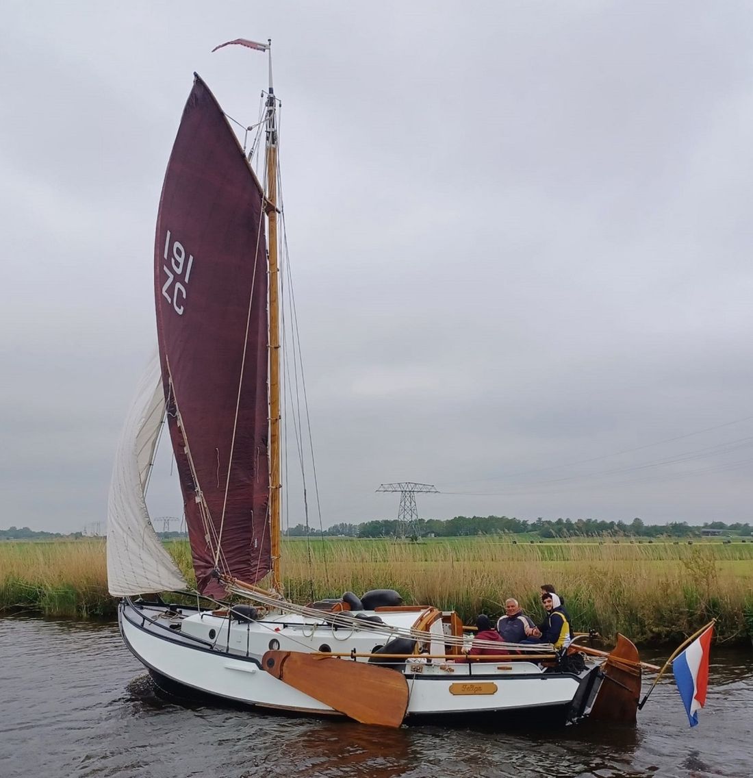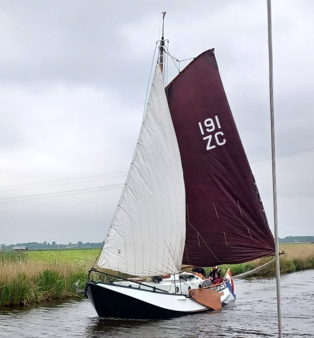 Algemeen Type tuigage gaffel Aantal masten 1 Mast materiaal hout Verstaging staaldraad Zeiloppervlak 38.2 m² Aantal zeilen 2 Zeilen materiaal dacron Groot- en achterzeilen Grootzeil Opmerkingen Grootzeil kleur bruin Voorzeilen Fok Opmerkingen Fok kleur wit. Lieren Aantal 2 -