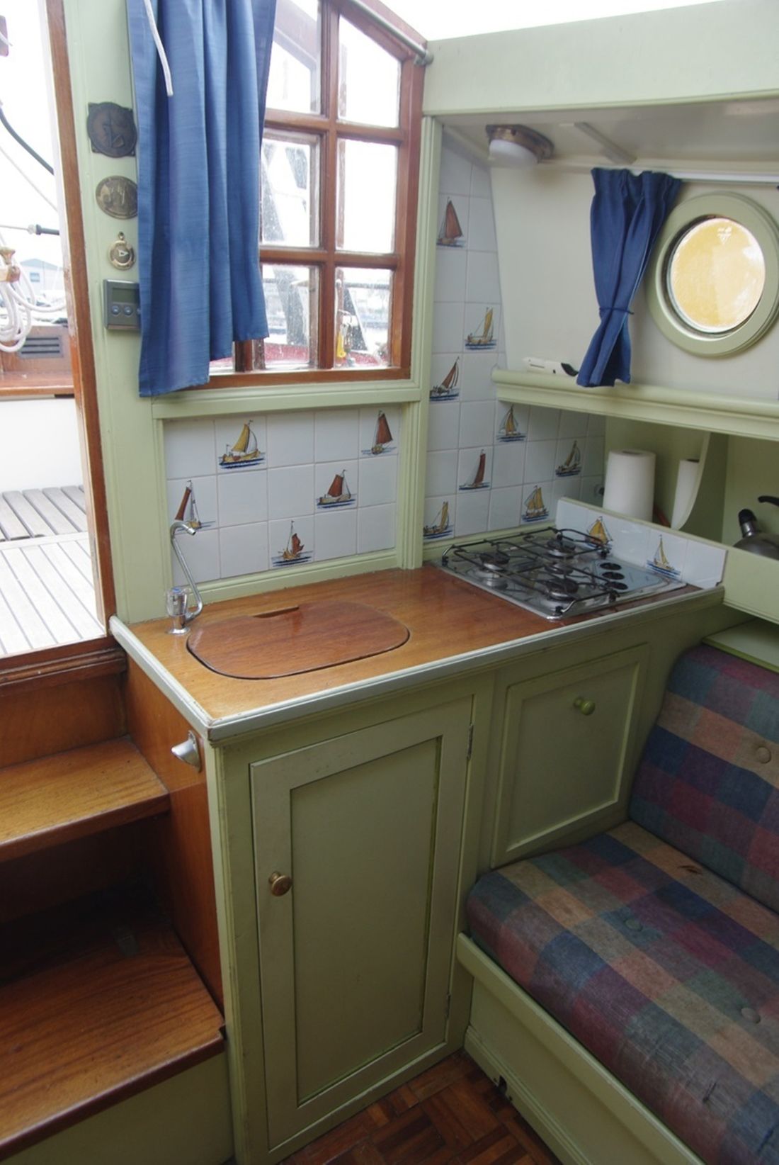 Ruimtes Opmerkingen Stahoogte in kombuis onder grote schuifluik en 1.78 mtr minimaal. Eethoek Machinekamer Hutten 1 Opmerkingen Hutten Vooronder met 1 dubbel en 2 enkele kooien. Salon Aankleding Type interieur Modern, licht Opmerkingen Type interieur licht interieur. Kleur stoffering gemêleerd Matrassen Kussens Gordijnen Water Watertank & materiaal Inhoud 100 liter Materiaal watertank kunststof Inhoud 60 liter Materiaal vuilwatertank kunststof Vuilwatertank & materiaal Dekafzuiging vuilwater Watersysteem Pressure system Sanitair Toiletten 1 Handmatig Entertainment Opmerkingen Radio/CD-speler Luidsprekers wel aanwezig. Keuken Kooktoestel & brandstof Aantal 3 Kookbrandstof gas Koelkast & voeding Opmerkingen Koelkast & voeding Koelbox is niet vast aangesloten aan het 12 volt boordnet. Inhoud Koelkast 25 liter Voeding elektrisch -