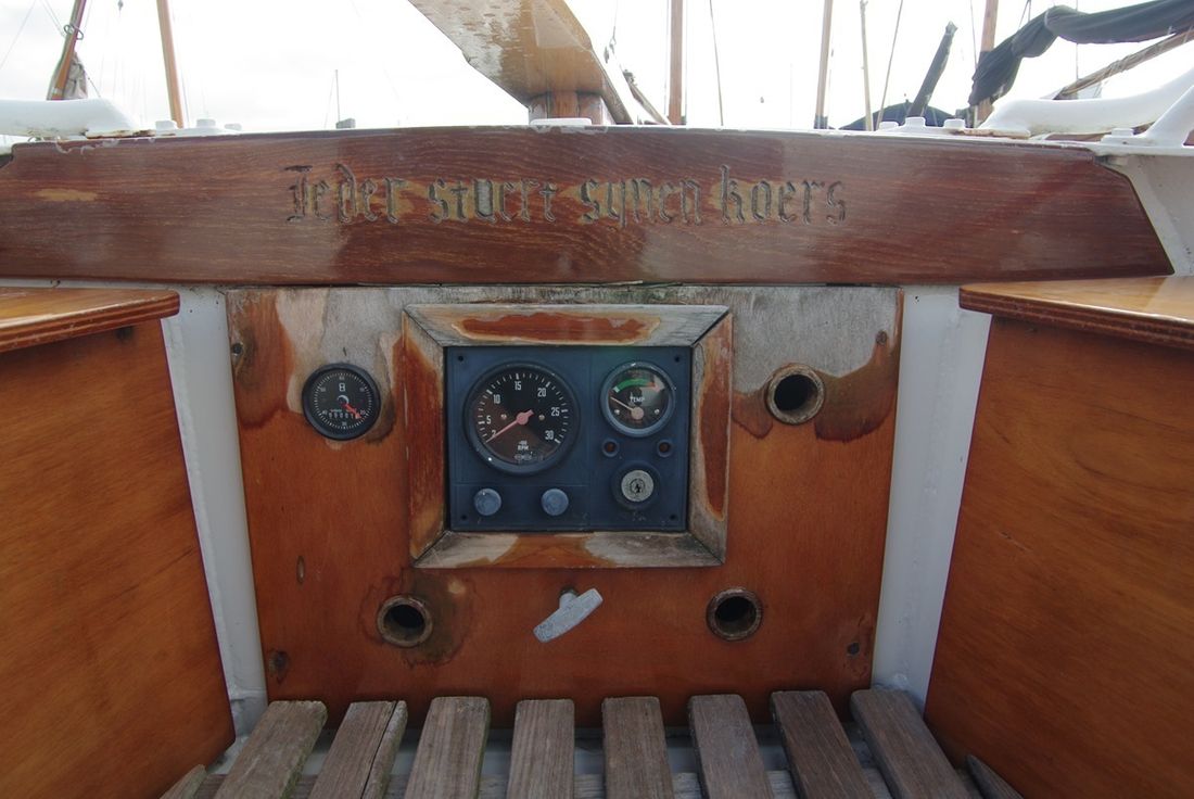 Motorisatie Aantal identieke motoren 1 Start type elektrisch Hoofdmotor Type binnenboord Merk Volvo Penta Model MD11C Bouwjaar 1978 Aantal cilinders 2 Urenteller Opmerkingen Draaiuren urenteller na de laatste servicebeurt gemonteerd. Brandstof diesel Verbruik 1 liter/uur Merk keerkoppeling Volvo Penta Aandrijving Overbrenging schroefas Voortstuwing schroef Koeling direct Tank Brandstoftank aantal Aantal 1 Totale inhoud brandstoftank(s) 40 liter Materiaal brandstoftank RVS Meetinstrumenten motor Toerenteller Temperatuurmeter Elektriciteit Accu Aantal 1 xAh per accu 95 Dynamo Voltmeter 12V -