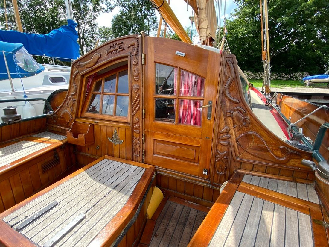 Wat een rijk uitgevoerd exemplaar van de door Gipon ontworpen een na grootste Vollenhovense Bol. Veel prachtig houtwerk maar geen teak op het dek wat in onze ogen een pluspunt is. Doorvaarthoogte van 11,45 m. Hiermee kunt u bijvoorbeeld de Hollandse en Stichtse Brug onder door. Tevens is er ook nog een elektrisch lier om de mast mee te strijken. De boot is van de tweede eigenaar en een ware liefhebber.