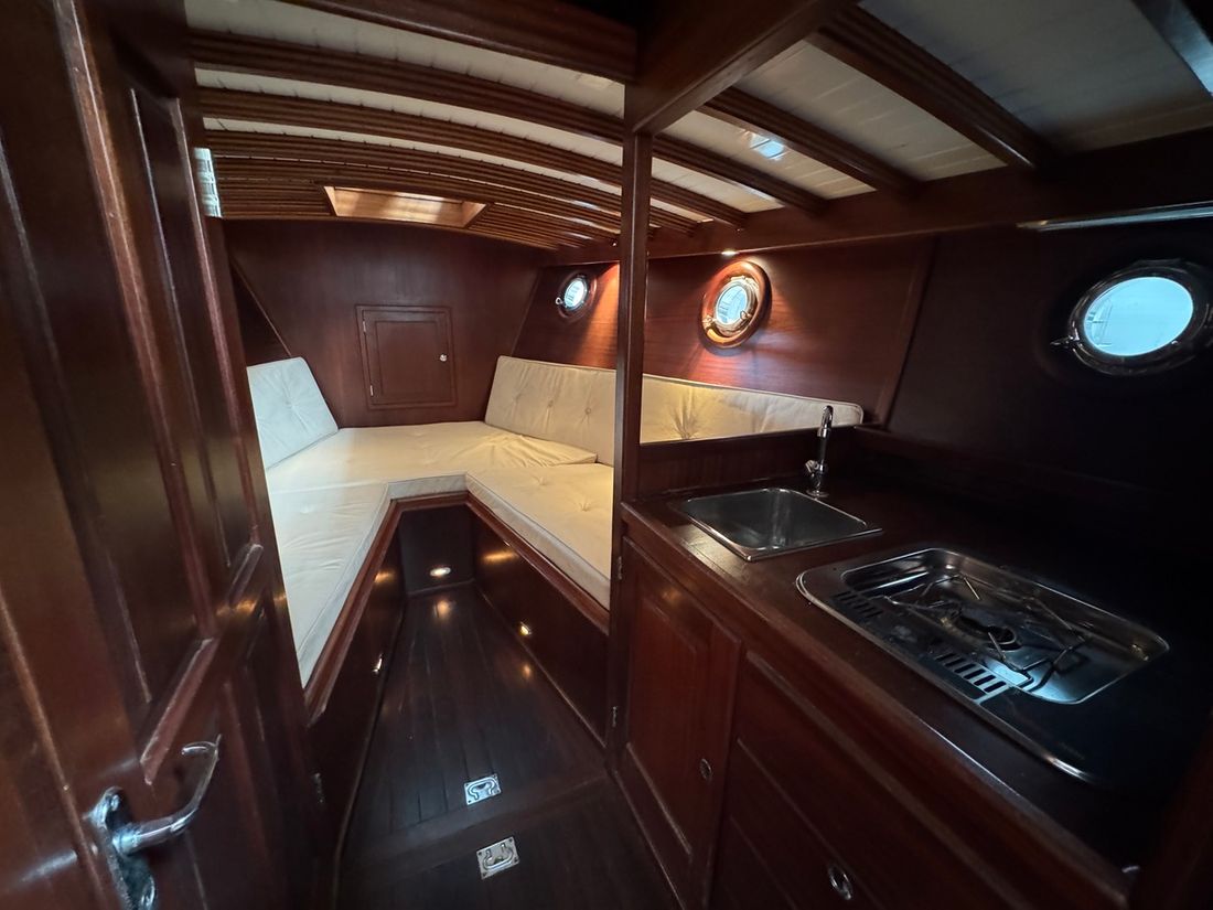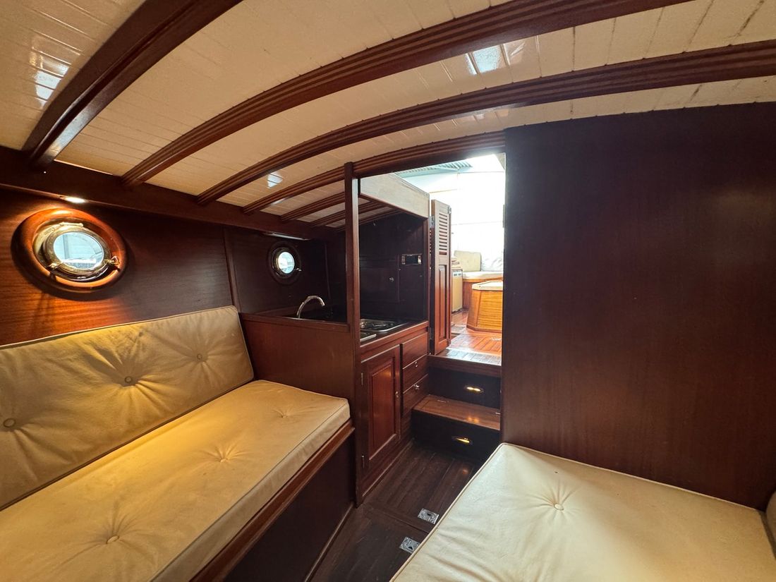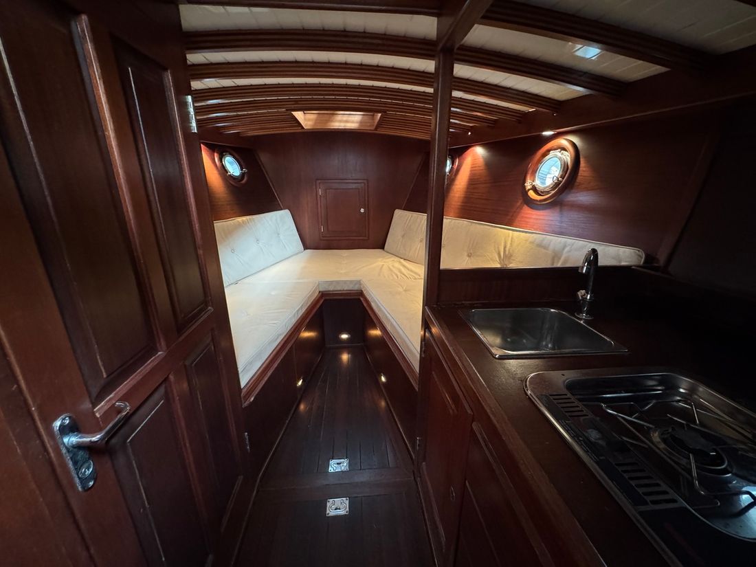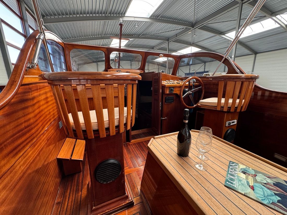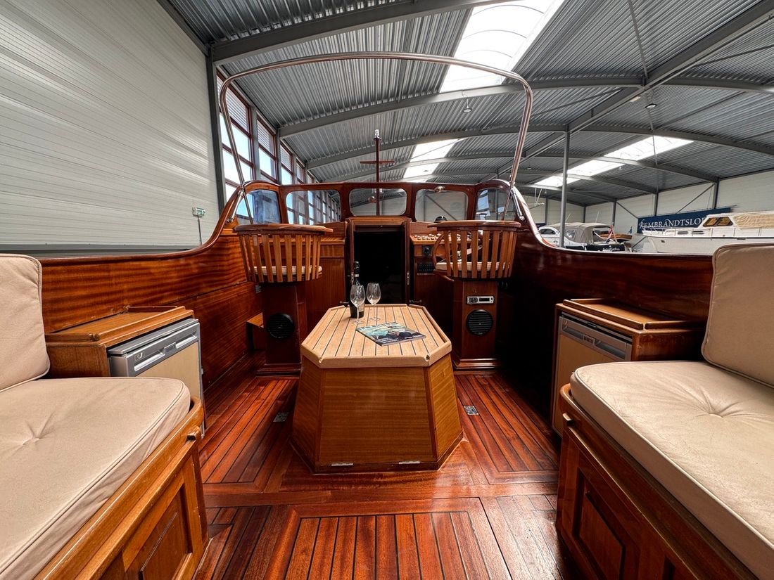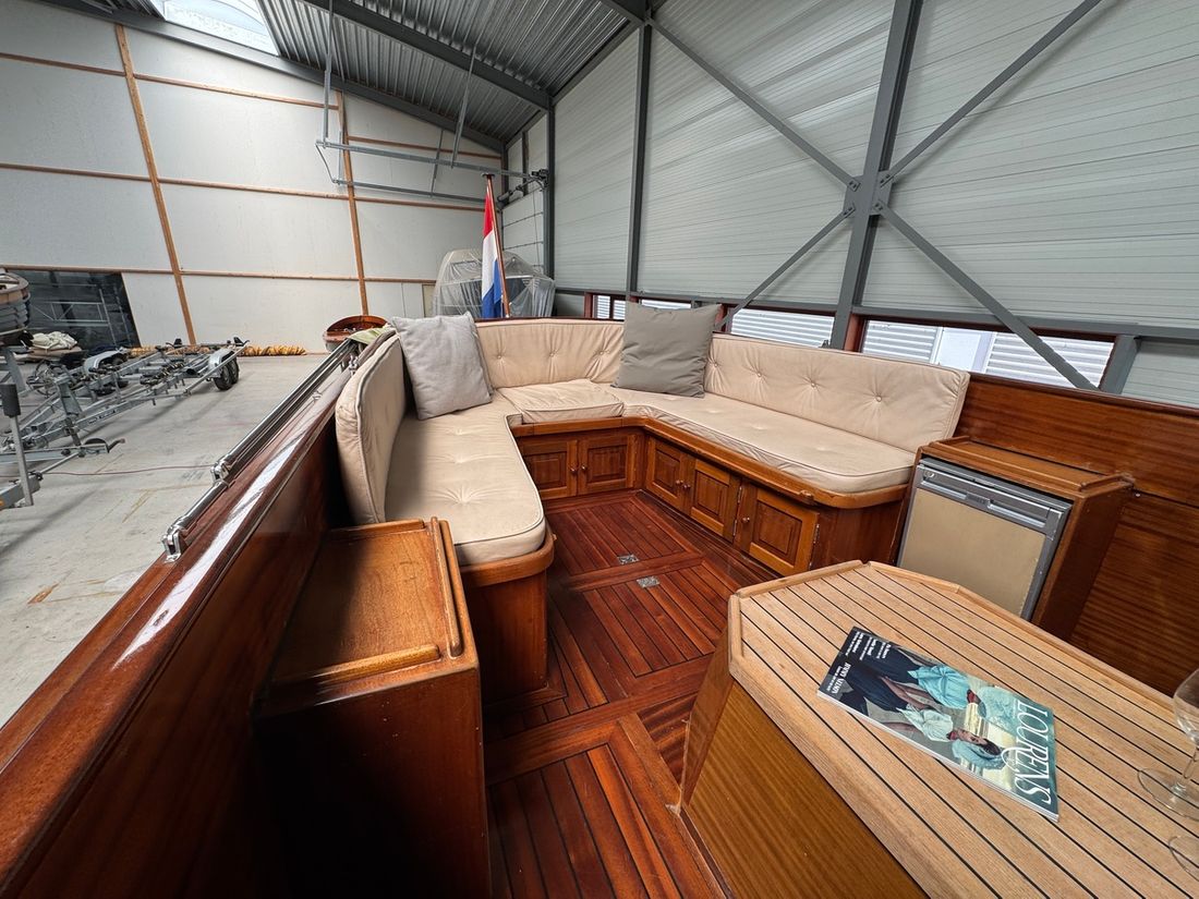 Binnen wacht een warm klassiek interieur met comfortabele witte stoffering en mahoniehouten accenten. De salon biedt ruimte en sfeer, met slaapplaatsen voor 2 vaste en 2 extra gasten. Met voorzieningen als een elektrisch toilet, radio/CD-speler, koelkast en spiritus kooktoestel, bent u van alle gemakken voorzien tijdens een dagtrip of weekendje weg. De kuip met buiskap, kuiptent, teakdek en zwemplatform nodigt uit tot ontspannen buitenleven. Deze Rapsody is vaarklaar, btw betaald, en ligt te wachten op een nieuwe eigenaar in de verkoophaven van Heeg. Interesse? Ervaar zelf de klasse en het comfort van deze unieke verschijning ? maak vandaag nog een afspraak voor een bezichtiging!
