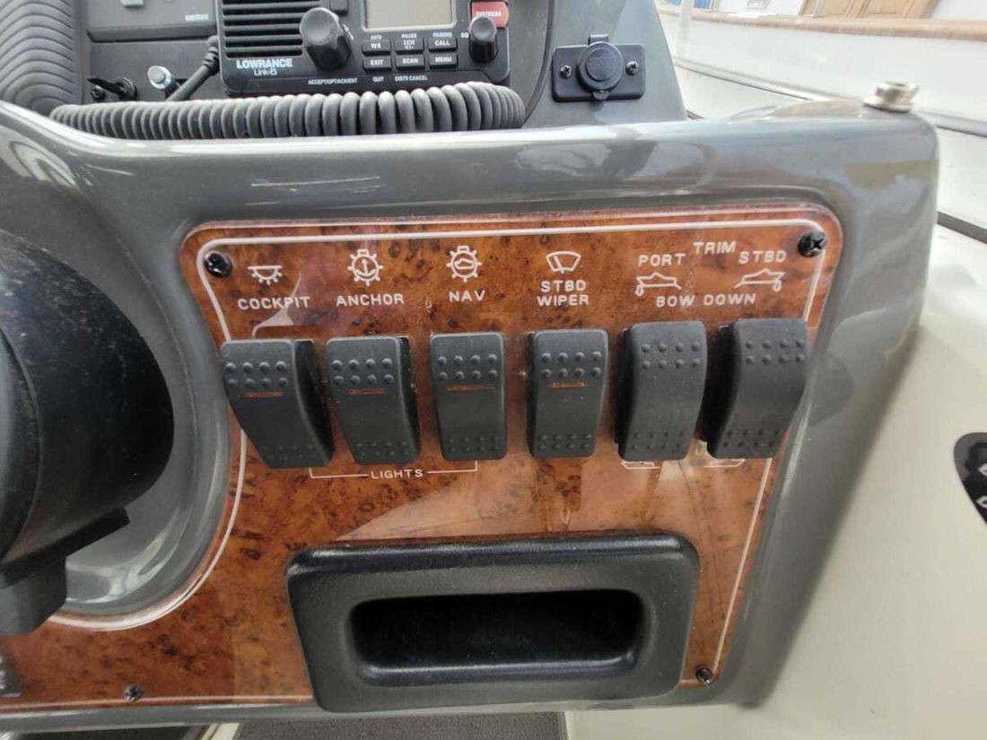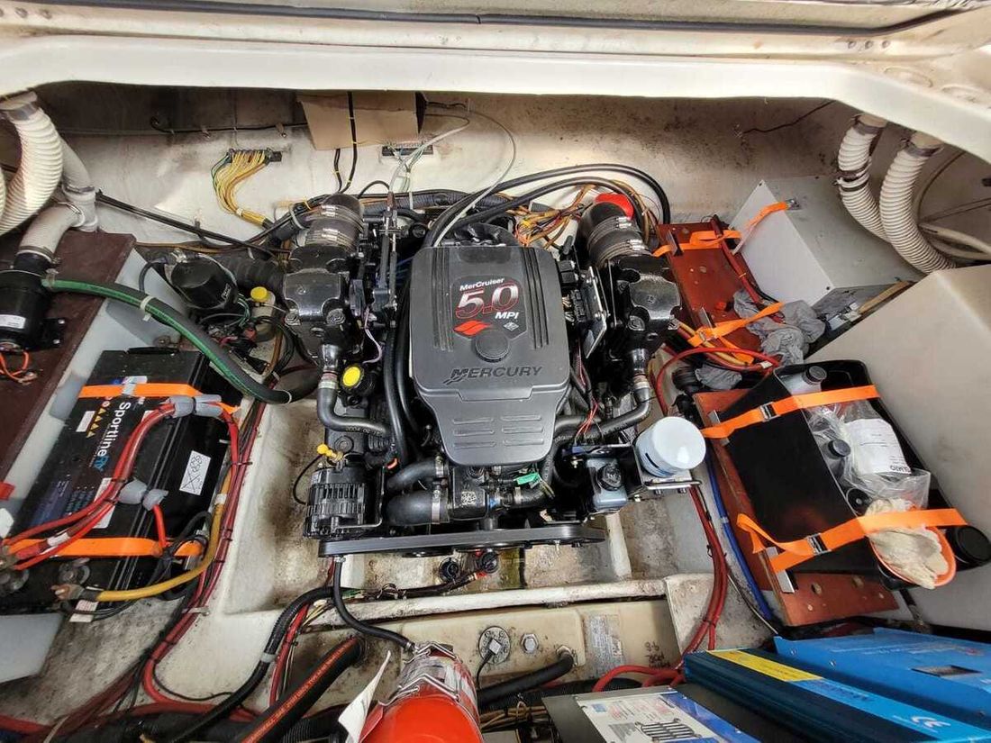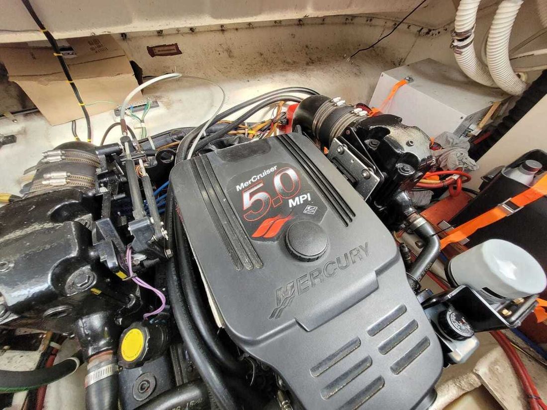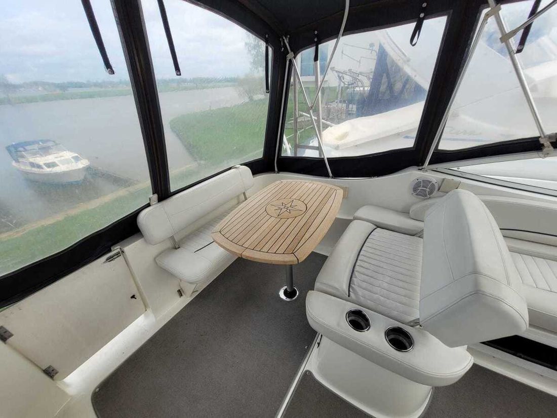 Motorisatie Aantal identieke motoren 1 Start type elektrisch Hoofdmotor Type binnenboord Merk Mercruiser Model 5.0 MPI Serienummer OW062845 Vermogen 250 pk Urenteller Draaiuren 585 Brandstof benzine Aandrijving Overbrenging hekdrive Voortstuwing schroef Opmerkingen Voortstuwing Duo prop Koeling indirect Tank Brandstoftank aantal Aantal 1 Totale inhoud brandstoftank(s) 320 liter Materiaal brandstoftank Polyethyleen Prestaties Max snelheid 60 km/h Meetinstrumenten motor Brandstoftankmeter Toerenteller Oliedrukmeter Temperatuurmeter Boeg- en hekschroef Boegschroef elektrisch Elektriciteit Accu Aantal 1 xAh per accu 165 Acculader Opmerkingen Acculader en sterling 90A Capaciteit 30 Dynamo Generator Capaciteit 2 Merk generator Honda 20i Omvormer Opmerkingen Omvormer 12V naar 220V Capaciteit 2500 Voltmeter Walstroom Walstroomkabel 12V Bedieningspaneel Ja -