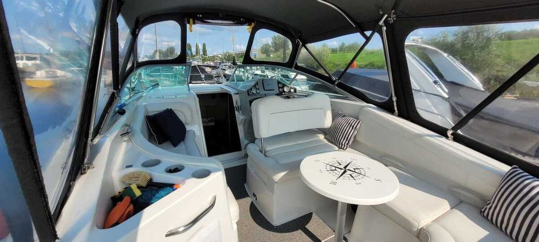 Nieuw geleverd Ontwerper Bayliner Werf Bayliner Yachts, USA CE C CE max motor 224 kW CE aantal opvarenden 8 Romp, dek en opbouw Rompvorm knikspant Rompkleur wit Dek en opbouw kleur wit Dek en opbouw materiaal polyester Ramen acrylaat Besturing en driftbeperking Besturing stuurwiel Plek besturing buiten -
