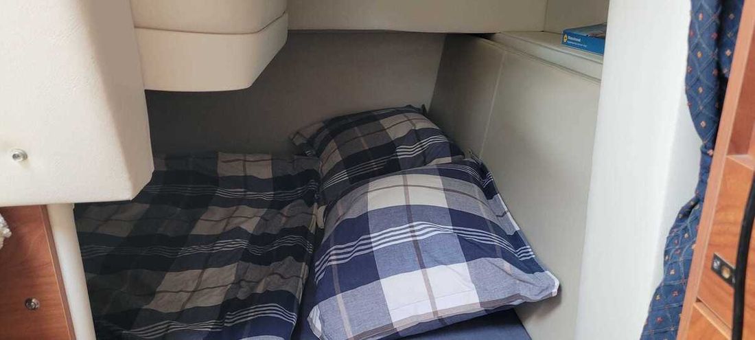Ruimtes Eethoek Salon Aankleding Type interieur Modern, licht Kleur stoffering wit Matrassen Kussens Gordijnen Water Watertank & materiaal Inhoud 75 liter Inhoud 75 liter Vuilwatertank & materiaal Warm water buitendouche Sanitair Aantal douches 2 Toiletten 1 Entertainment Radio/CD-speler Keuken Kooktoestel & brandstof Aantal 1 Kookbrandstof elektrisch Magnetron Koelkast & voeding Vriezer -