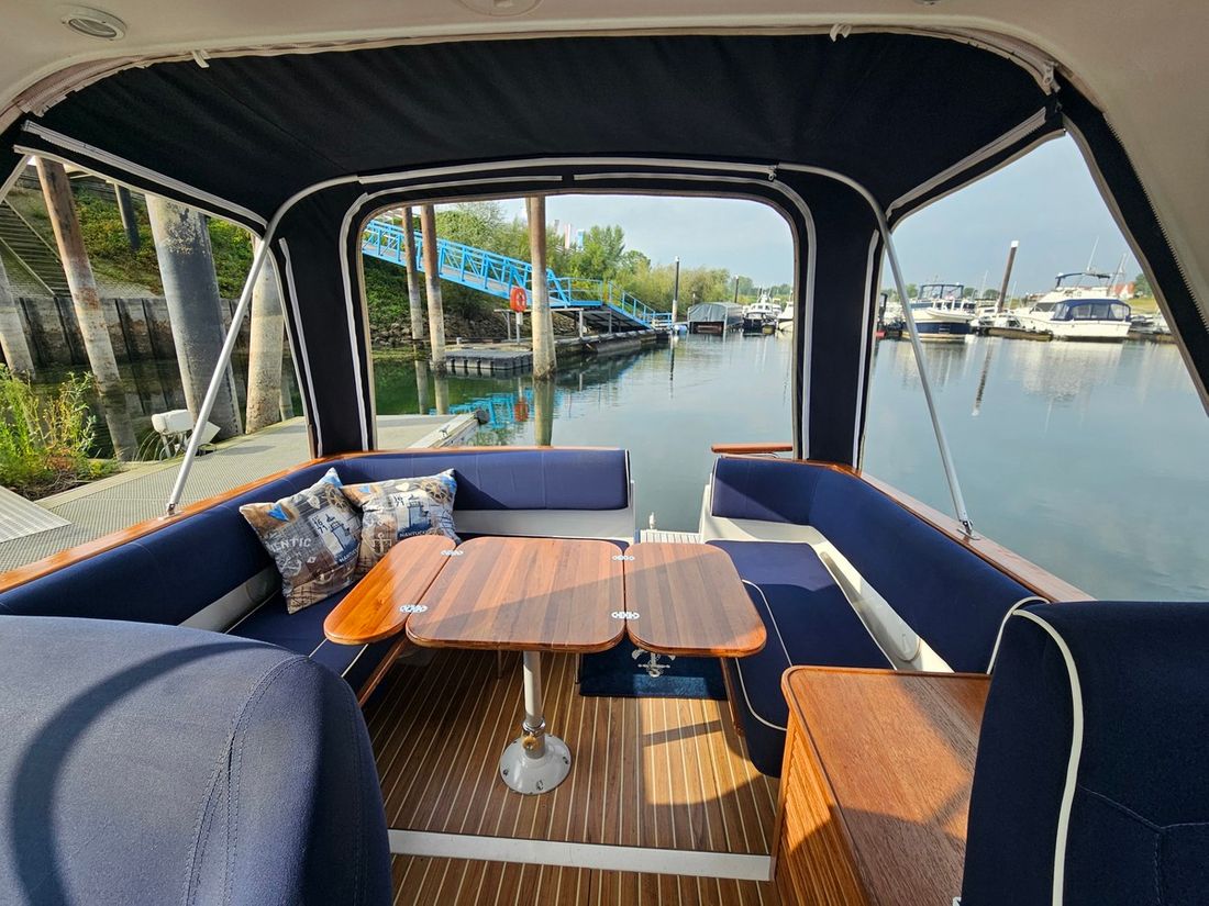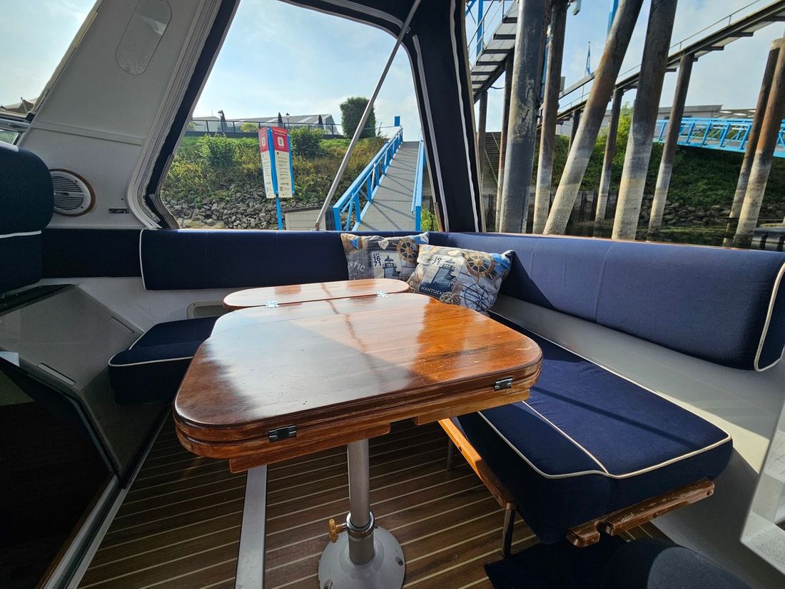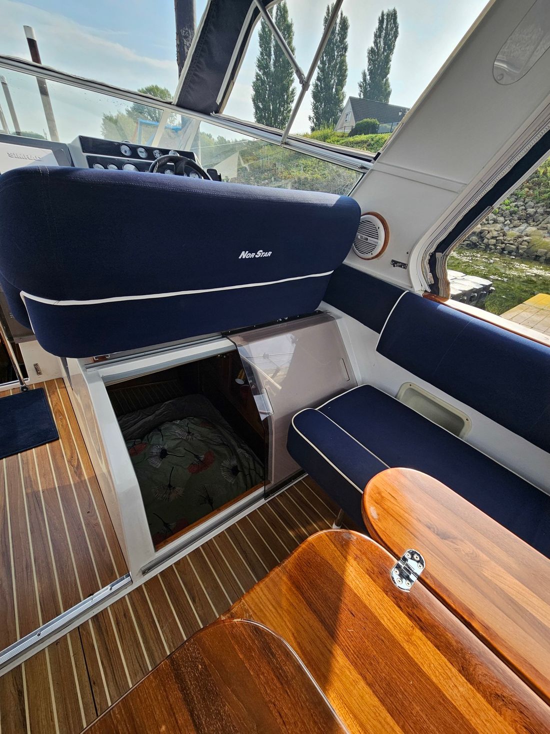 De ruime kuip is ideaal voor ontspannen tochten met familie en vrienden. Tevens kunnen de banken omgebouwd worden naar een zonnedek. Binnenin vind je een gezellige rondzit die omgebouwd kan worden naar slaapplaatsen voor twee personen, een kajuit met slaapplaatsen voor twee personen, een goed uitgeruste kombuis en een nette natte cel met toilet en douche.