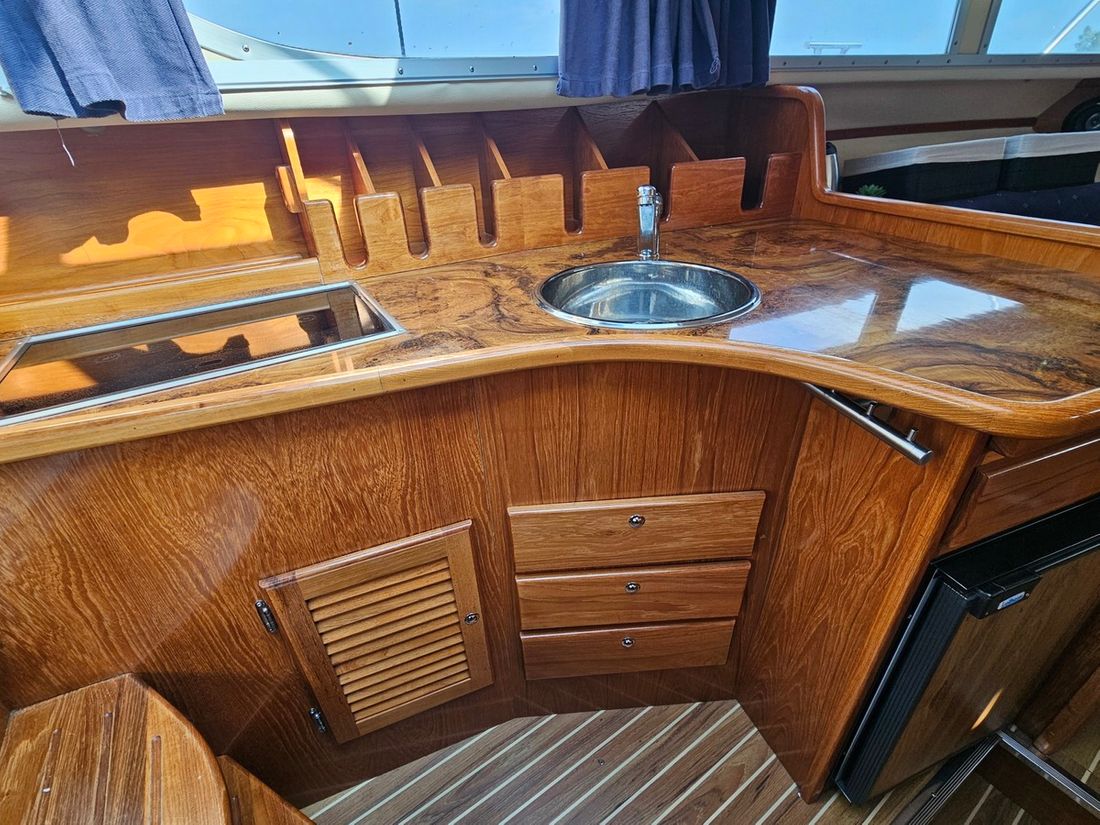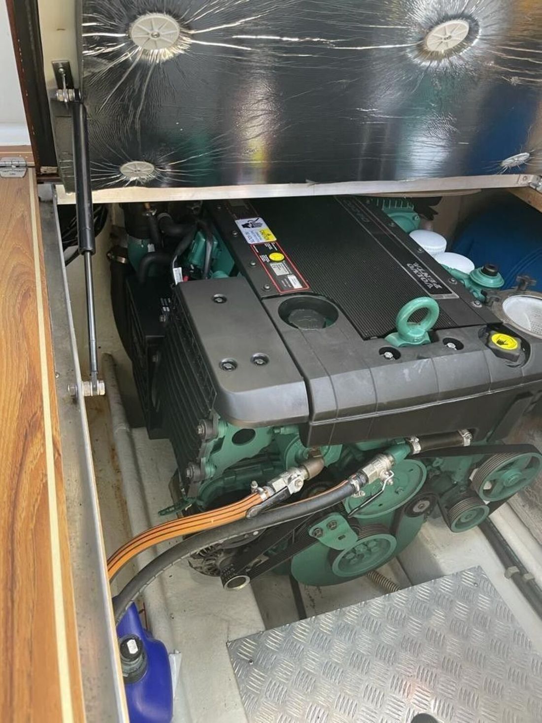 Motorisatie Aantal identieke motoren 1 Start type elektrisch Hoofdmotor Type binnenboord Merk Volvo Penta Model D4-260-B AQ/PS Serienummer 2004006992 Bouwjaar 2006 Aantal cilinders 4 Vermogen 260 pk Urenteller Draaiuren 730 Brandstof diesel Merk keerkoppeling Z-Drive Aandrijving Koeling indirect Tank Brandstoftank aantal Aantal 1 Totale inhoud brandstoftank(s) 400 liter Prestaties Max snelheid 33 knopen Kruissnelheid 8 knopen Meetinstrumenten motor Brandstoftankmeter Toerenteller Oliedrukmeter Temperatuurmeter Boeg- en hekschroef Opmerkingen Boegschroef ja Elektriciteit Accu Opmerkingen Accu 2x start 115A; 3x service 110 A Aantal 5 Acculader Capaciteit 120 Voltmeter Walstroom Walstroomkabel Zonnepaneel Capaciteit 100 12V 220V -