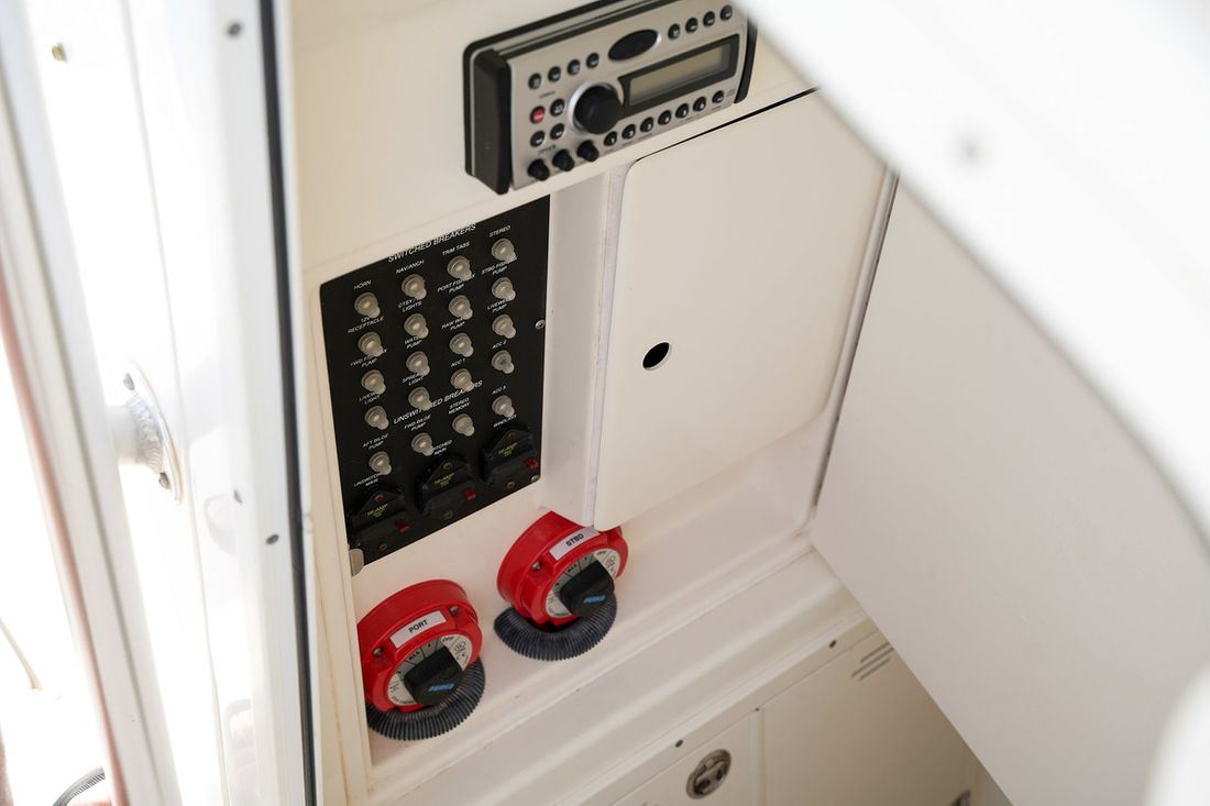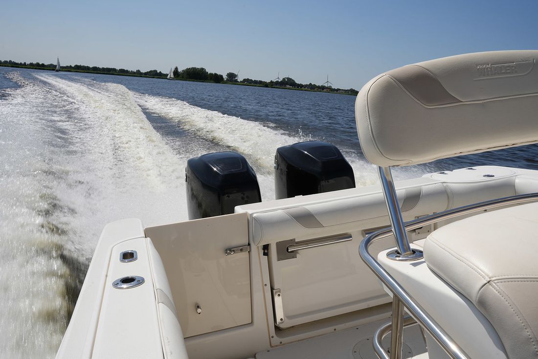 Motorisatie Aantal identieke motoren 2 Start type elektrisch Hoofdmotor Type buitenboord Merk Mercury Model Optimax Bouwjaar 2006 Aantal cilinders 6 Vermogen 225 pk Urenteller Draaiuren 265 Opmerkingen Draaiuren Circa 265 Brandstof benzine Aandrijving Voortstuwing schroef Tank Brandstoftank aantal Aantal 1 Totale inhoud brandstoftank(s) 757 liter Materiaal brandstoftank aluminium Meetinstrumenten motor Brandstoftankmeter Merk brandstoftankmeter SmartCraft instrumenten Toerenteller Merk toerenteller SmartCraft instrumenten Oliedrukmeter Merk oliedrukmeter SmartCraft instrumenten Temperatuurmeter Merk temperatuurmeter SmartCraft instrumenten Elektriciteit Accu Aantal 3 Dynamo Voltmeter 12V -
