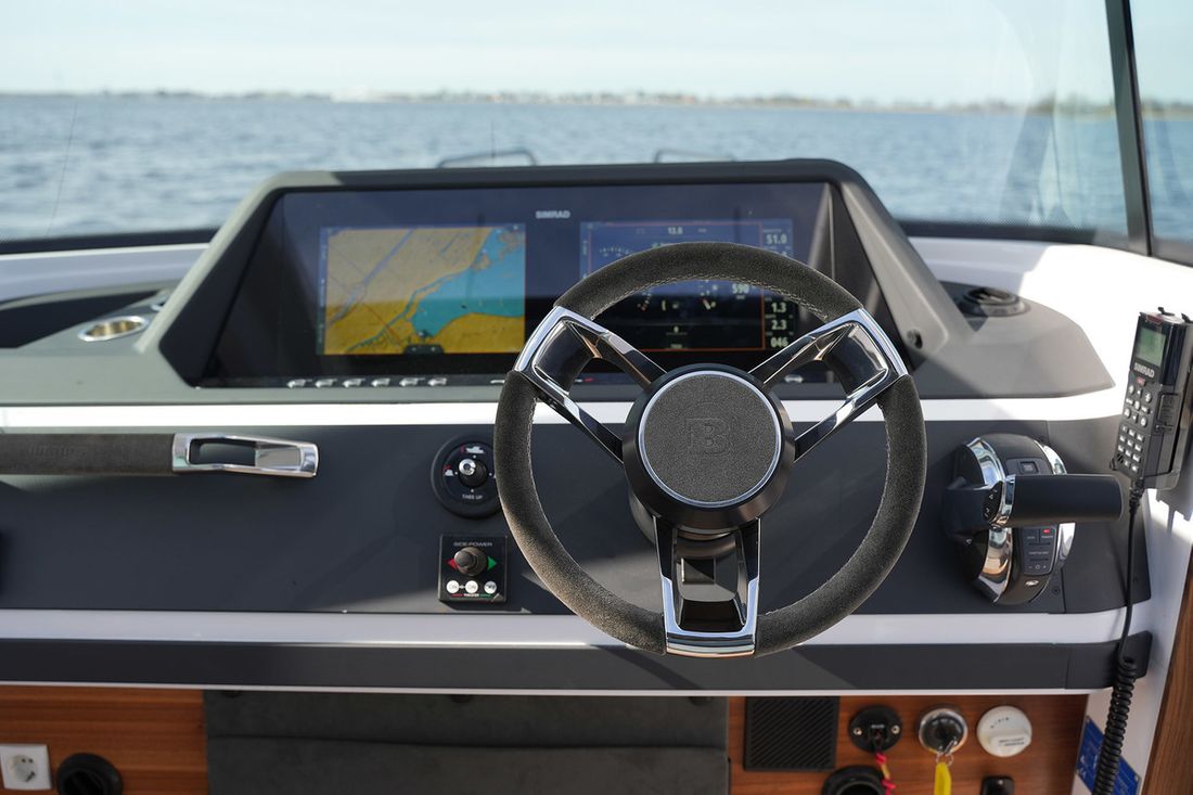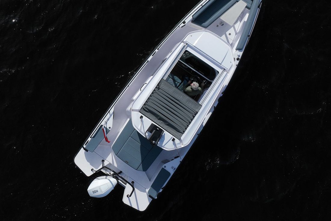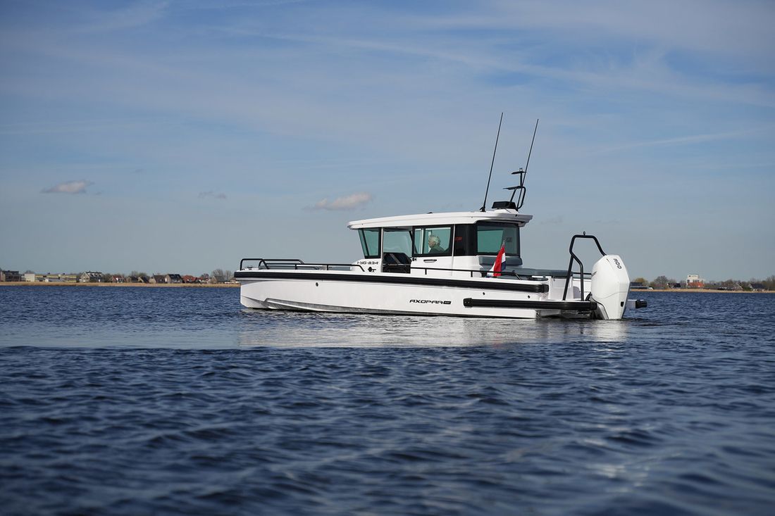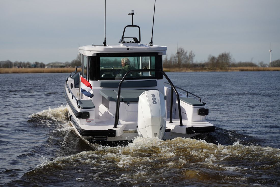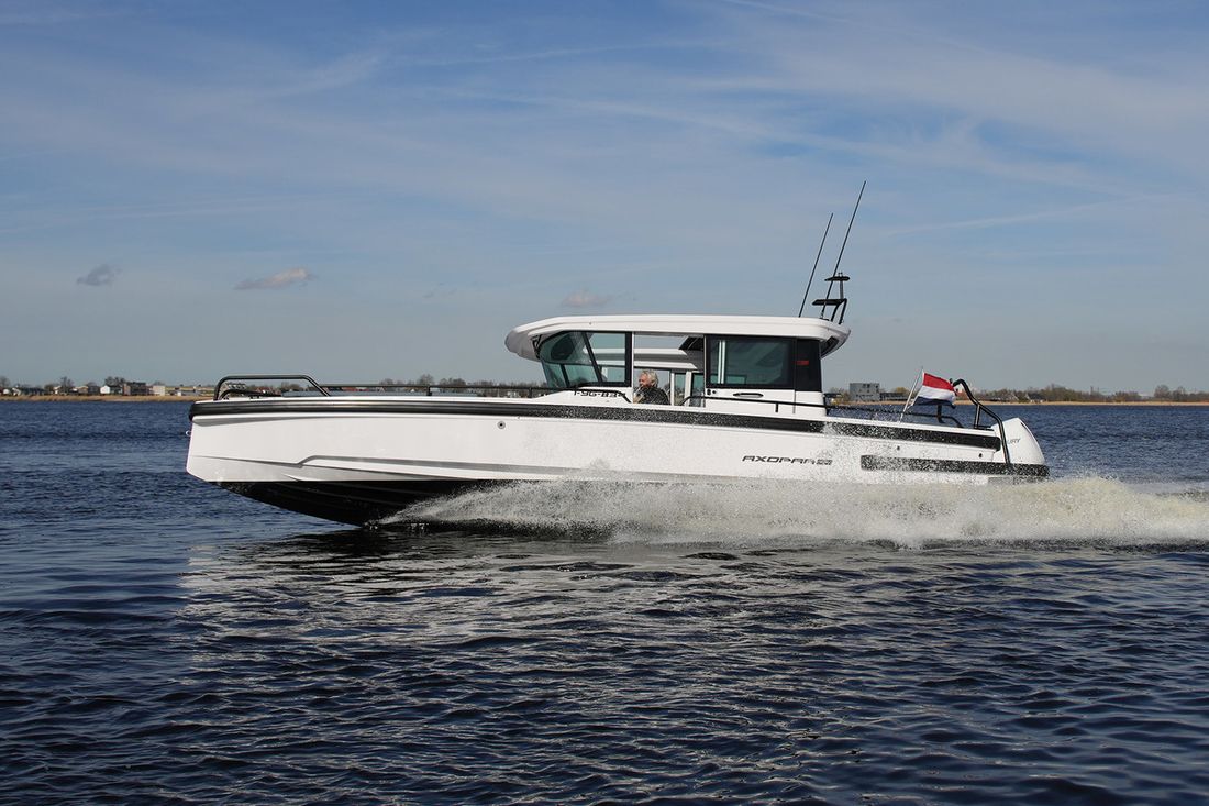 Axopar 28 Cabin met slechts ca. 150 vaaruren is direct leverbaar. De Axopar 28 Cabin is uitgerust met de Petrol (donker grijs) bekleding en heeft de volgende opties: