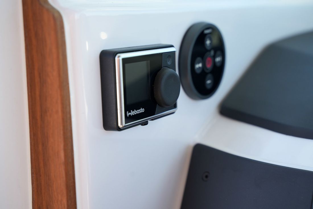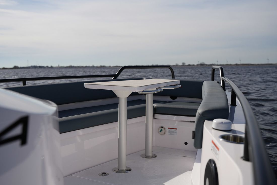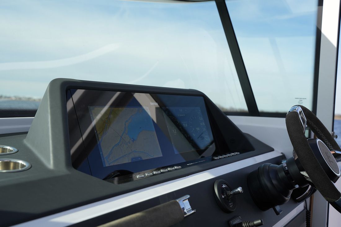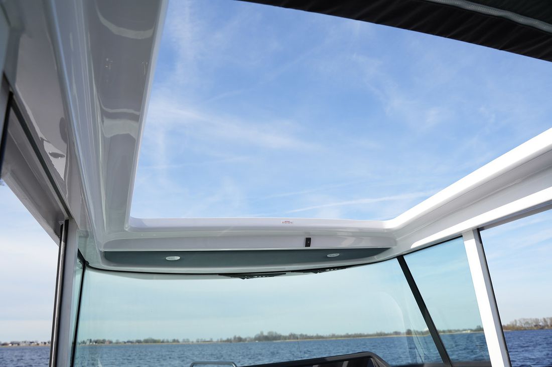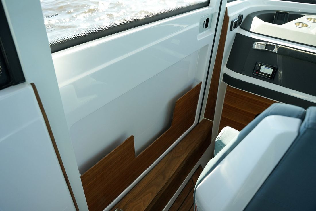 Axopar 28 Cabin met slechts ca. 150 vaaruren is direct leverbaar. De Axopar 28 Cabin is uitgerust met de Petrol (donker grijs) bekleding en heeft de volgende opties: