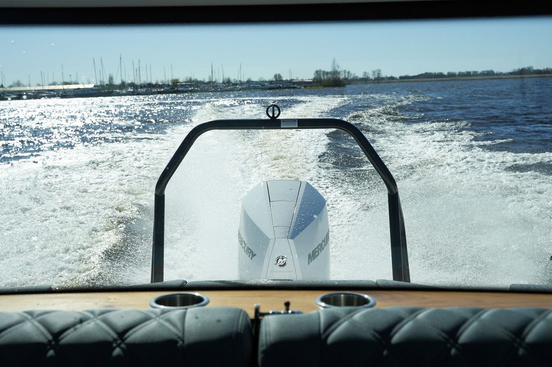 Motorisatie Aantal identieke motoren 1 Start type elektrisch Hoofdmotor Type buitenboord Merk Mercury Model 300XL Bouwjaar 2022 Aantal cilinders 8 Vermogen 300 pk Urenteller Draaiuren 150 Opmerkingen Draaiuren Circa 150 vaaruren Brandstof benzine Aandrijving Voortstuwing schroef Koeling direct Tank Brandstoftank aantal Aantal 1 Totale inhoud brandstoftank(s) 280 liter Meetinstrumenten motor Brandstoftankmeter Toerenteller Oliedrukmeter Temperatuurmeter Boeg- en hekschroef Boegschroef elektrisch Elektriciteit Accu Aantal 3 Acculader Capaciteit 80 Dynamo Omvormer Opmerkingen Omvormer WP Combi Supreme 12V / 2000W 80A Capaciteit 2000 Voltmeter Walstroom Walstroomkabel 12V 220V -