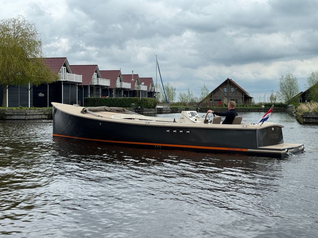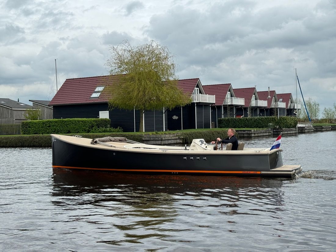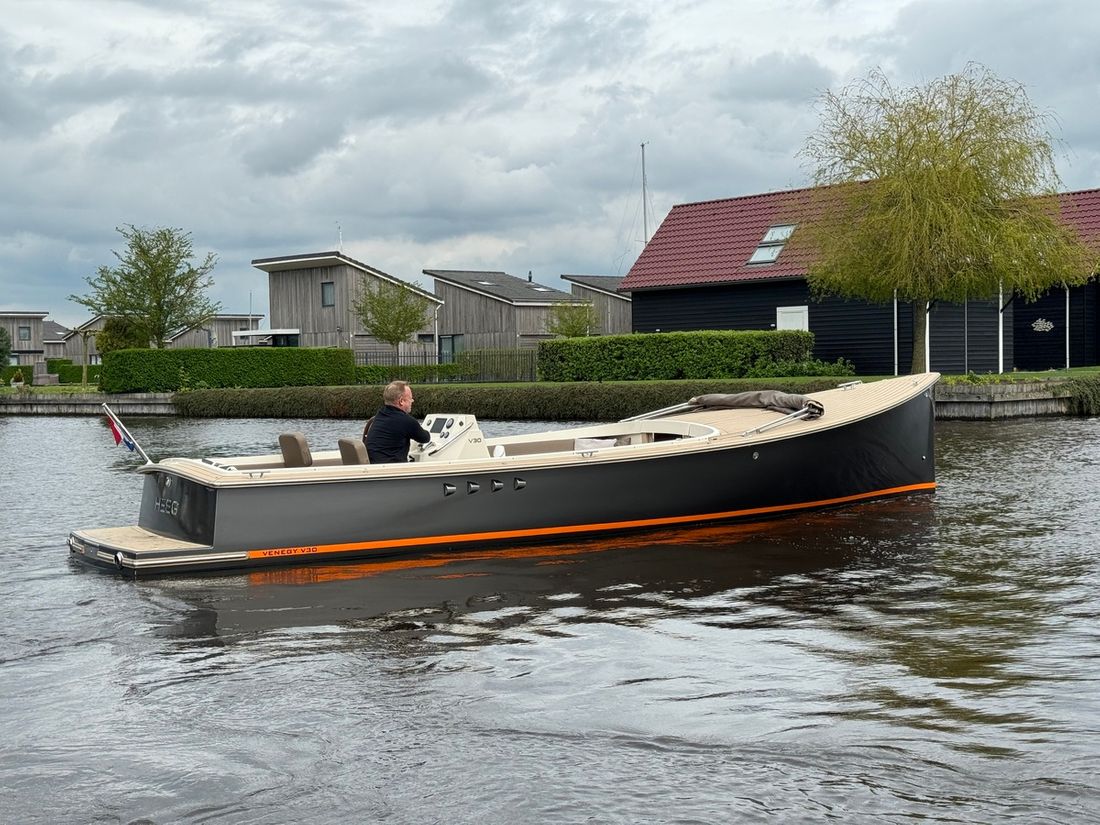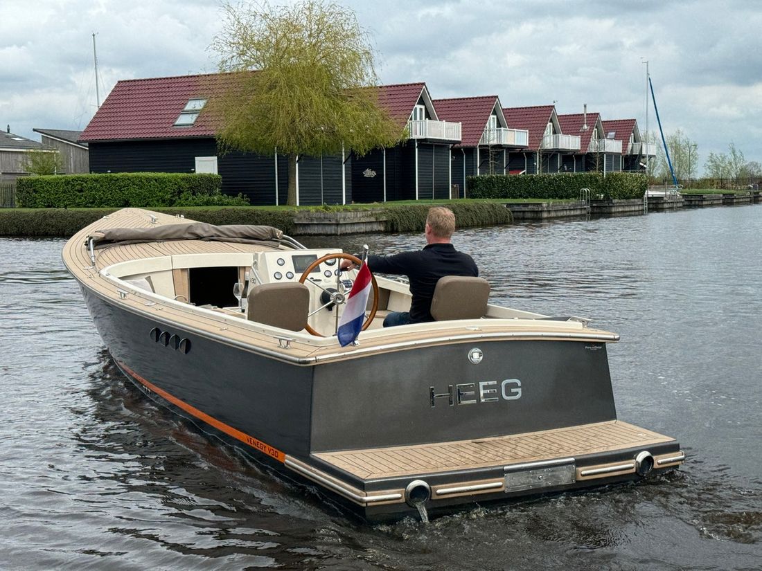 Deze prachtige Venegy V30 Classic Cabin, type Barkas, uit 2022 bevindt zich in nieuwstaat en is zeer compleet uitgerust. Deze tender wordt voortgestuwd door een 190 pk sterke Vetus 5 cilinder waarmee een snelheid wordt behaald van maximaal 20 knopen. Dankzij de slipkoppeling is ook rustig varen geen probleem.
