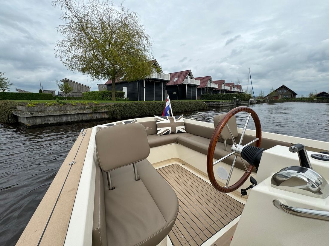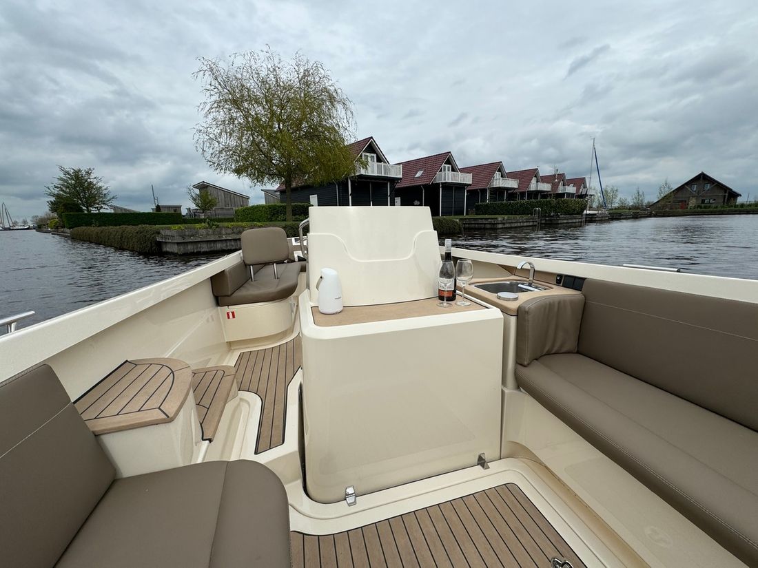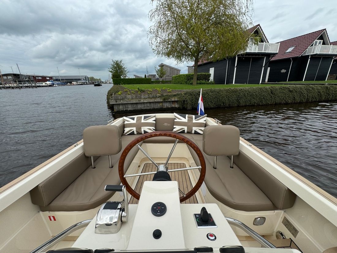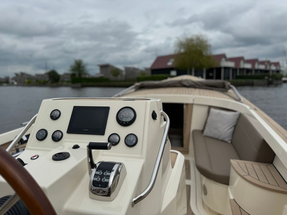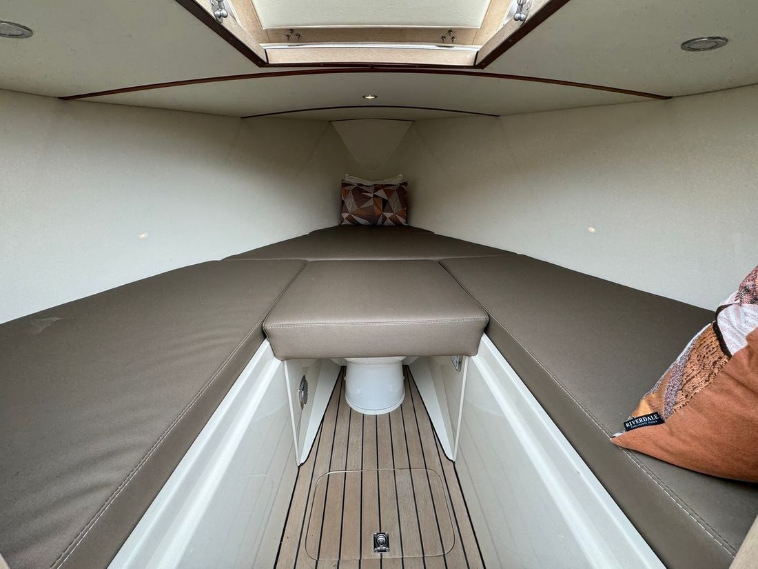 Met de slimme indeling bestaande uit twee verschillende rondzitten biedt deze tender plaats aan 8 personen. Voorin bevindt zich een kajuit met een royaal bed evenals een elektrisch toilet. Verder is de boot uitgerust met een spoelbak met warm en koud water, elektrische koellade, kaartplotter, Fusion geluidsinstallatie, proportionele boegschroef, kuiptent, omvormer etc.