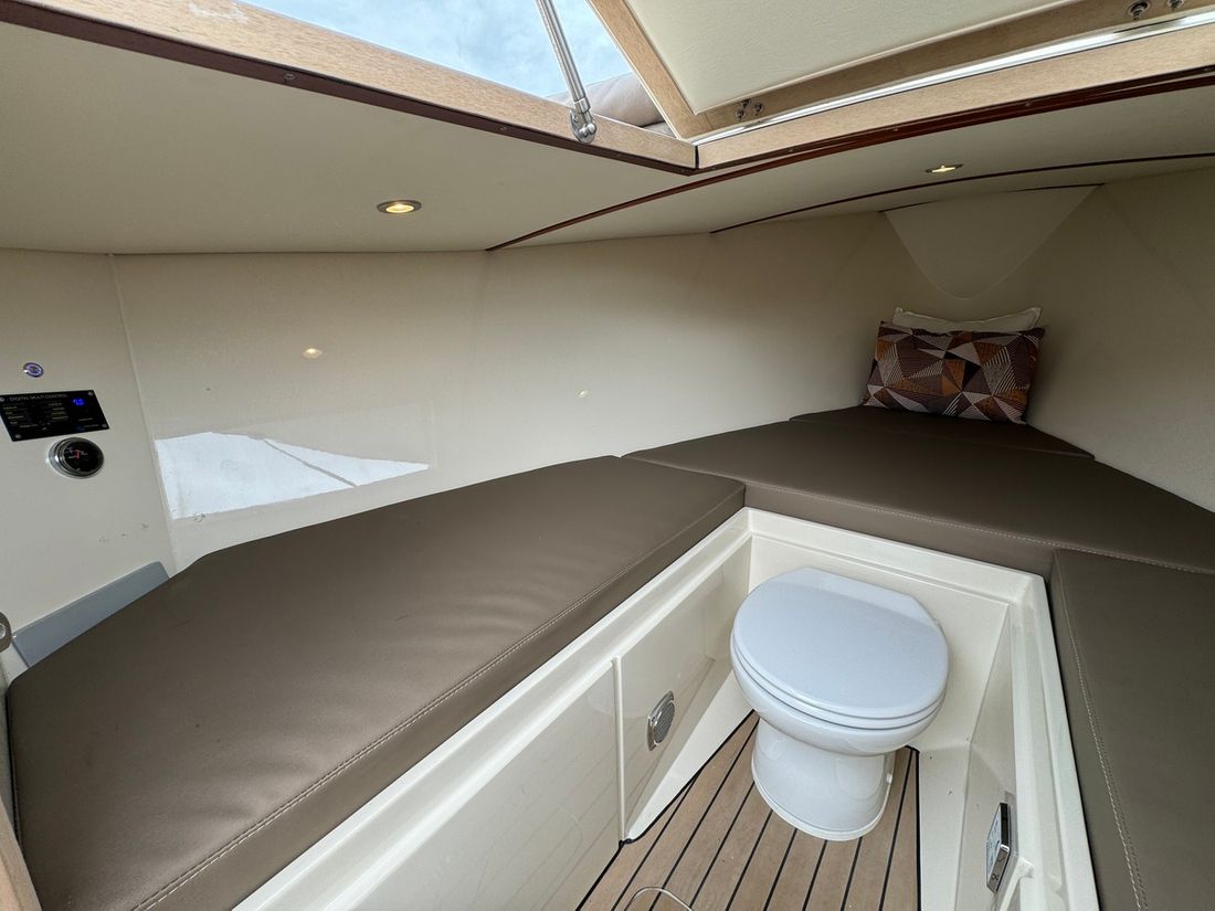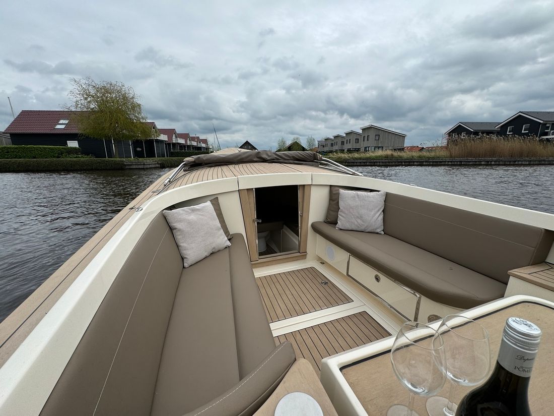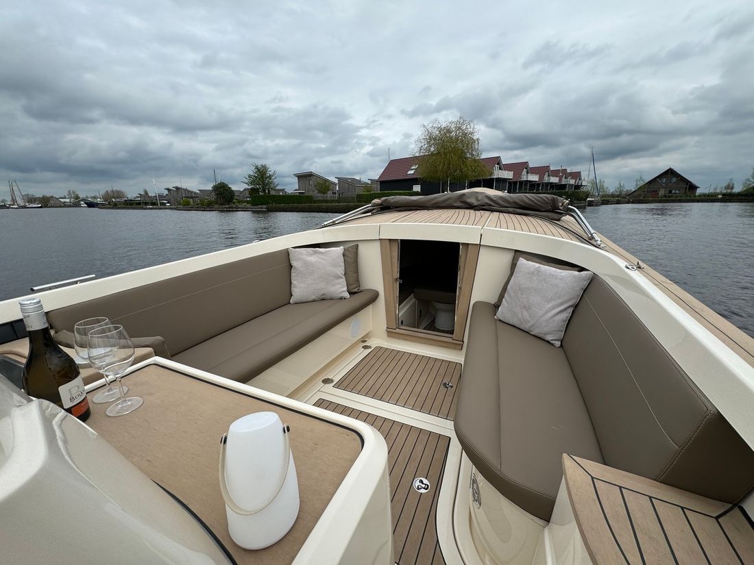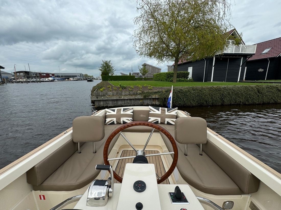 Met de slimme indeling bestaande uit twee verschillende rondzitten biedt deze tender plaats aan 8 personen. Voorin bevindt zich een kajuit met een royaal bed evenals een elektrisch toilet. Verder is de boot uitgerust met een spoelbak met warm en koud water, elektrische koellade, kaartplotter, Fusion geluidsinstallatie, proportionele boegschroef, kuiptent, omvormer etc.