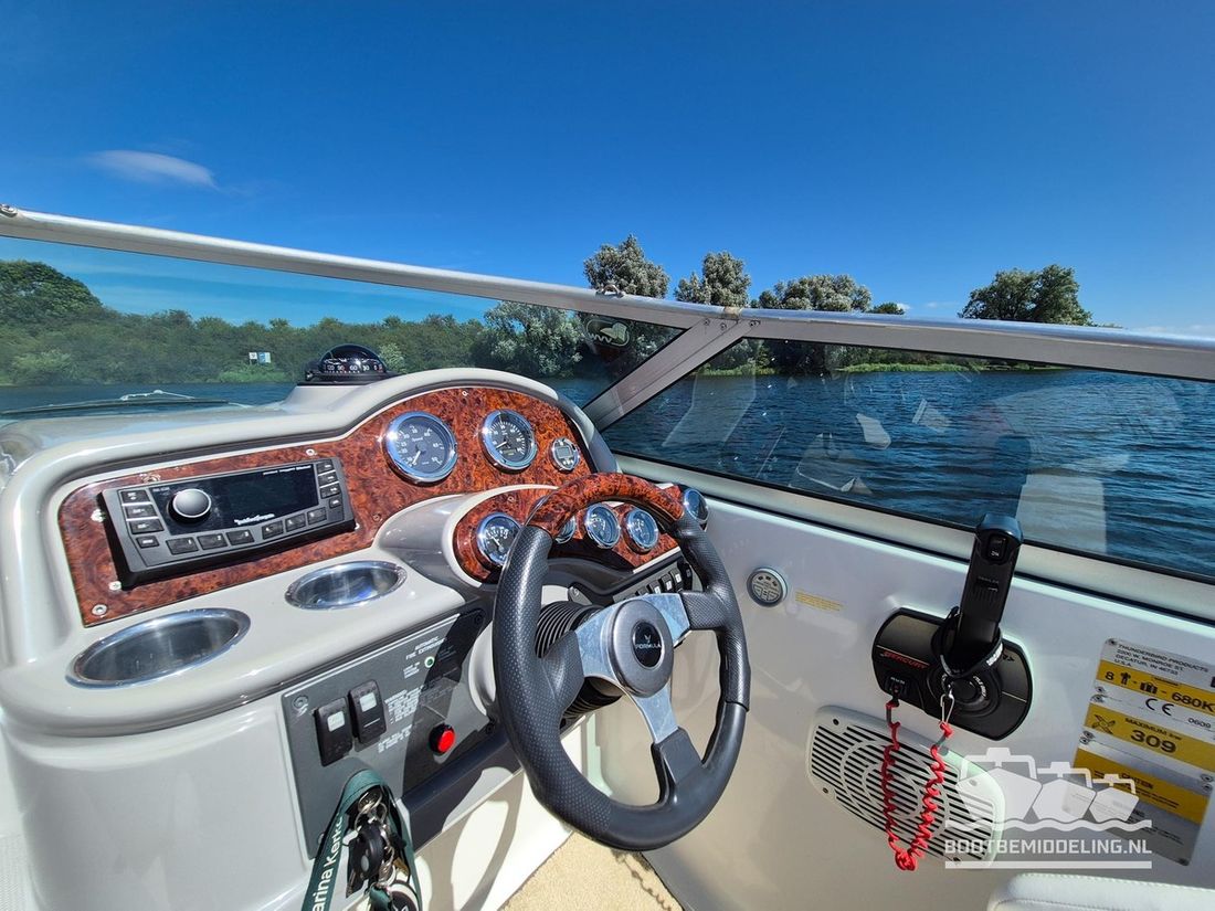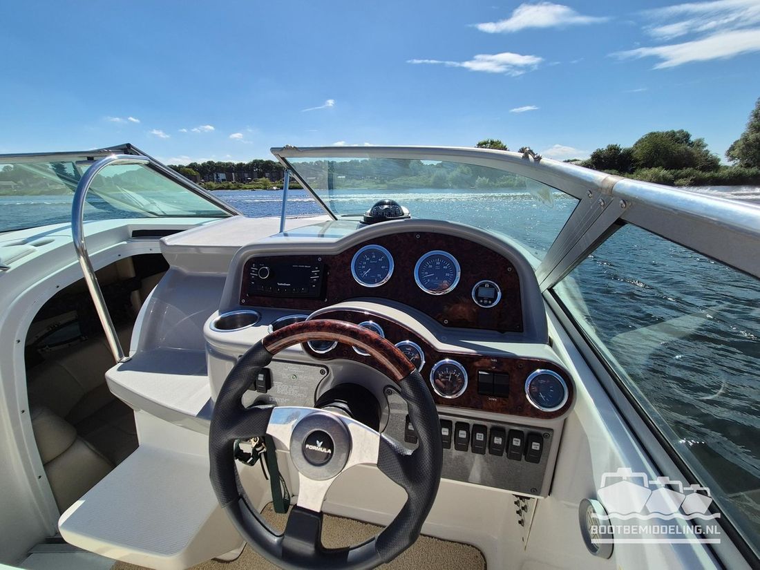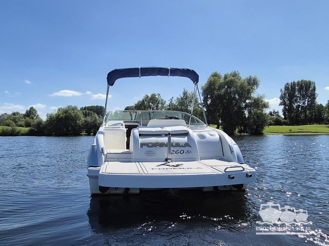 Een prachtig voorbeeld van vakmanschap! Al decennia staat Formula voor elegantie, kwaliteit en snelheid en bij elk model dat uit de fabriek komt lijken ze er weer in te slagen. Met een oorsprong in de racerij hebben ze de basis gelegd voor snelheid, maar door de jaren heen is dat verweven geraakt met comfort en verfijning. Deze 260 SunSport is daar een uitstekend voorbeeld van, want de elegante en snelle lijnen buitenom gaan hand in hand met een kwalitatief hoogwaardig en uitgebalanceerd interieur. De Mercruiser 6.2 MPI V8 is gekoppeld aan een Bravo III sterndrive en is wat ons betreft een ideale combinatie! Het grote zwemplateau is voorzien van Seadeck en in de cockpit vindt u zachte vloerbedekking die in 2025 is vernieuwd. Uw gasten zitten in een ruime rondzit, die omgebouwd kan worden tot één groot zonnebed of juist voorin direct naast de bestuurder of op de zonnebank. De cabine kan gebruikt worden als slaapgelegenheid of als zitje en beschikt tevens over een vast toilet. Aan boord vind u stromend water voor de wasbak en de buitendouche op het zwemplateau. Het dashboard is voorzien van nieuwe digitale klokken en van een Rockford Fosgate radio. Geen zin in radio, maar genieten van het geluid van de V8? Dan kunt u uw hart ophalen met het recent geïnstalleerde ?Captains Call? schakelbare uitlaatsysteem. Gaat uw hart sneller kloppen en bent u nieuwsgierig geworden naar deze uitstekend onderhouden 260SS, maar dan nu snel een afspraak voor een bezichtiging! Dubbel-assige boottrailer van het merk Freewheel beschikbaar tegen meerprijs.