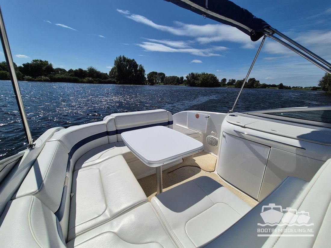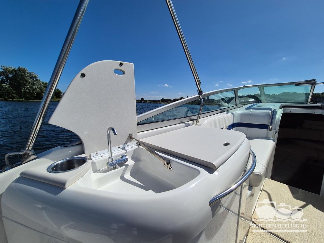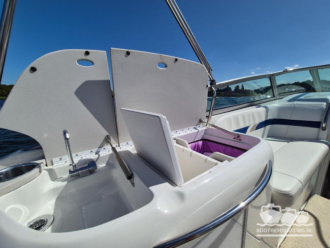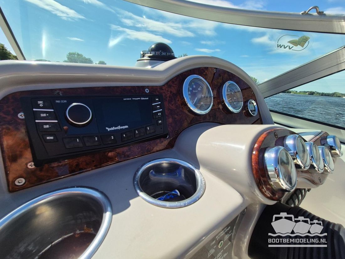 Een prachtig voorbeeld van vakmanschap! Al decennia staat Formula voor elegantie, kwaliteit en snelheid en bij elk model dat uit de fabriek komt lijken ze er weer in te slagen. Met een oorsprong in de racerij hebben ze de basis gelegd voor snelheid, maar door de jaren heen is dat verweven geraakt met comfort en verfijning. Deze 260 SunSport is daar een uitstekend voorbeeld van, want de elegante en snelle lijnen buitenom gaan hand in hand met een kwalitatief hoogwaardig en uitgebalanceerd interieur. De Mercruiser 6.2 MPI V8 is gekoppeld aan een Bravo III sterndrive en is wat ons betreft een ideale combinatie! Het grote zwemplateau is voorzien van Seadeck en in de cockpit vindt u zachte vloerbedekking die in 2025 is vernieuwd. Uw gasten zitten in een ruime rondzit, die omgebouwd kan worden tot één groot zonnebed of juist voorin direct naast de bestuurder of op de zonnebank. De cabine kan gebruikt worden als slaapgelegenheid of als zitje en beschikt tevens over een vast toilet. Aan boord vind u stromend water voor de wasbak en de buitendouche op het zwemplateau. Het dashboard is voorzien van nieuwe digitale klokken en van een Rockford Fosgate radio. Geen zin in radio, maar genieten van het geluid van de V8? Dan kunt u uw hart ophalen met het recent geïnstalleerde ?Captains Call? schakelbare uitlaatsysteem. Gaat uw hart sneller kloppen en bent u nieuwsgierig geworden naar deze uitstekend onderhouden 260SS, maar dan nu snel een afspraak voor een bezichtiging! Dubbel-assige boottrailer van het merk Freewheel beschikbaar tegen meerprijs.