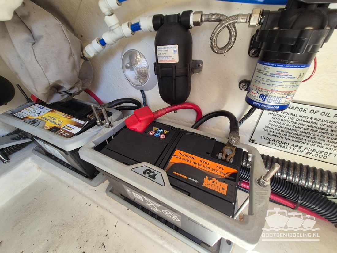 Motorisatie Aantal identieke motoren 1 Start type elektrisch Hoofdmotor Type binnenboord Merk Mercruiser Model 6.2 MPI Serienummer OM362980 Bouwjaar 2002 Aantal cilinders 8 Vermogen 320 pk Urenteller Draaiuren 512 Brandstof benzine Aandrijving Overbrenging hekdrive Voortstuwing schroef Koeling direct Tank Brandstoftank aantal Aantal 1 Totale inhoud brandstoftank(s) 284 liter Meetinstrumenten motor Brandstoftankmeter Toerenteller Oliedrukmeter Temperatuurmeter Elektriciteit Accu Aantal 2 Dynamo Voltmeter 12V -