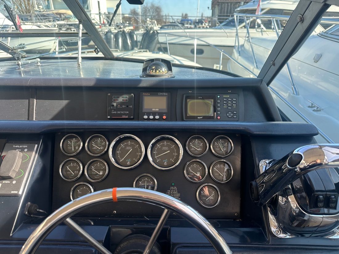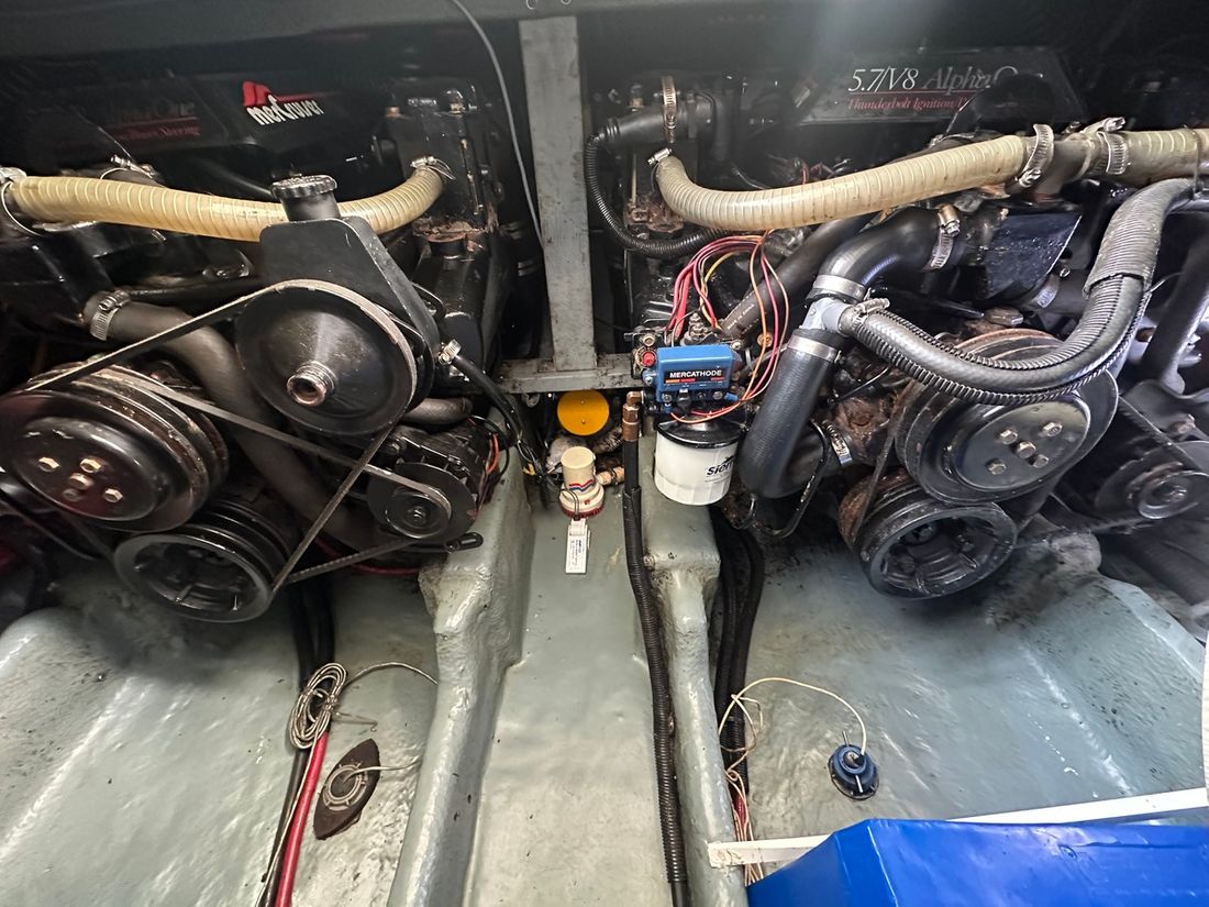 Motorisatie Aantal identieke motoren 2 Start type elektrisch Hoofdmotor Type binnenboord Merk Mercruiser Model 5,7L Aantal cilinders 8 Vermogen 265 pk Urenteller Opmerkingen Draaiuren +/- 600 Brandstof benzine Aandrijving Overbrenging hekdrive Voortstuwing schroef Tank Brandstoftank aantal Opmerkingen Brandstoftank aantal 2 x 300 liter Aantal 2 Totale inhoud brandstoftank(s) 600 pk Meetinstrumenten motor Brandstoftankmeter Opmerkingen Brandstoftankmeter Nieuwe gever in stuurboord tank 2023 Toerenteller Merk toerenteller 2x Oliedrukmeter Merk oliedrukmeter 2x Temperatuurmeter Merk temperatuurmeter 2x Boeg- en hekschroef Boegschroef elektrisch Opmerkingen Boegschroef Vetus ( 2022 ) met easy docking systeem ( 2023 ) Hekschroef elektrisch Opmerkingen Hekschroef Vetus met easy docking systeem ( 2023 ) -
