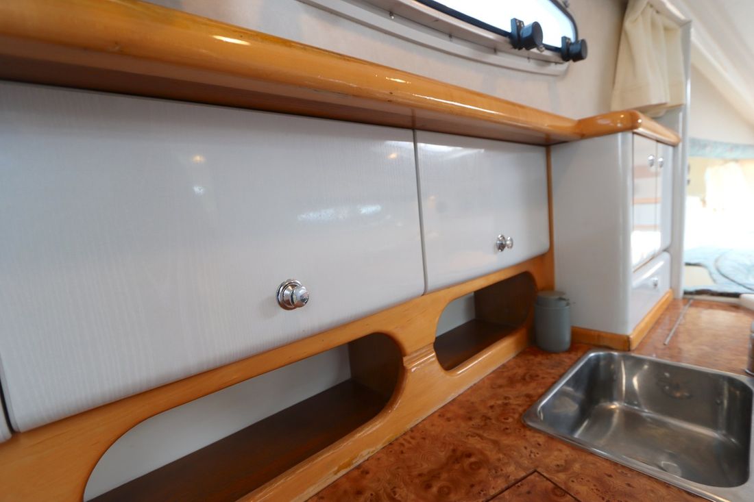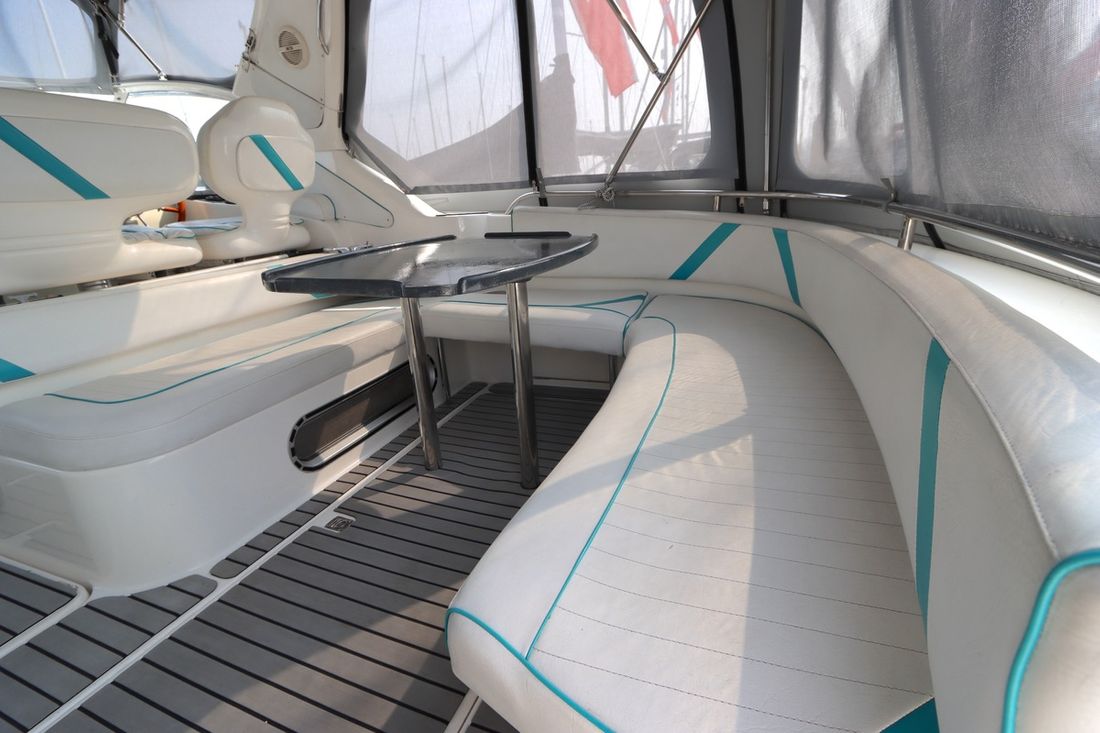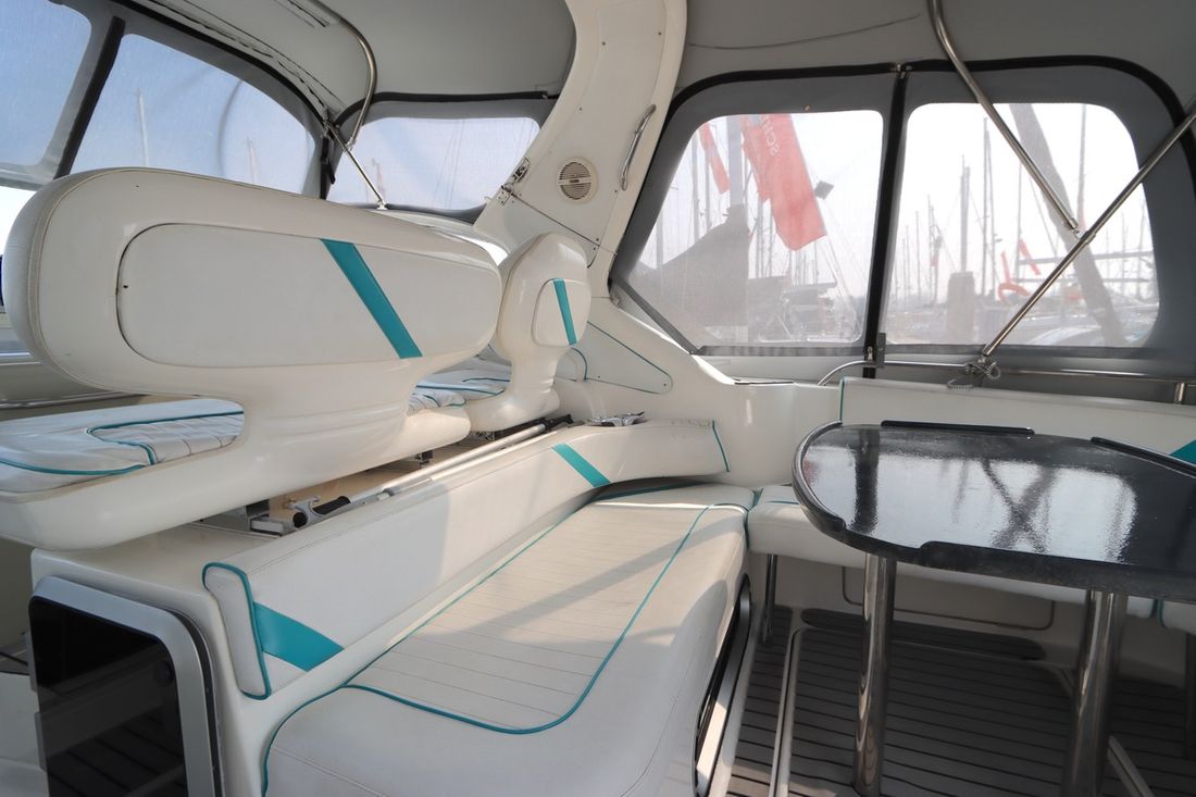 Goed onderhouden Sealine 310 Ambassador van de derde eigenaar. Het schip heeft een gezellige zithoek in de kuip en voelt direct comfortabel aan. Uitgerust met een compleet dubbel gevoerde buiskap en kuiptent (2022) over het gehele achterdek.