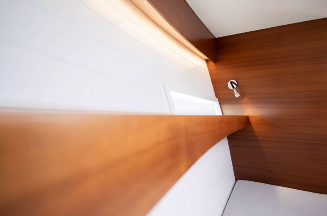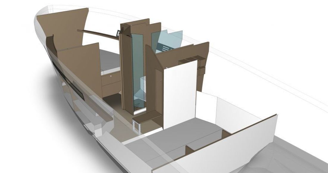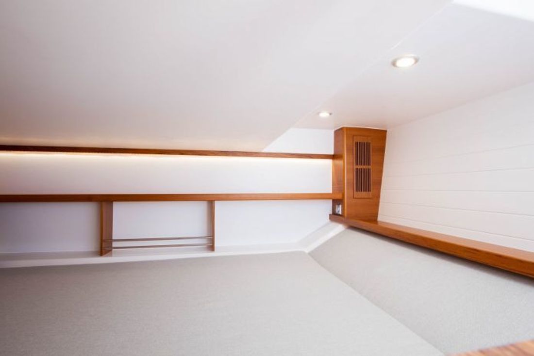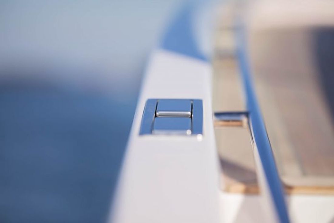 Nieuw geleverd CE C Romp, dek en opbouw Rompvorm stepped V Open Kuip (OK) Afmetingen en gewichten Waterverplaatsing 3800 kg Besturing en driftbeperking Besturing stuurwiel Plek besturing buiten Roer enkel Trimflaps Merk trimflaps Zipwake interceptors -
