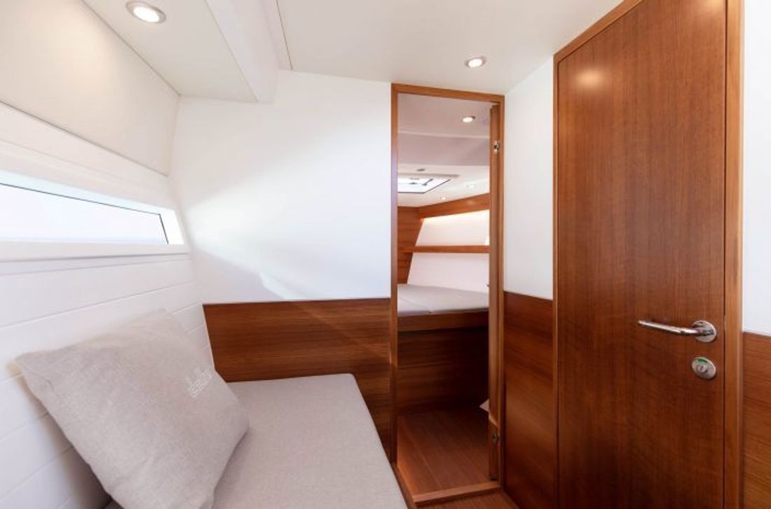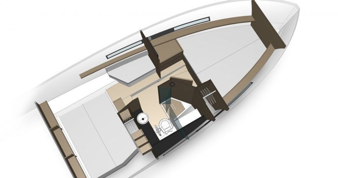 Delta 33 open is the follow-up to the successful launch of open day boats from Delta Powerboats. Like the original 26, the 33 is designed by Ted Mannerfelt as a sophisticated day cruiser which in its enlarged version is intended to deliver outstanding experiences in a variety of uses, water sports, recreational cruises and weekend overnights with family and friends. The safe and unusually space-efficient exterior arrangement includes a fully equipped galley and an adjustable aft deck lounge which easily transforms into a sun bed or a comfortable dinette. Further aft the fully open transom provides uninterrupted passage to the extended swim platform fitted with swim ladder and fresh water shower. Below deck the interior comprises two separate cabins with snug accommodation for four guests.