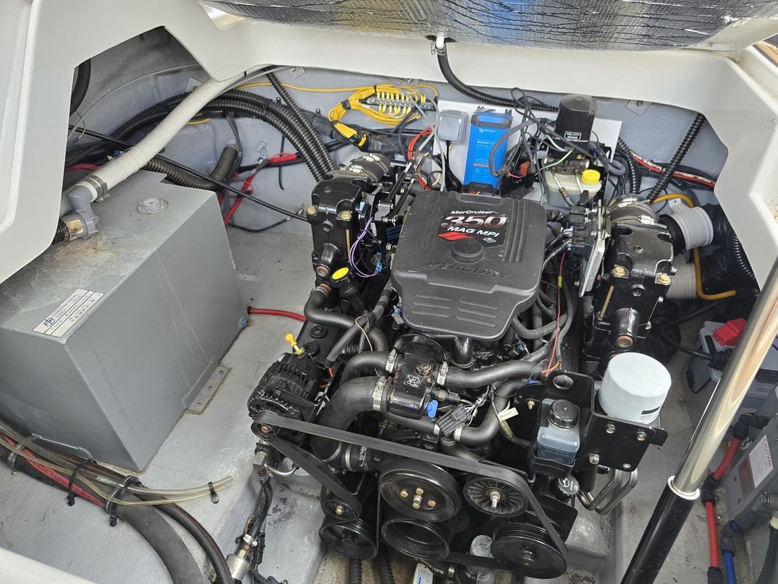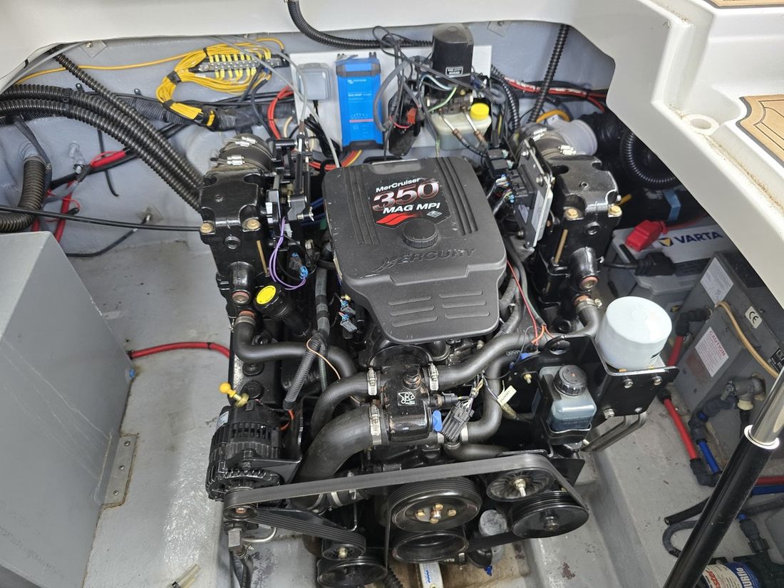 Motorisatie Aantal identieke motoren 1 Start type elektrisch Hoofdmotor Type binnenboord Merk Mercruiser Model 350 MAG MPI Serienummer OM682146 Aantal cilinders 8 Vermogen 260 pk Urenteller Draaiuren 574 Verbruik 12 liter/uur Opmerkingen Verbruik @12km/h Aandrijving Overbrenging hekdrive Voortstuwing schroef Opmerkingen Voortstuwing Bravo 3 Tank Brandstoftank aantal Prestaties Max snelheid 55 km/h Kruissnelheid 12 km/h Meetinstrumenten motor Brandstoftankmeter Opmerkingen Brandstoftankmeter tank is vol Toerenteller Opmerkingen Toerenteller ( Functioneert niet naar behoren ) Oliedrukmeter Temperatuurmeter Opmerkingen Temperatuurmeter ( Functioneert niet naar behoren ) Meetinstrumenten Trimmeter Boeg- en hekschroef Boegschroef elektrisch Elektriciteit Accu Opmerkingen Accu 1 x 190Ah verbruikersaccu ( 2024 ) / 1 x startaccu Aantal 2 Acculader Opmerkingen Acculader Victron bleu smart ( 2019 ) Voltmeter Walstroom Walstroomkabel 12V -