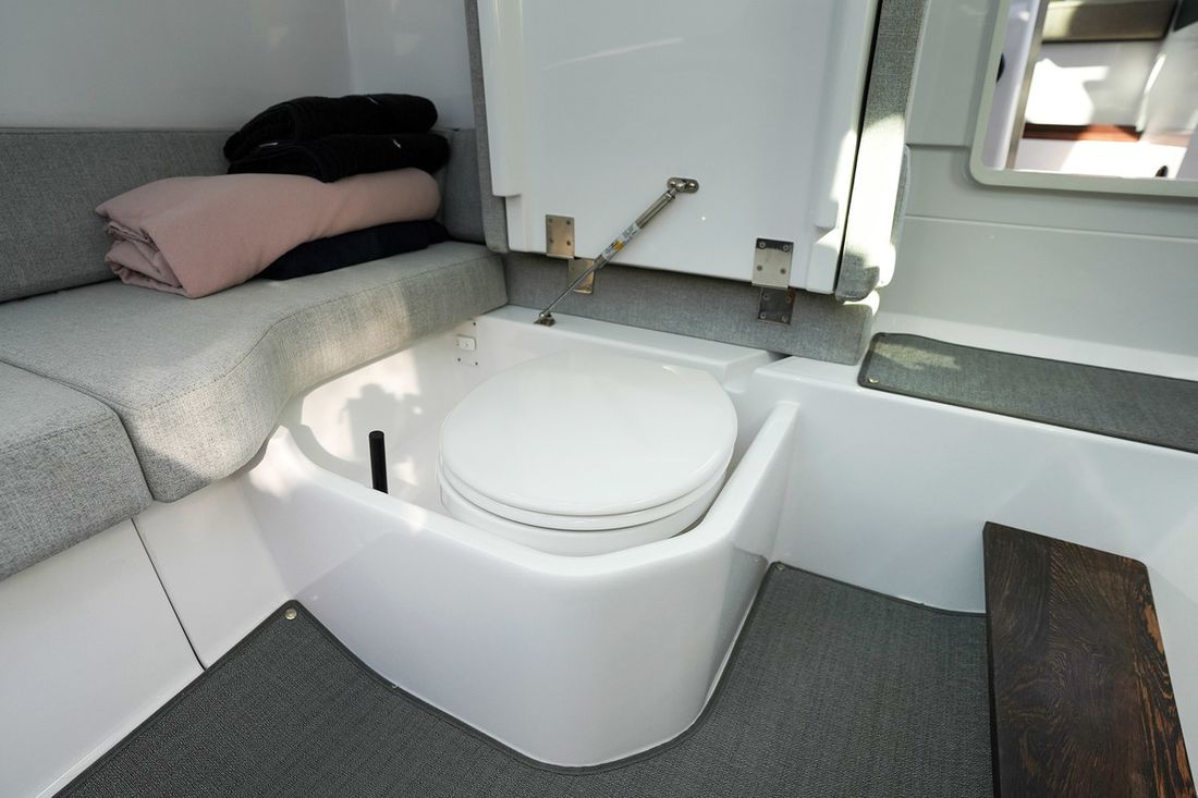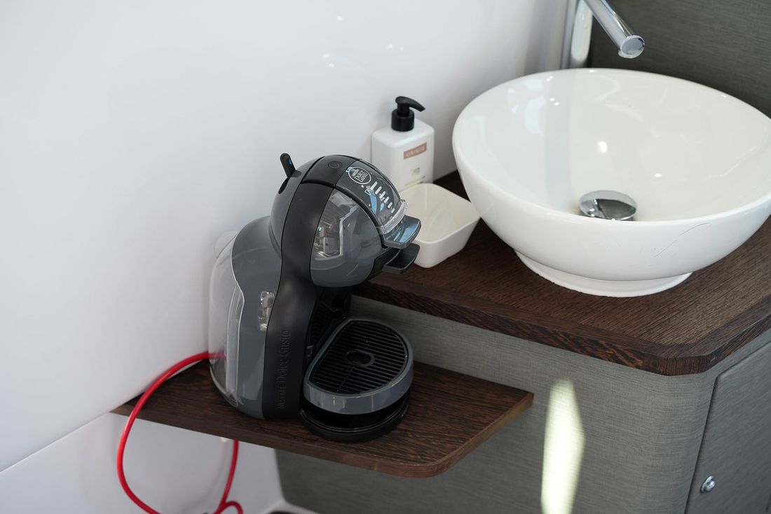 - Spoelbak en kraan in de voorcabine (koud & warm water)