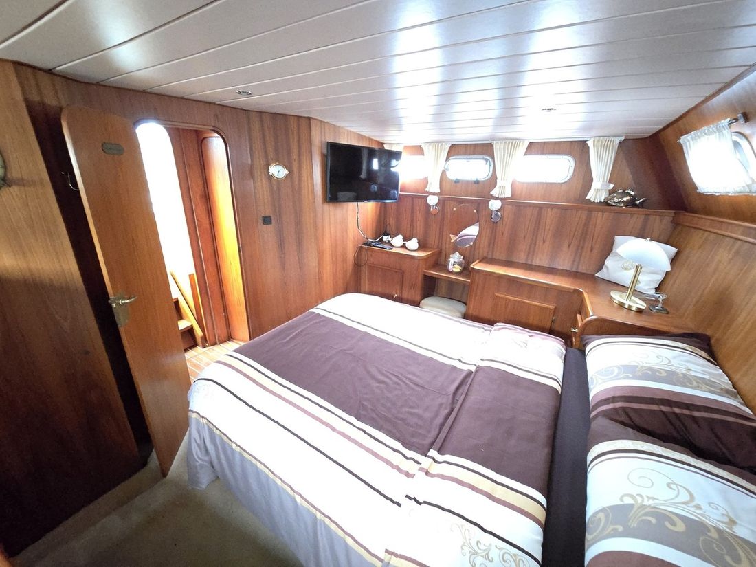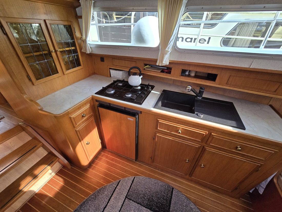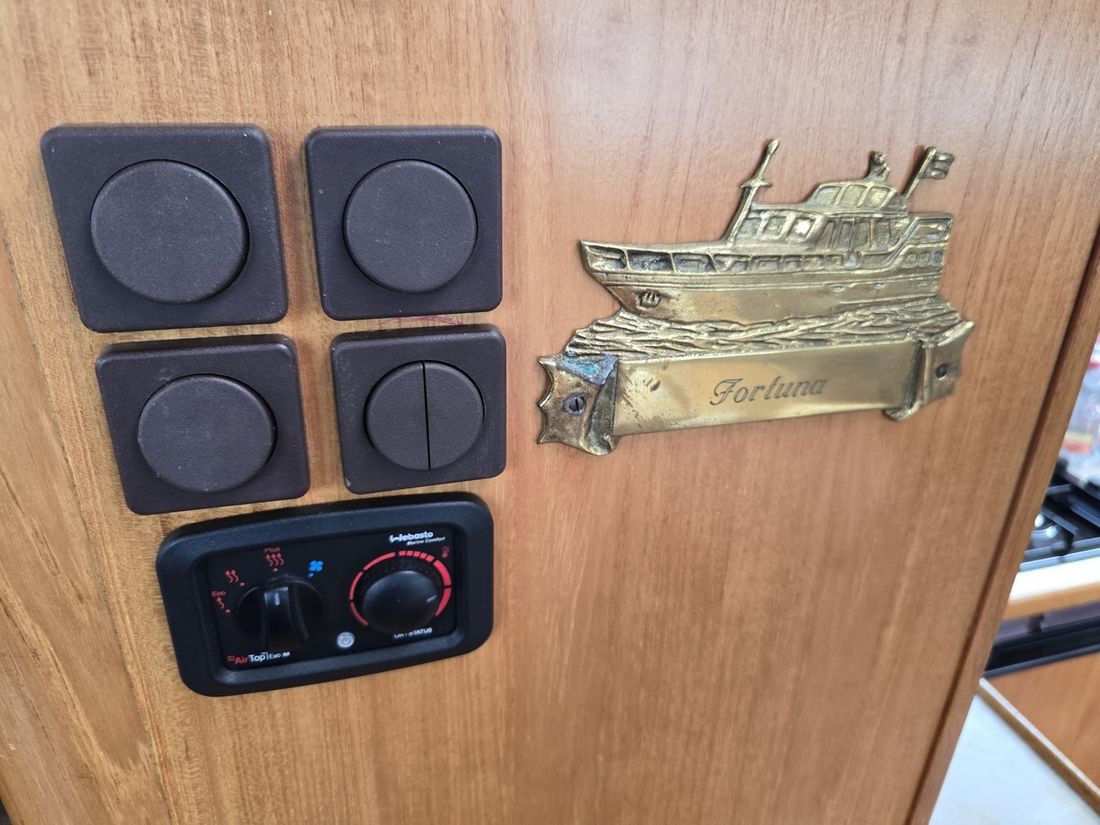 Ruimtes Salon Eethoek Machinekamer Hutten 1 Salon Indeling en verblijfsruimtes Open voorkajuit met rondzit / Pantry / Salon met hoekbank en stuurstand / separaat toilet en douche / achterkajuit met Frans bed Aankleding Type interieur Modern, houtlook Kleur stoffering wit Matrassen Kussens Gordijnen Water Watertank & materiaal Opmerkingen Watertank & materiaal 4x128 liter Inhoud 512 liter Materiaal watertank kunststof Inhoud 188 liter Vuilwatertank & materiaal Vuilwatertankmeter Vuilwatertank afvoerpomp Dekafzuiging vuilwater Watersysteem druksysteem Opmerkingen Watersysteem Elektische pomp Warm water Opmerkingen Warm water Boiler Sanitair Aantal douches 1 Opmerkingen Aantal douches separate ruimte Toiletten 1 Elektrisch Entertainment Radio/CD-speler Keuken Kooktoestel & brandstof Aantal 4 Kookbrandstof gas Koelkast & voeding Inhoud Koelkast 90 liter Vriezer Opmerkingen Vriezer vriesvak in koelkast Inhoud Vriezer 11 liter Klimaatregeling hete lucht Opmerkingen Verwarming Webasto Air Top Evo 55 diesel 5,5Kw -