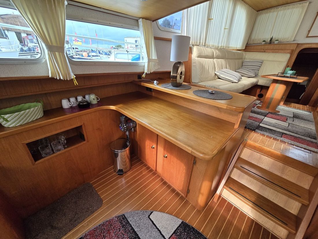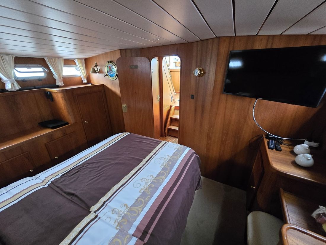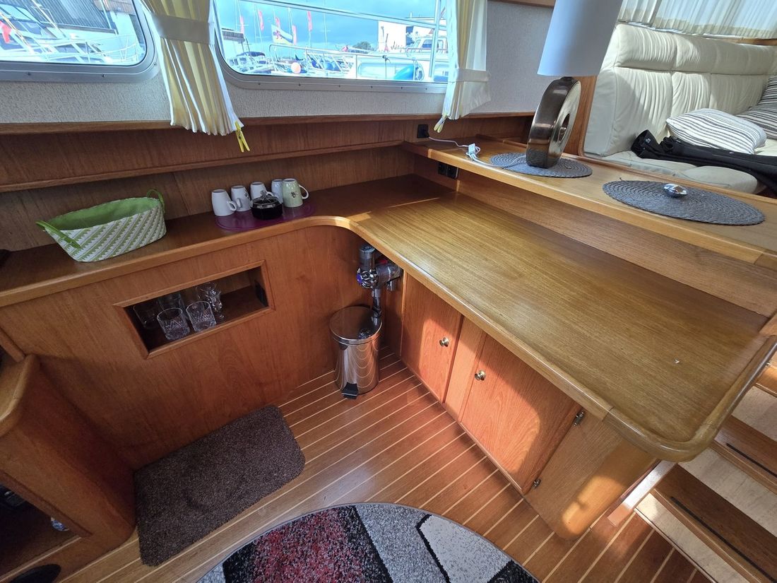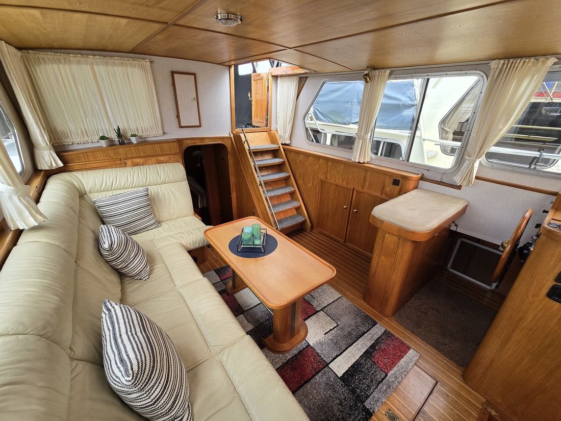 Ruimtes Salon Eethoek Machinekamer Hutten 1 Salon Indeling en verblijfsruimtes Open voorkajuit met rondzit / Pantry / Salon met hoekbank en stuurstand / separaat toilet en douche / achterkajuit met Frans bed Aankleding Type interieur Modern, houtlook Kleur stoffering wit Matrassen Kussens Gordijnen Water Watertank & materiaal Opmerkingen Watertank & materiaal 4x128 liter Inhoud 512 liter Materiaal watertank kunststof Inhoud 188 liter Vuilwatertank & materiaal Vuilwatertankmeter Vuilwatertank afvoerpomp Dekafzuiging vuilwater Watersysteem druksysteem Opmerkingen Watersysteem Elektische pomp Warm water Opmerkingen Warm water Boiler Sanitair Aantal douches 1 Opmerkingen Aantal douches separate ruimte Toiletten 1 Elektrisch Entertainment Radio/CD-speler Keuken Kooktoestel & brandstof Aantal 4 Kookbrandstof gas Koelkast & voeding Inhoud Koelkast 90 liter Vriezer Opmerkingen Vriezer vriesvak in koelkast Inhoud Vriezer 11 liter Klimaatregeling hete lucht Opmerkingen Verwarming Webasto Air Top Evo 55 diesel 5,5Kw -