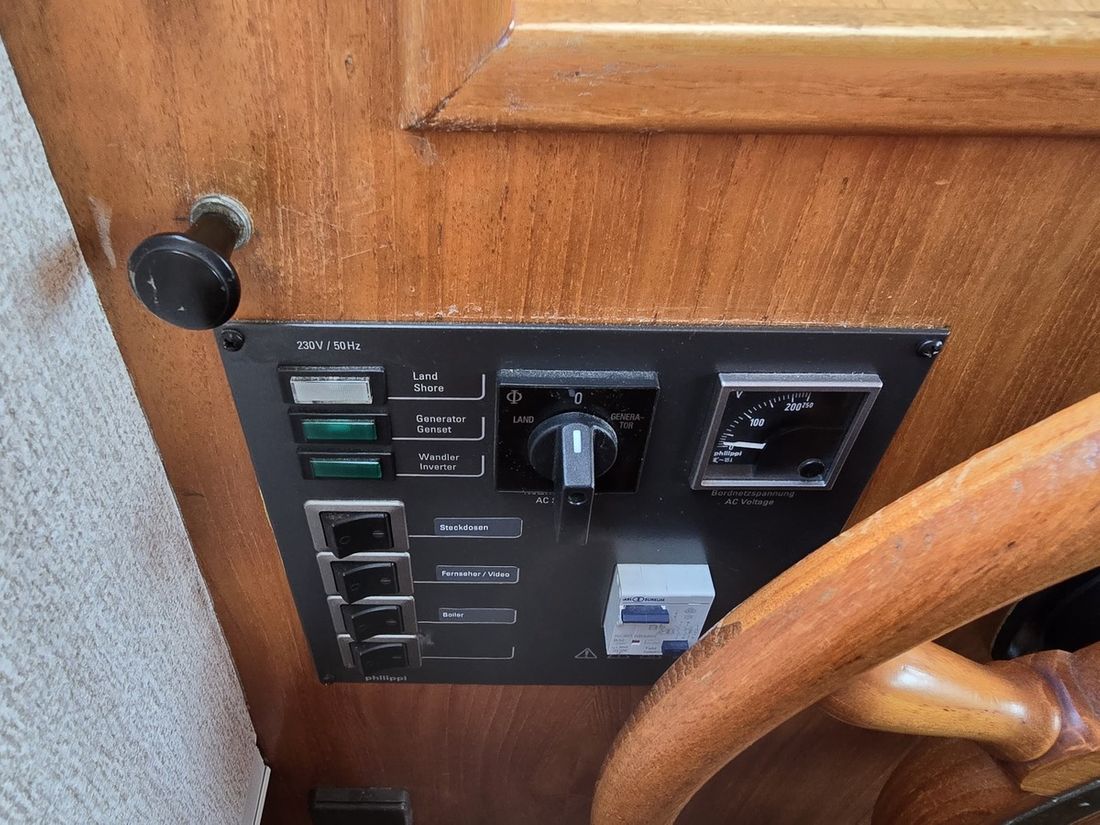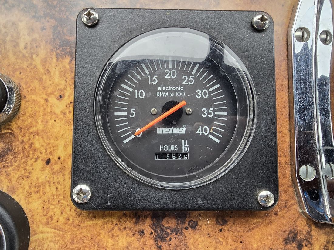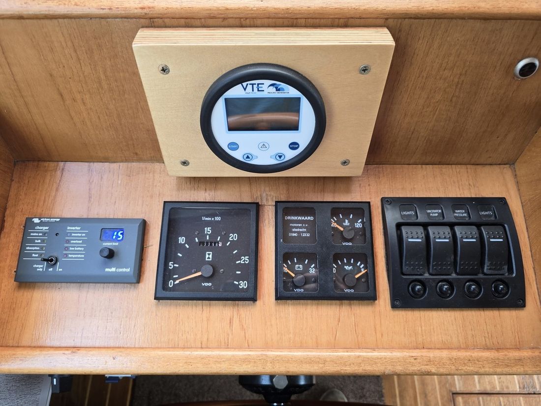 Motorisatie Aantal identieke motoren 1 Start type elektrisch Hoofdmotor Type binnenboord Merk DAF Model 575 Vermogen 105 pk Urenteller Draaiuren 2738 Brandstof diesel Verbruik 4.5 liter/uur Opmerkingen Verbruik @ 1300rpm Aandrijving Overbrenging schroefas Voortstuwing schroef Koeling indirect Tank Brandstoftank aantal Aantal 1 Totale inhoud brandstoftank(s) 600 liter Materiaal brandstoftank staal Meetinstrumenten motor Brandstoftankmeter Toerenteller Oliedrukmeter Temperatuurmeter Boeg- en hekschroef Boegschroef elektrisch Opmerkingen Boegschroef 24V Elektriciteit Accu Opmerkingen Accu 4x service@180Ah (2022), 2x start@160Ah(2022), 1x generator 60Ah(2020) Aantal 7 Acculader Opmerkingen Acculader Victron Multiplus Generator Merk generator Allpa VTE-4 SY Omvormer Opmerkingen Omvormer Victron Multiplus Walstroom Walstroomkabel Verbruiksmonitor 12V 24V 220V Bedieningspaneel Ja -