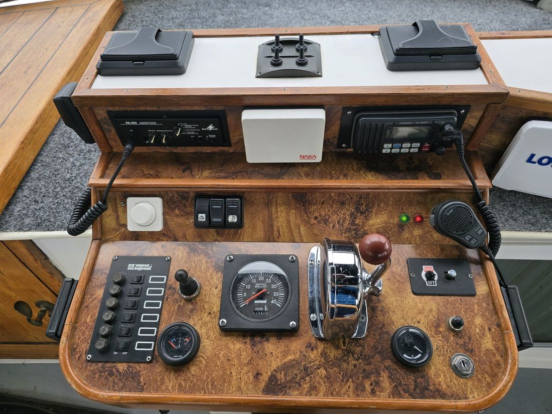 Nieuw geleverd Werf Ten Broek, Allsmeer, Nederland CE vrijgesteld Romp, dek en opbouw Rompvorm knikspant Rompkleur wit Dek en opbouw kleur wit Dek en opbouw materiaal staal Opmerkingen Dek en opbouw materiaal Anti slip Achterkajuit (AK) Ramen Ramen in aluminium Besturing en driftbeperking Besturing stuurwiel Opmerkingen Besturing Hydraulisch Plek besturing dubbel Roer enkel -