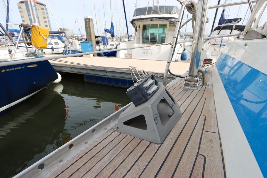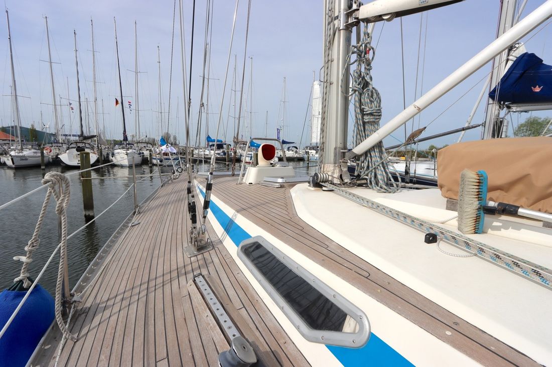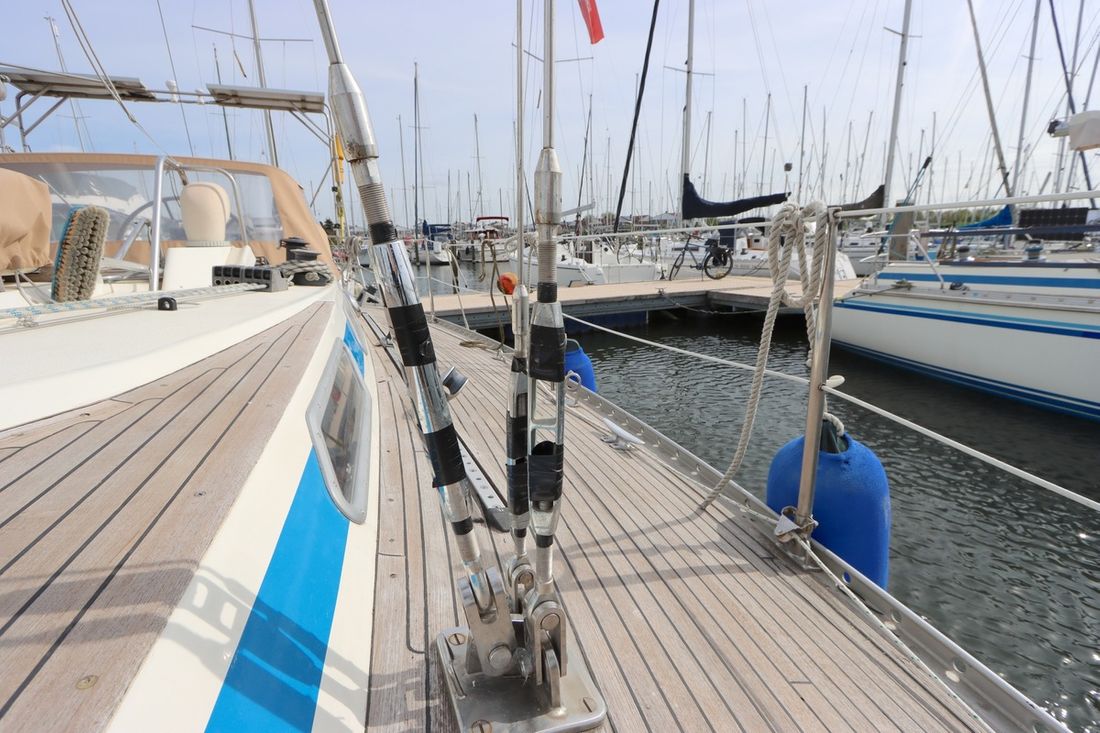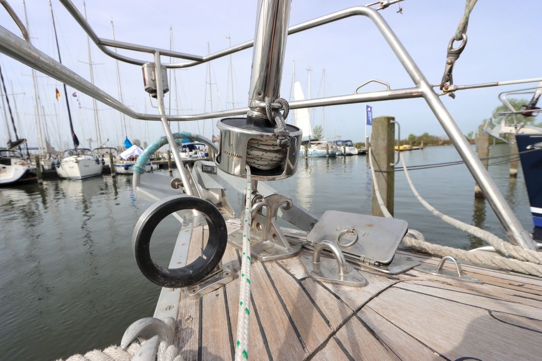 Algemeen Type tuigage sloep Mast materiaal aluminium Opmerkingen Mast materiaal Nautor Spars Verstaging rod rigging Groot- en achterzeilen Opmerkingen Grootzeil North Sails Full Batten, Norla, Tour Ultra XNLU350, Ronstan leuvers (als nieuw) Voorzeilen Opmerkingen Genua Ja Opmerkingen Voorzeil rolsysteem Reckman Furler, MF-1/R20, 2016 Opmerkingen Stormfok Orange, 11,9 m2, 2016 (als nieuw) Opmerkingen Gennaker Ja, wit, 120 m2 (als nieuw) Lieren Lieren Lewmar -