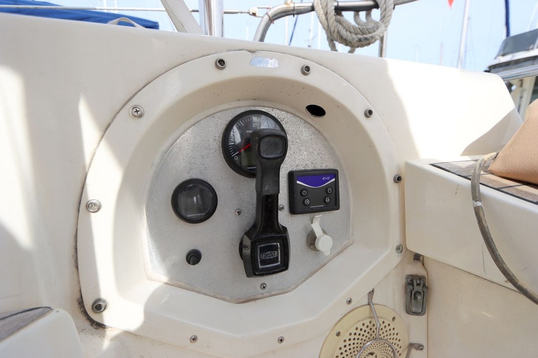 Hoofdmotor Merk Volvo Penta Model D2-40 Bouwjaar 2010 Aantal cilinders 4 Vermogen 37 pk Brandstof diesel Aandrijving Overbrenging schroefas Opmerkingen Voortstuwing Max Prop, 3 blad Koeling indirect Tank Totale inhoud brandstoftank(s) 180 liter Meetinstrumenten motor Opmerkingen Brandstoftankmeter Werking onbekend Elektriciteit Opmerkingen Accu Gel accu's, 2016 Walstroom Opmerkingen Windgenerator Superwind wind generator, 2016 Opmerkingen Zonnepaneel 2x 135 Watt met converter, 2016 12V -