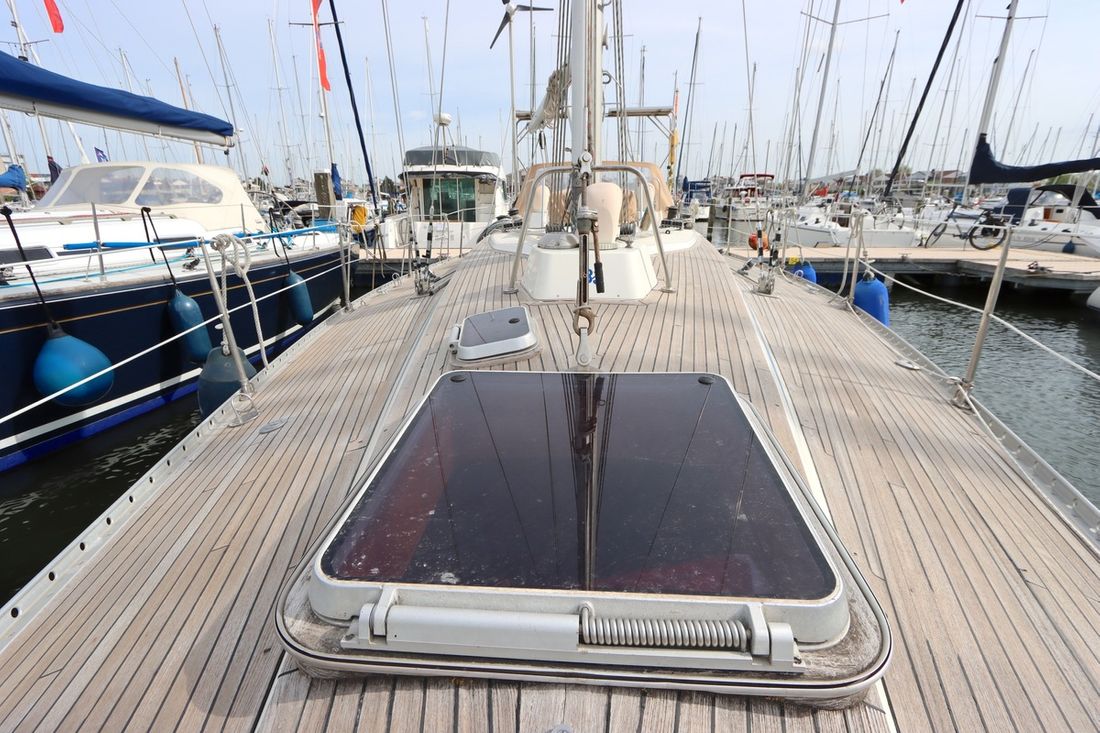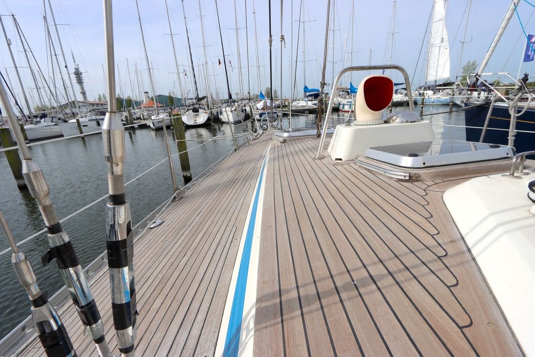 Nieuw geleverd Opmerkingen Ontwerper Ron Holland Opmerkingen Werf Nautor Swan Romp, dek en opbouw Rompvorm rondspant Opmerkingen Dek en opbouw materiaal Polyester met teakdek. Ramen Dekluiken van Goiot, polycarbonaat in 2016 vervangen Afmetingen en gewichten Waterverplaatsing 9100 kg Ballast 3100 kg Besturing en driftbeperking Besturing stuurwiel Kiel/zwaard vaste kiel -