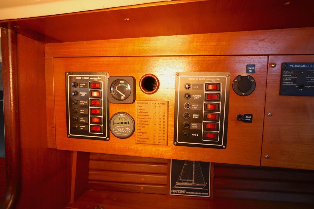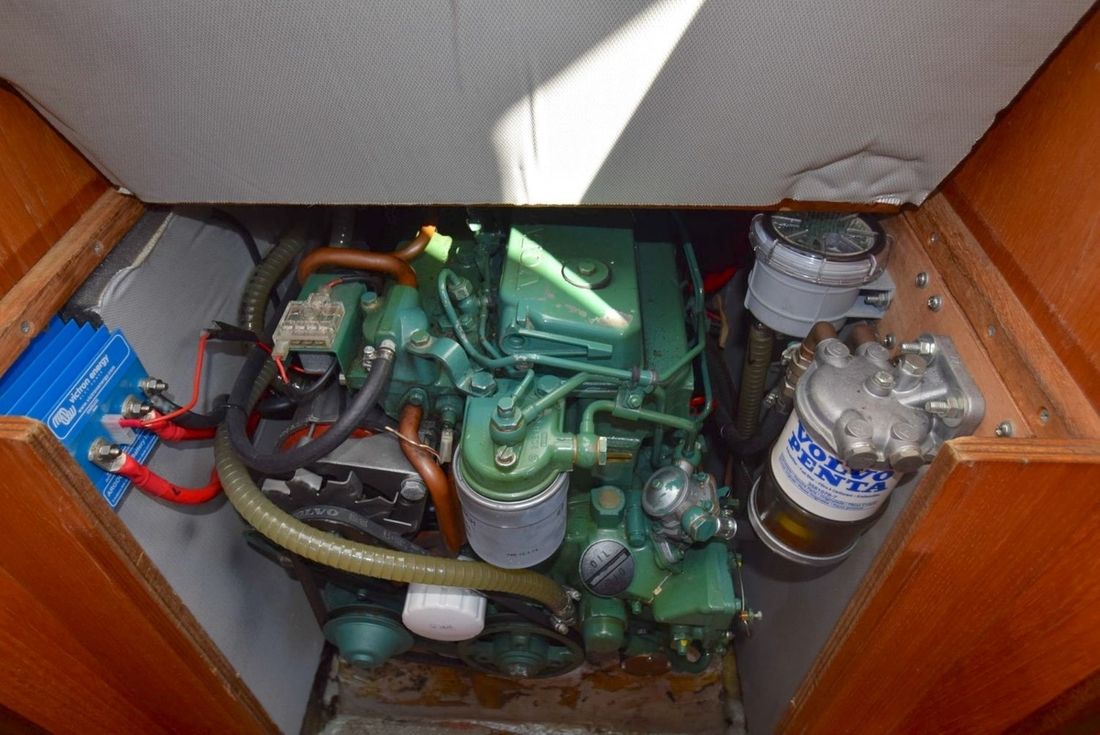 Hoofdmotor Type binnenboord Merk Volvo Penta Model 2003/BT Bouwjaar 1988 Aantal cilinders 3 Vermogen 28 pk Opmerkingen Draaiuren Niet bekend, maar niet heel hoog. Brandstof diesel Aandrijving Opmerkingen Voortstuwing 2 blads Fexofold klapschroef 2013 Opmerkingen Koeling Indirect met intercooler Tank Opmerkingen Brandstoftank aantal 1 brandstoftank, ca. 90 liter. Materiaal brandstoftank RVS Elektriciteit Opmerkingen Accu Startaccu: Victron 60 Ah / AGM / 2012 Serviceaccu(s): 3 /Victron 130 Ah / AGM / 2012 Opmerkingen Acculader Victron / Compact Multiplus 12 V-1600 Va, 70 Amp /2023 Opmerkingen Dynamo Ja, 2016 vervangen voor 75A Opmerkingen Omvormer Ja, Victron Compact Mulitplus 2023 12-1600 Opmerkingen Voltmeter Ja E-xpert lite Verbruiksmonitor Opmerkingen Voltage 12V -