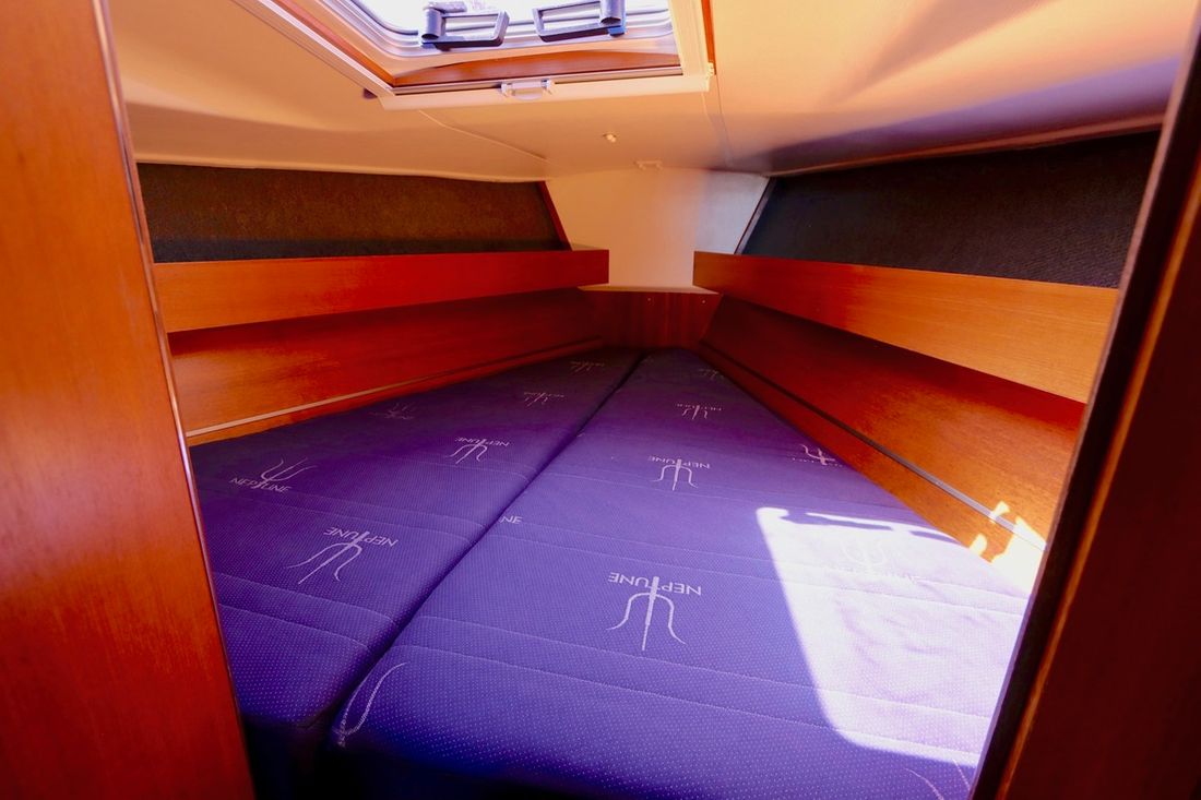 Algemeen Type tuigage fractioneel Opmerkingen Type tuigage 7/8 Aantal masten 1 Opmerkingen Aantal masten Aluminium Verstaging staaldraad Aantal zeilen 2 Groot- en achterzeilen Opmerkingen Grootzeil Doorgelat 27,2 m2 (offshore kwaliteit) Reven vanuit de kuip (3x), 2014 Voorzeilen Opmerkingen Fok High Aspect fok (offshore kwaliteit), 2014 Lieren Lieren Lewmar 2 keer selftailing voor fok, 2 keer kajuitdak voor lijnen mast en reven. -