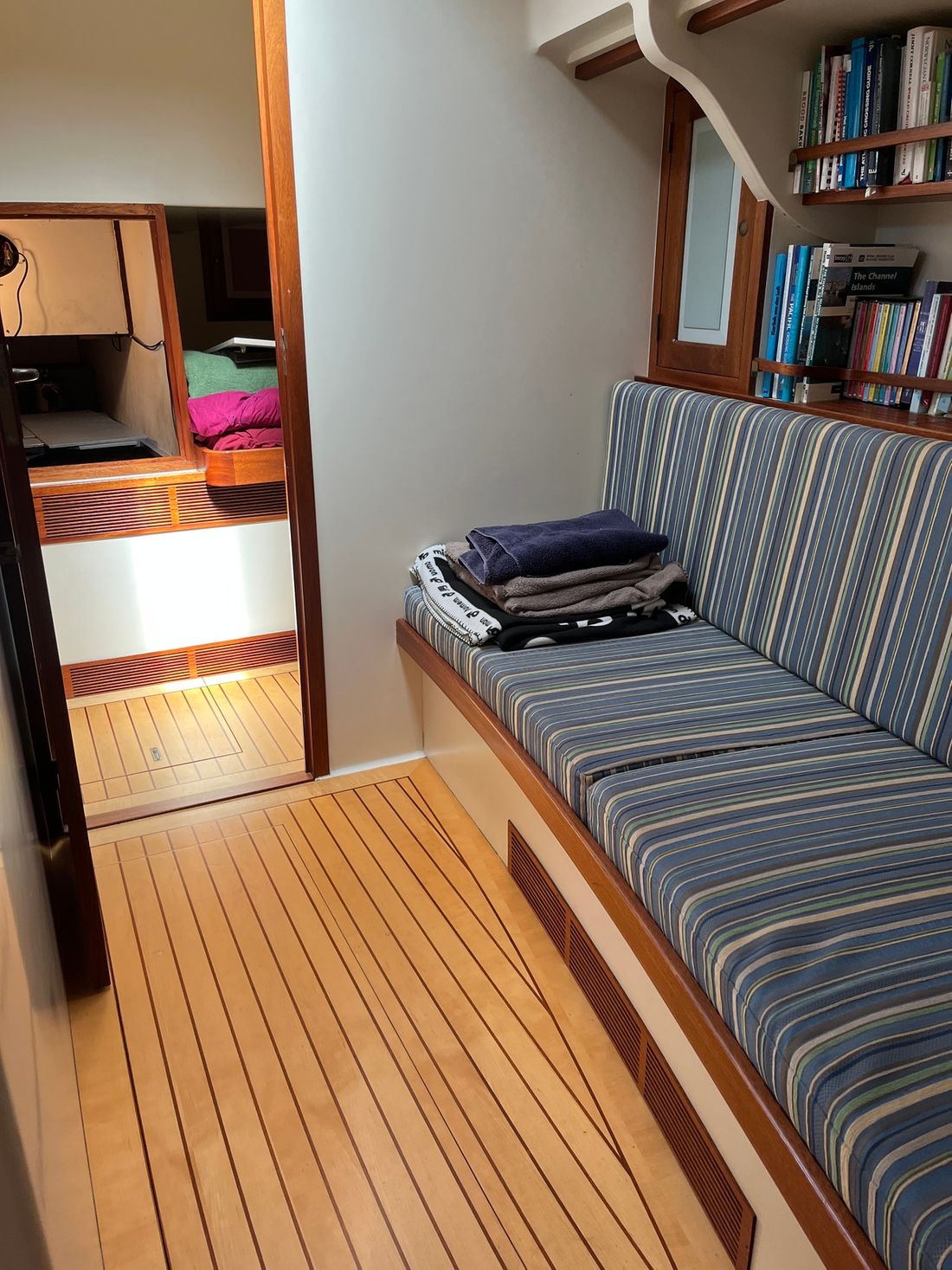 Ruimtes Eethoek Machinekamer Hutten 2 Salon Aankleding Type interieur Modern, houtlook Kleur stoffering blauw Matrassen Kussens Water Watertank & materiaal Watertankmeter Vuilwatertank & materiaal Watersysteem Pressure system Warm water Sanitair Aantal douches 1 Handmatig Keuken Kooktoestel & brandstof Kookbrandstof gas Oven Koelkast & voeding Klimaatregeling CV -